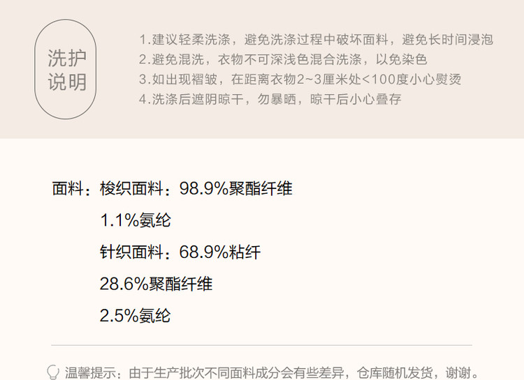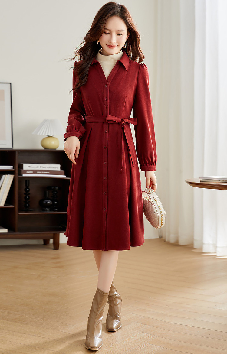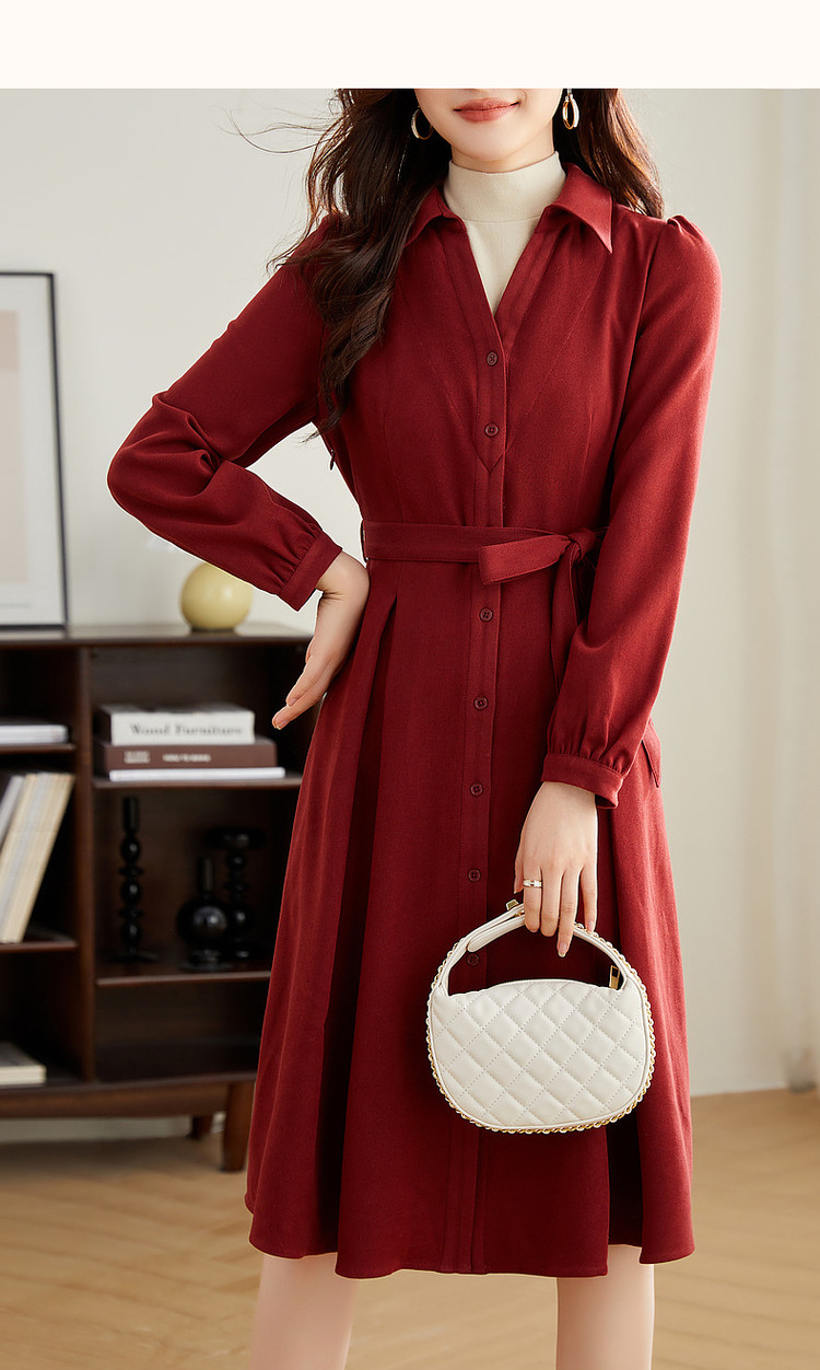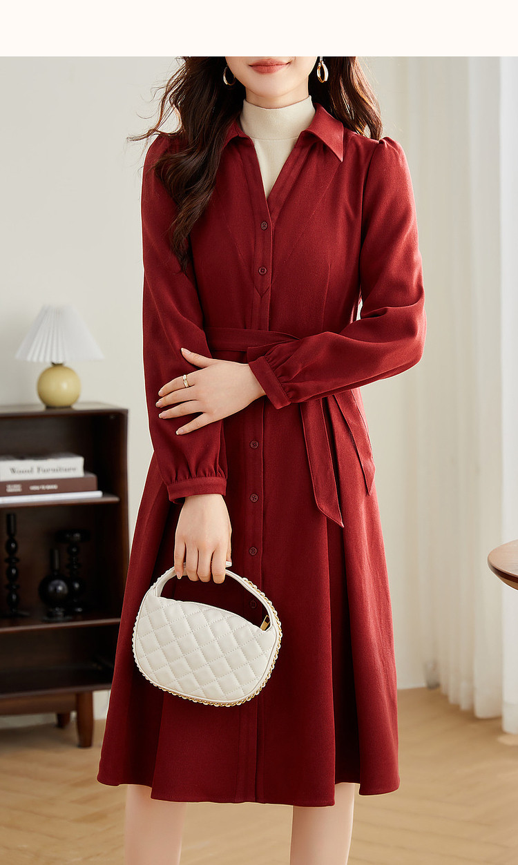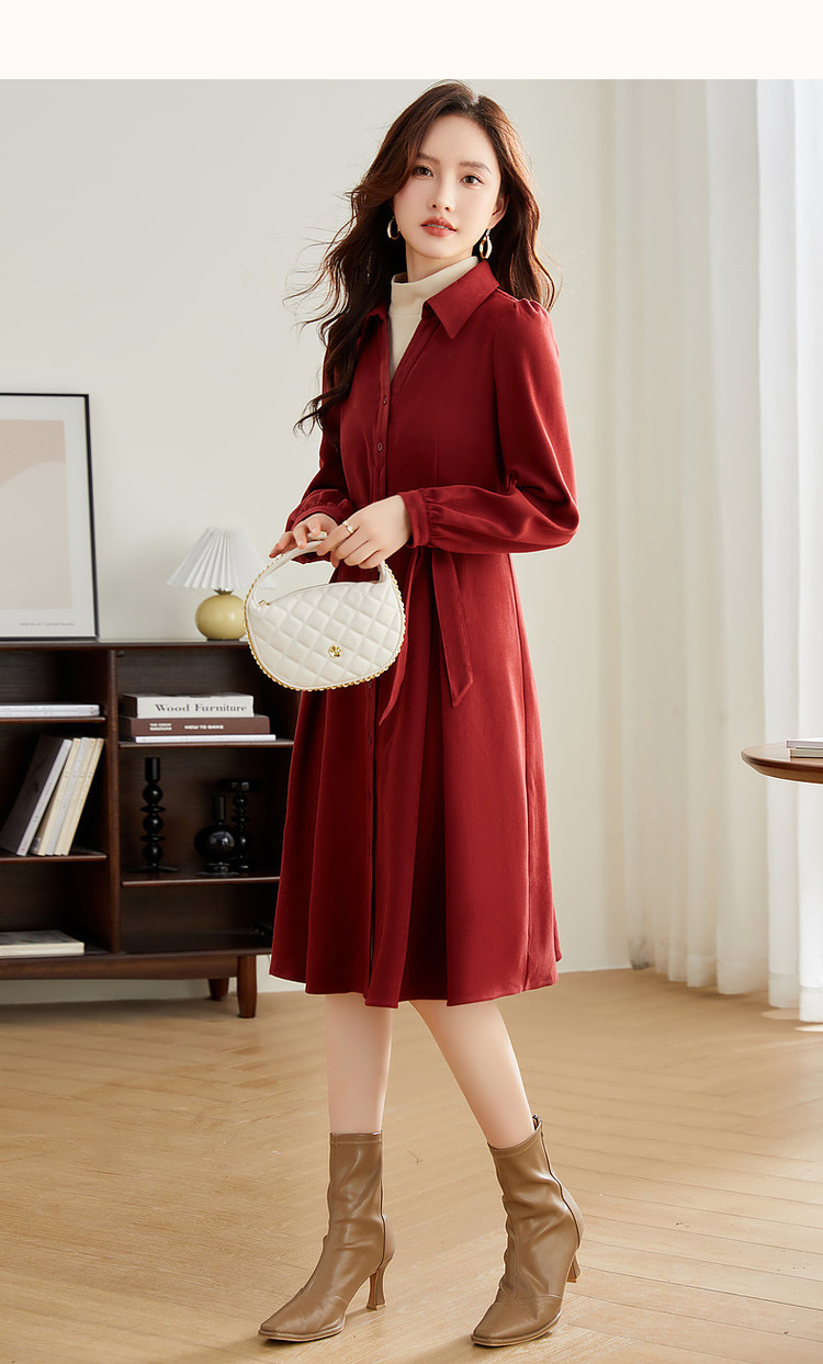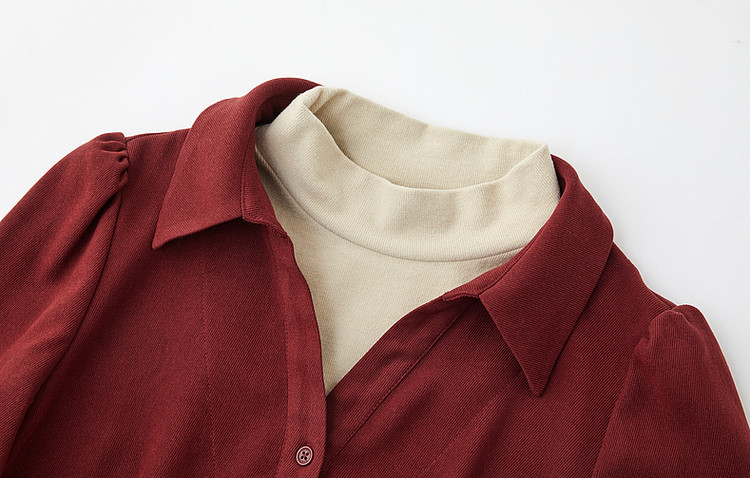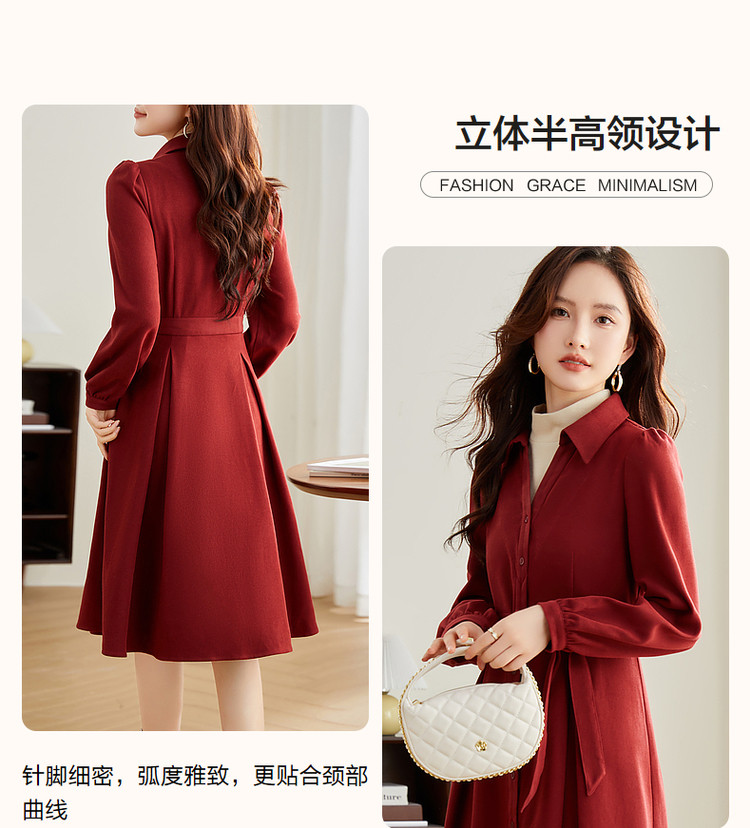弹性: 无弹 版型: 收腰 裙长: 中长裙 厚薄: 厚 详细材质信息: 梭织面料:98.9%聚酯纤维 1.1%氨纶 针织面料:68.9%粘纤 28.6%聚酯纤维 2.5%氨纶 风格: 通勤 流行元素: 纽扣 适用季节: 秋,冬 领型: 半高领 衣门襟: 套头 裙型: X版型 袖型: 衬衫袖 袖长: 长袖 腰型: 中腰 适用人群: 青年 面料: 涤纶/聚酯纤维 肩型: 常规肩 款式: 衬衫裙 组合形式: 单件 生产/经销/进口厂家: 宁波德玛纳瑞品服饰有限公司 适用性别: 女士 厂家地址: 安徽省芜湖市三山经济开发区保定街道焦弯路3号 洗涤说明: 凡是棉、麻、丝、毛天然面料都会有轻微褪色、变型、起皱、缩水现象,为减少或避免以上情况发生在洗涤保养上需特别小心。洗涤时应选用冷水(30度以下),中性或酸性洗衣手洗(丝、毛面料应选用专业洗衣液),不宜浸泡(2分钟左右),即泡即洗,不可氯漂。为避免染色,清洗与晾晒时,深浅色应分开,不宜拧过干,反面阴干 主风格: 优雅气质 执行标准: Q/DMN 017-2023 廓形: X型 主款式: 衬衫裙 产地: 中国 商品配件: 暂无 商品编码: G538421521401524 收起商品展示IMAGE