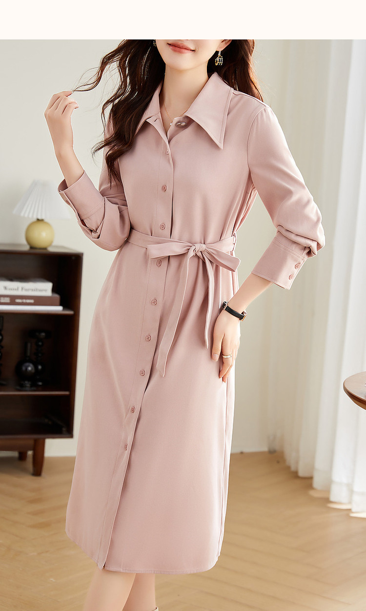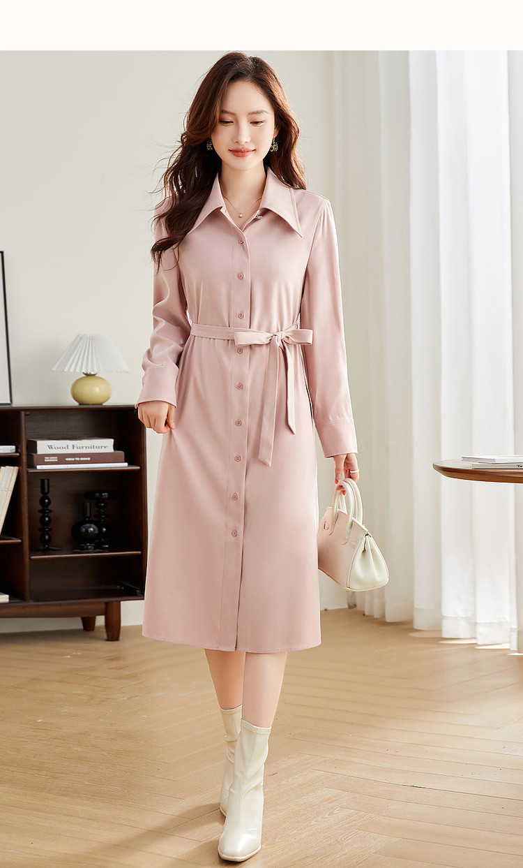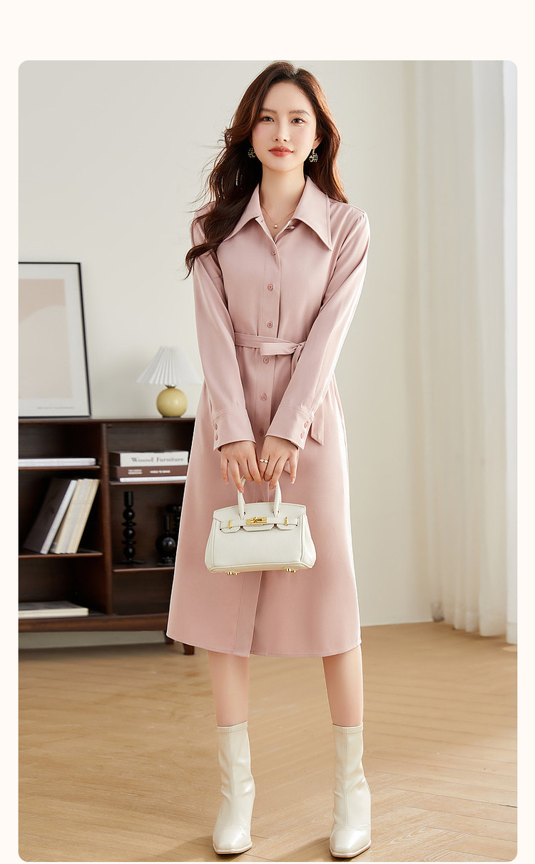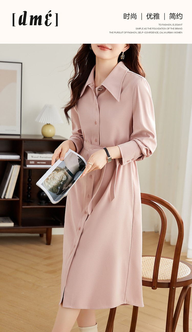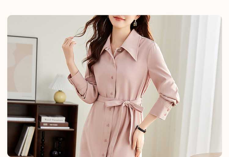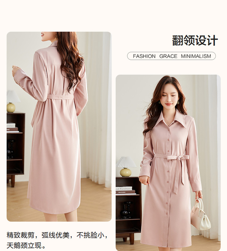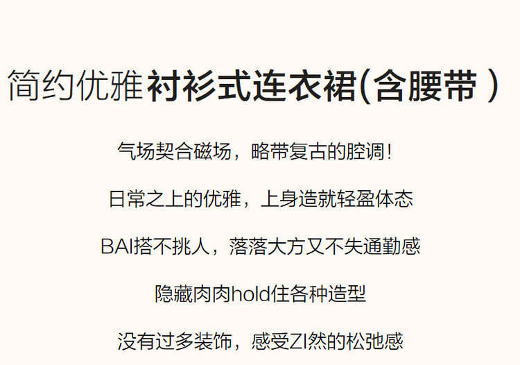 弹性: 无弹 版型: 常规 裙长: 中长裙 详细材质信息: 97.4%聚酯纤维 2.6%氨纶 风格: 休闲 流行元素: 腰带 适用季节: 秋,冬 领型: 翻领 衣门襟: 单排扣 裙型: H版型 袖型: 衬衫袖 袖长: 长袖 适用人群: 青年 面料: 涤纶/聚酯纤维 肩型: 常规肩 款式: 衬衫裙 组合形式: 单件 生产/经销/进口厂家: 宁波德玛纳瑞品服饰有限公司 适用性别: 女士 厂家地址: 安徽省芜湖市三山经济开发区保定街道焦弯路3号 洗涤说明: 凡是棉、麻、丝、毛天然面料都会有轻微褪色、变型、起皱、缩水现象,为减少或避免以上情况发生在洗涤保养上需特别小心。洗涤时应选用冷水(30度以下),中性或酸性洗衣手洗(丝、毛面料应选用专业洗衣液),不宜浸泡(2分钟左右),即泡即洗,不可氯漂。为避免染色,清洗与晾晒时,深浅色应分开,不宜拧过干,反面阴干 主风格: 都市休闲 执行标准: Q/DMN 017-2023 廓形: H型 主款式: 衬衫裙 产地: 中国 商品配件: 暂无 商品编码: G538421521405536 收起商品展示IMAGE