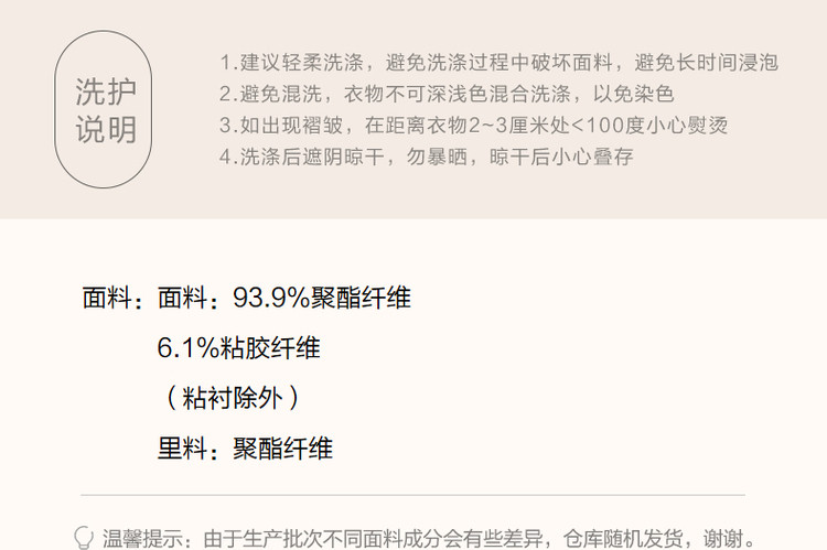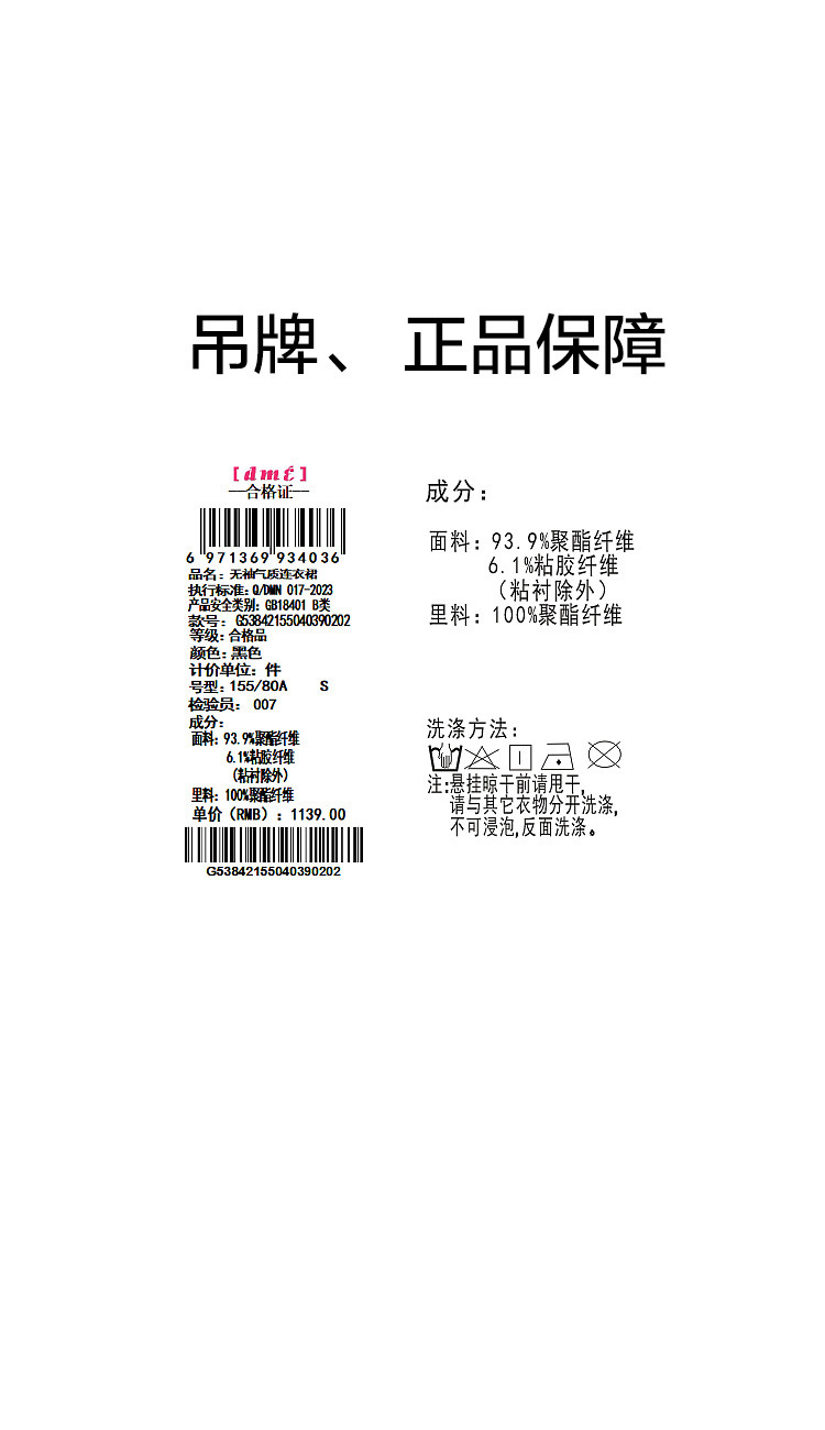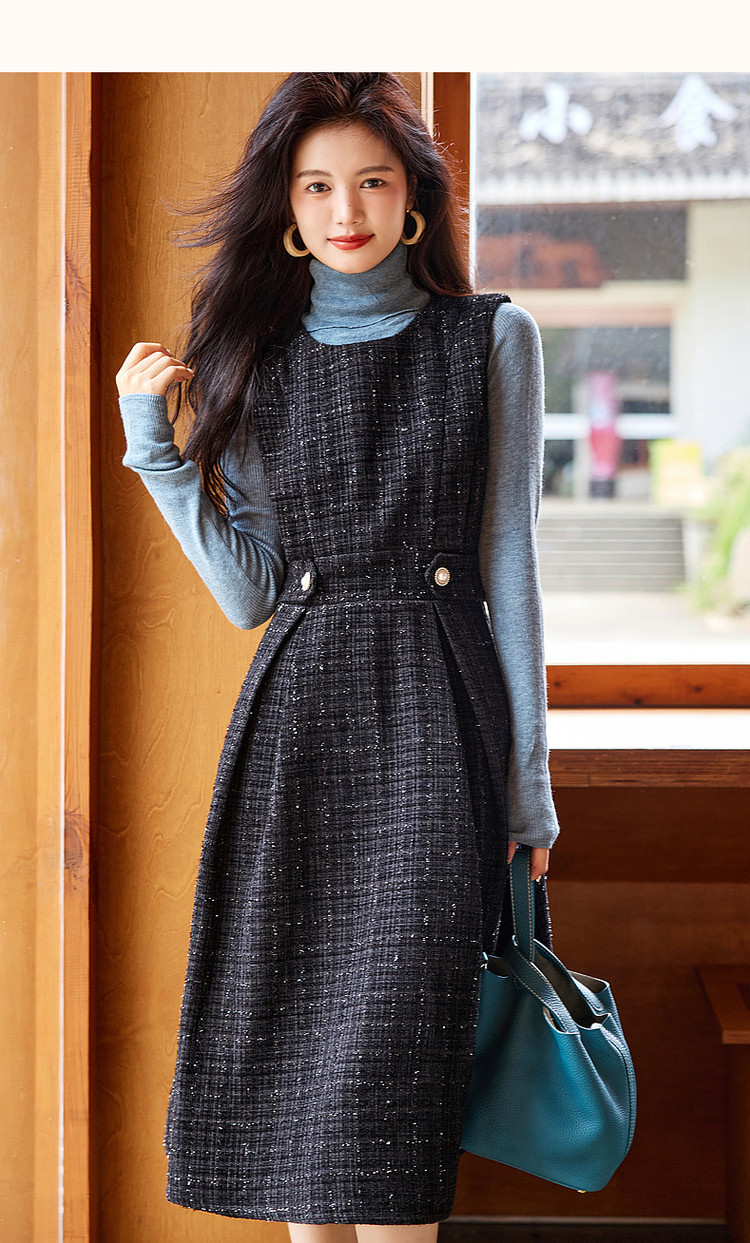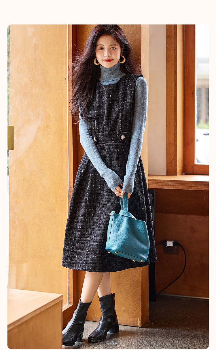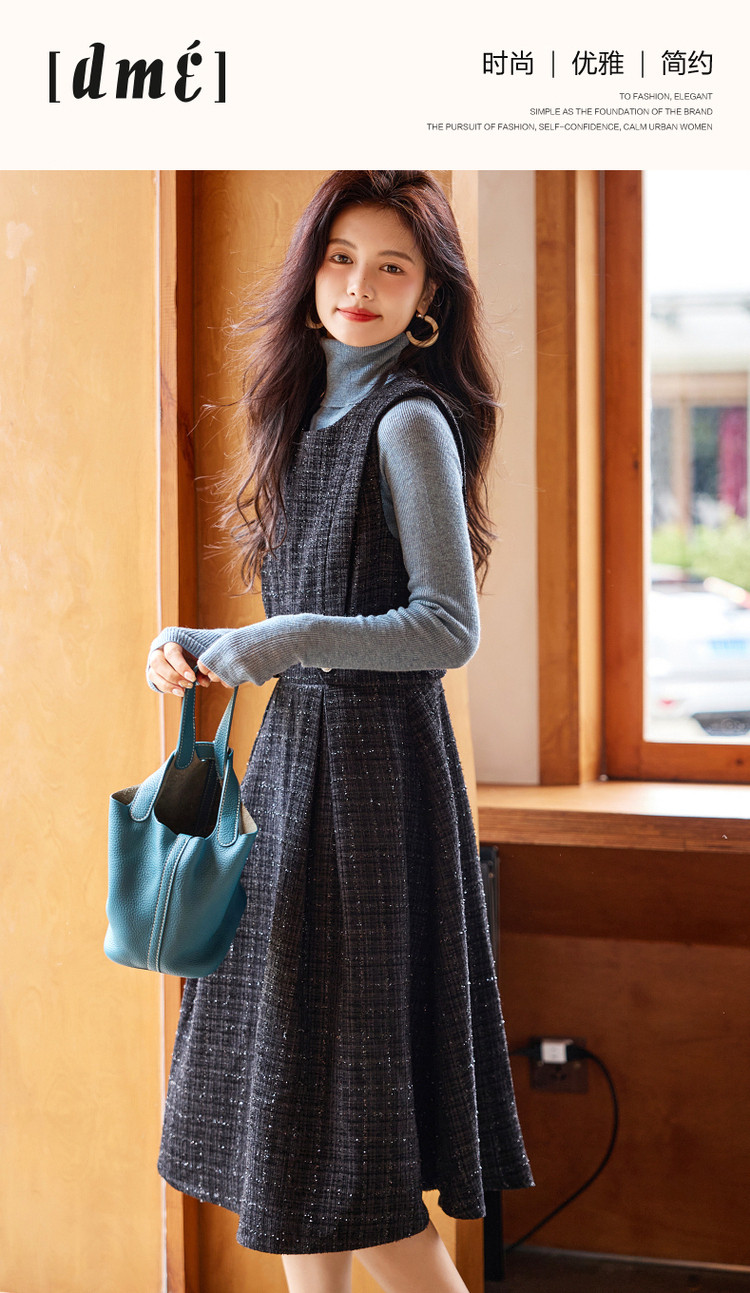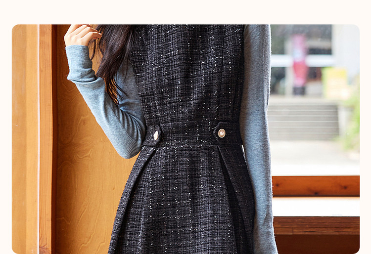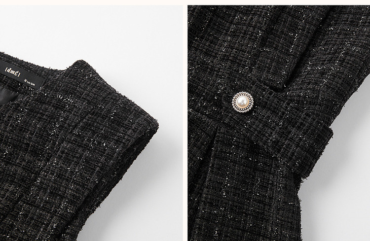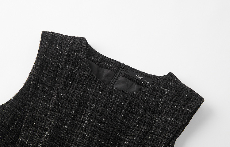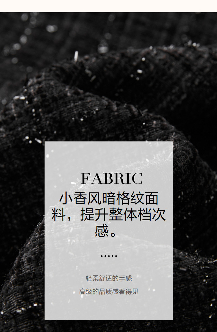 弹性: 无弹 版型: 收腰 裙长: 中长裙 厚薄: 厚 详细材质信息: 面料:93.9%聚酯纤维 6.1%粘胶纤维 (粘衬除外) 里料:100%聚酯纤维 风格: 优雅 流行元素: 纽扣 适用季节: 秋,冬 领型: 圆领 衣门襟: 拉链 裙型: X版型 袖型: 无袖 袖长: 无袖 腰型: 中腰 适用人群: 青年 面料: 涤纶/聚酯纤维 肩型: 常规肩 款式: 小黑裙 组合形式: 单件 生产/经销/进口厂家: 宁波德玛纳瑞品服饰有限公司 适用性别: 女士 厂家地址: 安徽省芜湖市三山经济开发区保定街道焦弯路3号 洗涤说明: 凡是棉、麻、丝、毛天然面料都会有轻微褪色、变型、起皱、缩水现象,为减少或避免以上情况发生在洗涤保养上需特别小心。洗涤时应选用冷水(30度以下),中性或酸性洗衣手洗(丝、毛面料应选用专业洗衣液),不宜浸泡(2分钟左右),即泡即洗,不可氯漂。为避免染色,清洗与晾晒时,深浅色应分开,不宜拧过干,反面阴干 主风格: 小香风 执行标准: Q/DMN 017-2023 廓形: X型 主款式: 小黑裙 产地: 中国 商品配件: 暂无 商品编码: G538421550403902 收起商品展示IMAGE