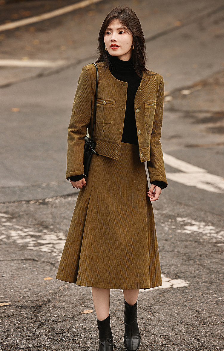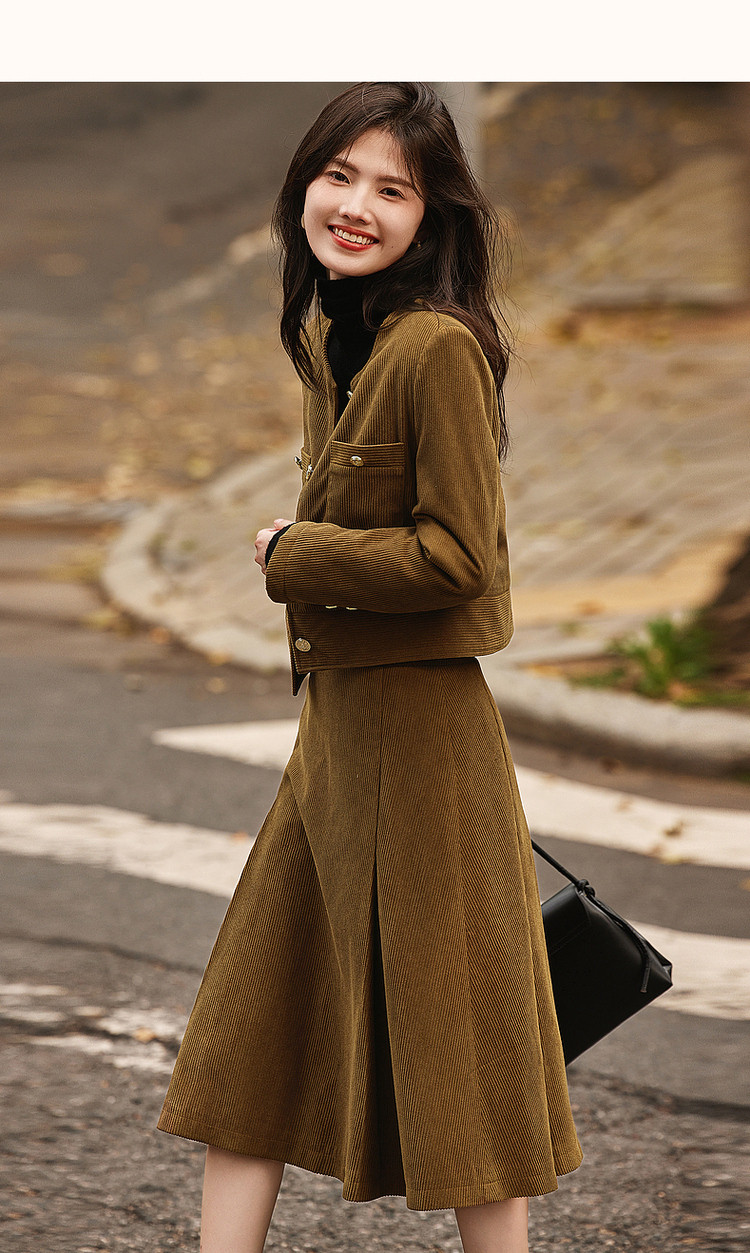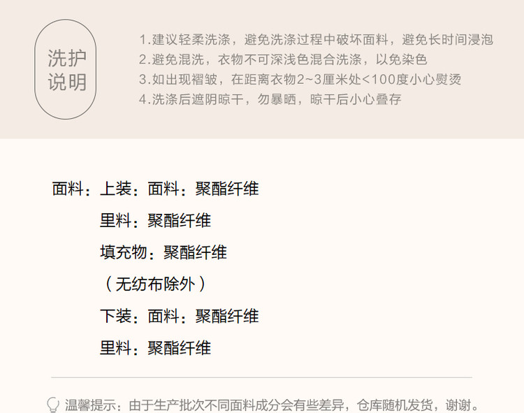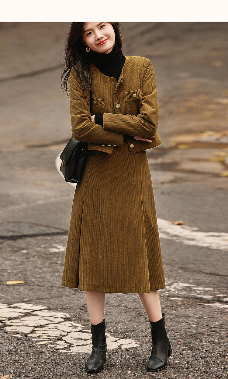 弹性: 微弹 版型: 常规 衣长: 常规 风格: 通勤 流行元素: 纽扣 适用场景: 日常 适用季节: 秋,冬 领型: 圆领 袖型: 常规 袖长: 长袖 适用人群: 青年 面料: 涤纶/聚酯纤维 款式: 通勤套装 套装形式: 上衣+裙 上市年份: 2023 规格数量: 两件 生产/经销/进口厂家: 宁波德玛纳瑞品服饰有限公司 适用性别: 女士 厂家地址: 安徽省芜湖市三山经济开发区保定街道焦弯路3号 洗涤说明: 凡是棉、麻、丝、毛天然面料都会有轻微褪色、变型、起皱、缩水现象,为减少或避免以上情况发生在洗涤保养上需特别小心。洗涤时应选用冷水(30度以下),中性或酸性洗衣手洗(丝、毛面料应选用专业洗衣液),不宜浸泡(2分钟左右),即泡即洗,不可氯漂。为避免染色,清洗与晾晒时,深浅色应分开,不宜拧过干,反面阴干 详细材质信息: 上装:面料:100%聚酯纤维 里料:100%聚酯纤维 填充物:100%聚酯纤维 (无纺布除外) 下装:面料:100%聚酯纤维 里料:100%聚酯纤维 主款式: 连衣裙套装 主风格: 商务通勤 执行标准: 上装:GB/T26384-2011下装:Q/DMN 016-2018 产地: 中国 商品配件: 暂无 商品编码: G538421610201313 收起商品展示IMAGE