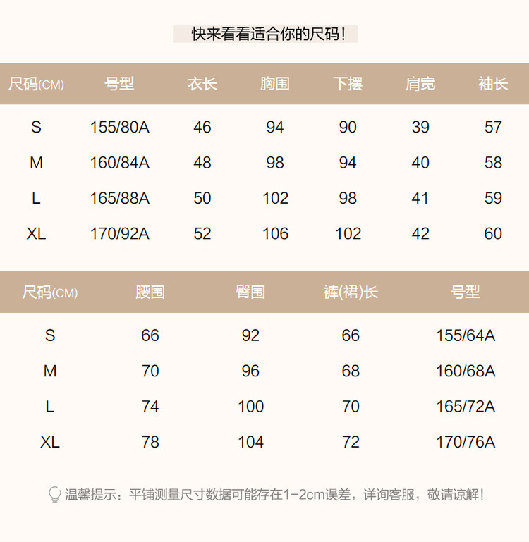 温馨提示尺码对照表: