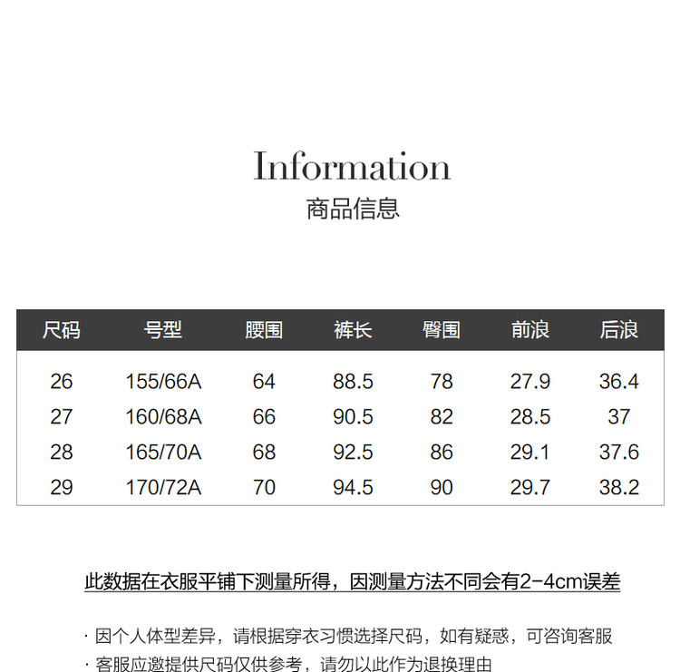 商品尺码SIZE