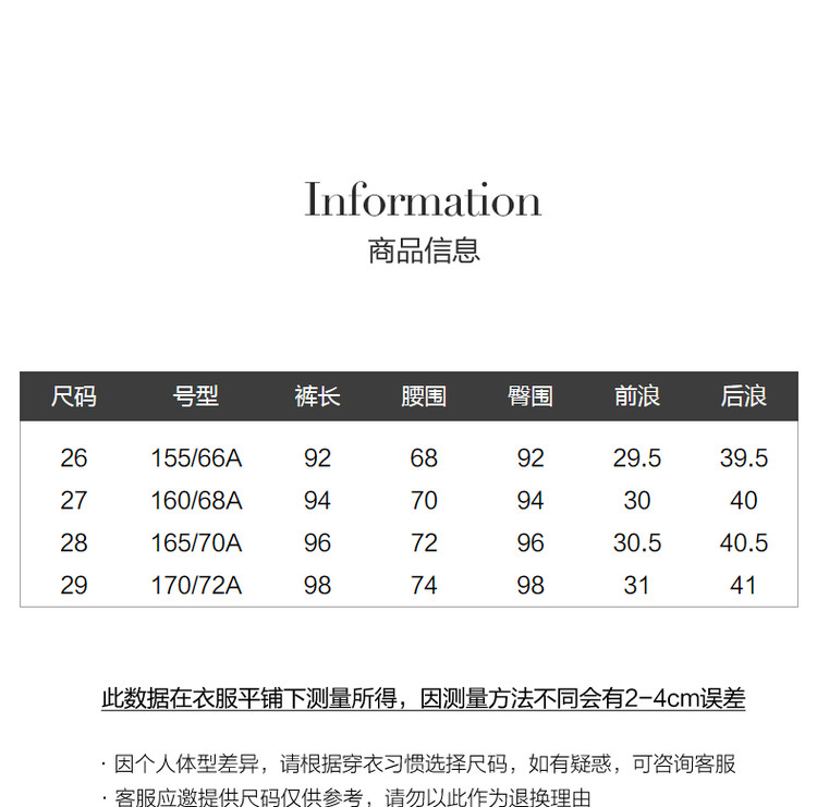 商品尺码SIZE