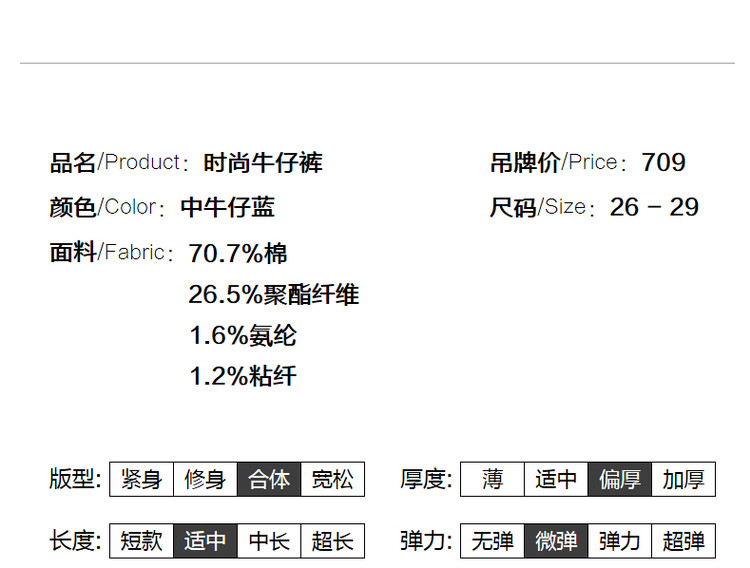 弹性: 微弹 版型: 常规 裤长: 长裤 风格: 简约时尚 流行元素: 撞色 适用季节: 秋,冬 腰型: 中腰 适用人群: 青年 面料: 棉 款式: 锥形裤 上市年份: 2023 裤门襟: 拉链 生产/经销/进口厂家: 宁波德玛纳瑞品服饰有限公司 适用性别: 女士 厂家地址: 安徽省芜湖市三山经济开发区保定街道焦弯路3号 洗涤说明: 凡是棉、麻、丝、毛天然面料都会有轻微褪色、变型、起皱、缩水现象,为减少或避免以上情况发生在洗涤保养上需特别小心。洗涤时应选用冷水(30度以下),中性或酸性洗衣手洗(丝、毛面料应选用专业洗衣液),不宜浸泡(2分钟左右),即泡即洗,不可氯漂。为避免染色,清洗与晾晒时,深浅色应分开,不宜拧过干,反面阴干 详细材质信息: 70.7%棉 26.5%聚酯纤维 1.6%氨纶 1.2%粘纤 主款式: 直筒裤 主风格: 都市休闲 执行标准: Q/DMN 019-2019 产地: 中国 商品配件: 暂无 商品编码: G538422142405620 收起商品展示IMAGE