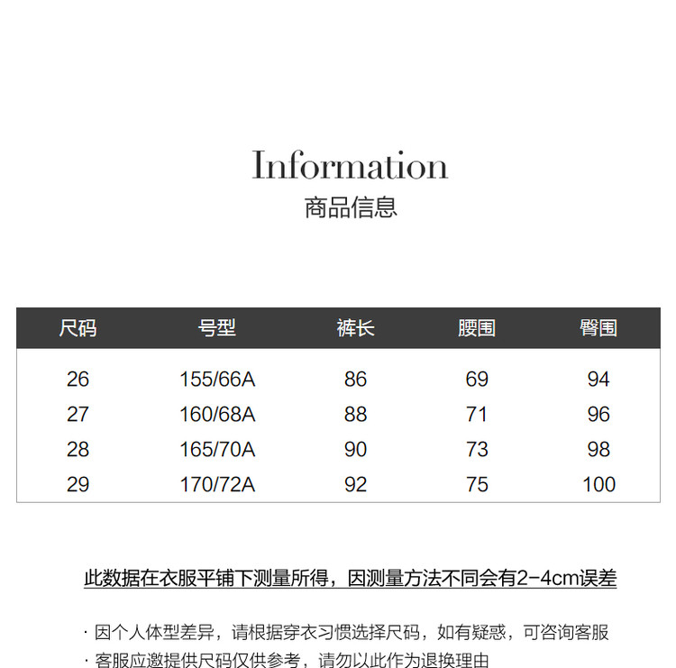 商品尺码SIZE