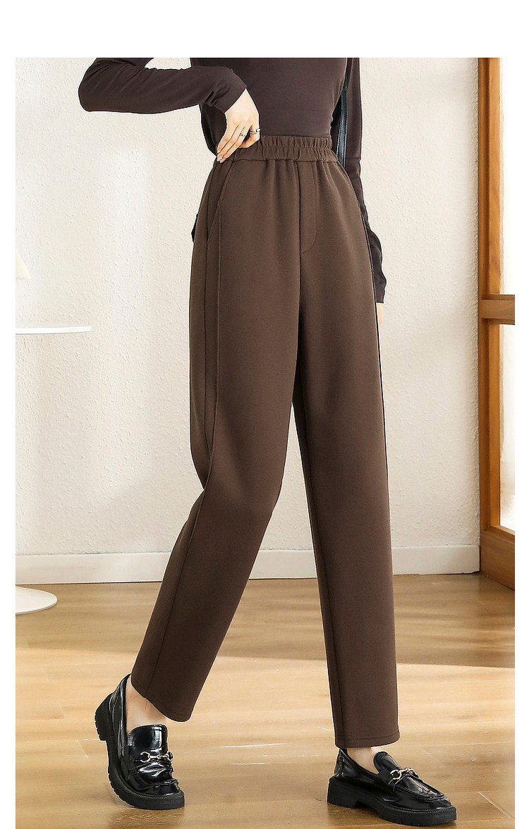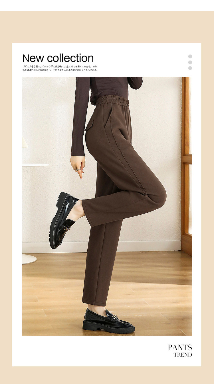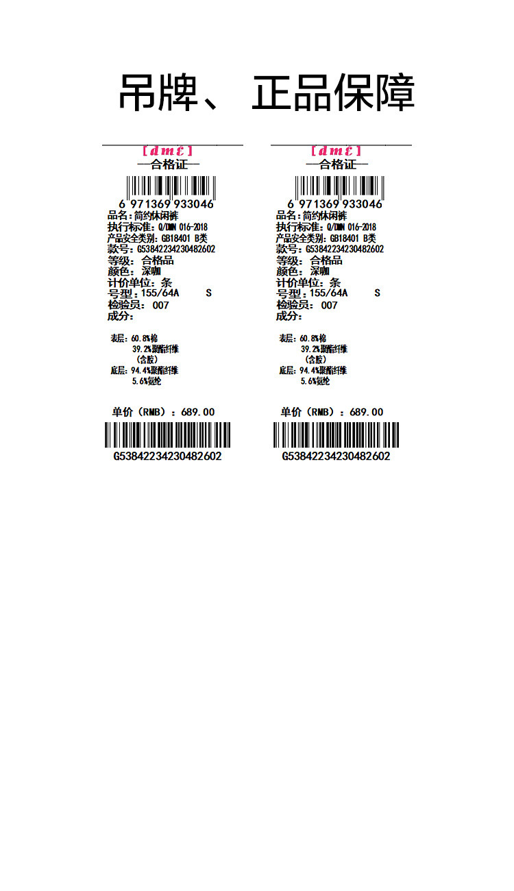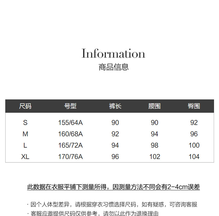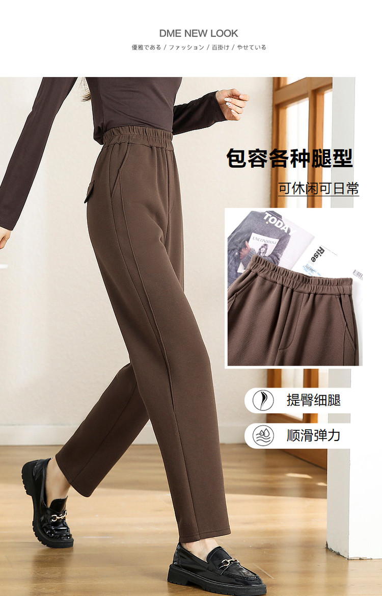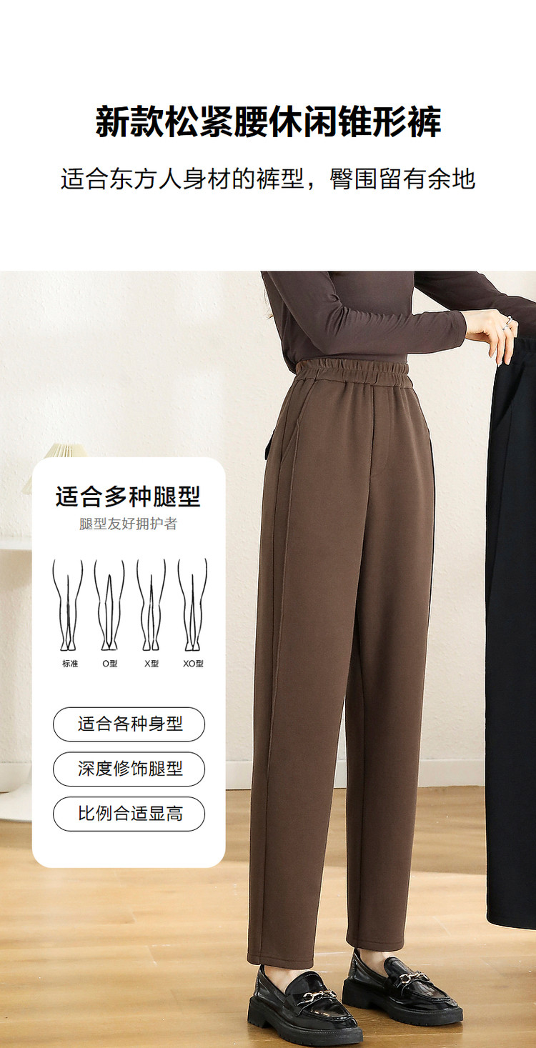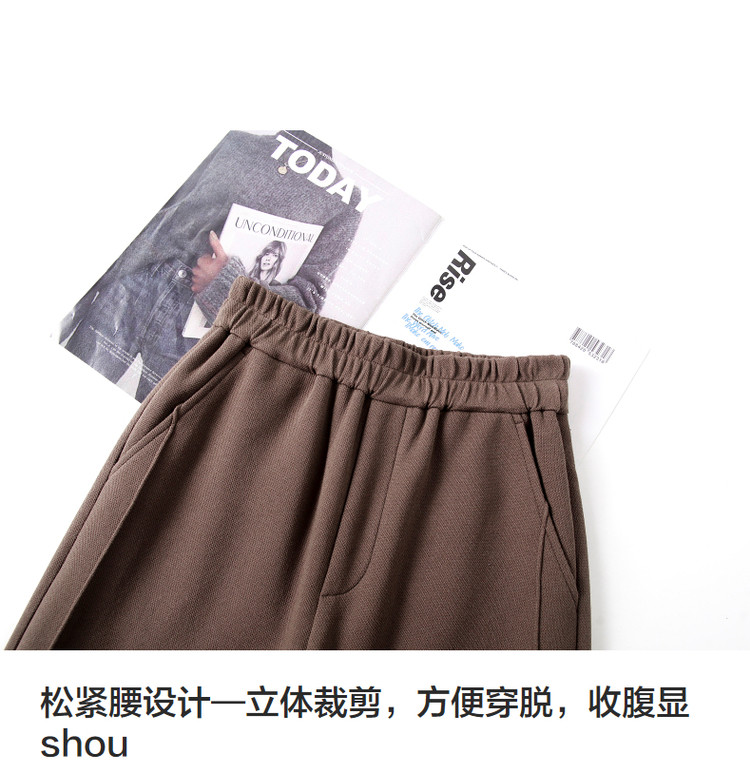 弹性: 微弹 版型: 常规 厚薄: 厚 裤长: 长裤 风格: 休闲 适用季节: 秋,冬 适用人群: 青年 面料: 涤纶/聚酯纤维 款式: 锥形裤 裤门襟: 松紧 生产/经销/进口厂家: 宁波德玛纳瑞品服饰有限公司 适用性别: 女士 厂家地址: 安徽省芜湖市三山经济开发区保定街道焦弯路3号 洗涤说明: 凡是棉、麻、丝、毛天然面料都会有轻微褪色、变型、起皱、缩水现象,为减少或避免以上情况发生在洗涤保养上需特别小心。洗涤时应选用冷水(30度以下),中性或酸性洗衣手洗(丝、毛面料应选用专业洗衣液),不宜浸泡(2分钟左右),即泡即洗,不可氯漂。为避免染色,清洗与晾晒时,深浅色应分开,不宜拧过干,反面阴干 详细材质信息: 表层:60.8%棉 39.2%聚酯纤维 (含胶) 底层:94.4%聚酯纤维 5.6%氨纶 主款式: 锥形裤 主风格: 商务通勤 执行标准: Q/DMN 016-2018 产地: 中国 商品配件: 暂无 商品编码: G538422342304826 收起商品展示IMAGE