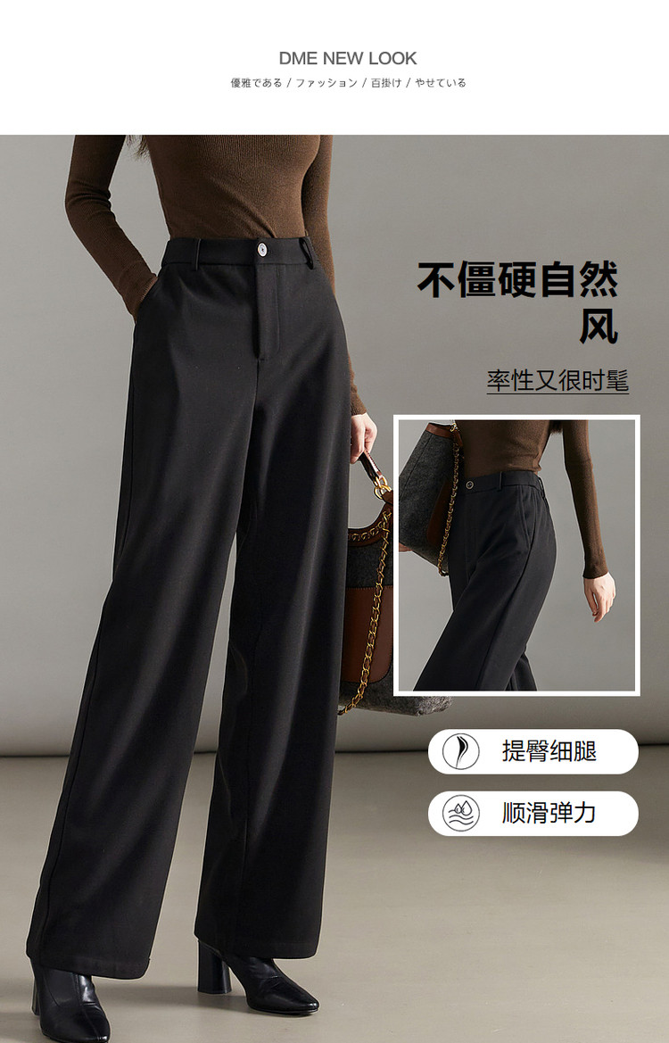 弹性: 无弹 版型: 常规 厚薄: 厚 裤长: 长裤 风格: 通勤 适用季节: 秋,冬 腰型: 高腰 适用人群: 青年 面料: 涤纶/聚酯纤维 款式: 直筒裤 组合形式: 单件 上市年份: 2023 裤门襟: 拉链 生产/经销/进口厂家: 宁波德玛纳瑞品服饰有限公司 适用性别: 女士 厂家地址: 安徽省芜湖市三山经济开发区保定街道焦弯路3号 洗涤说明: 凡是棉、麻、丝、毛天然面料都会有轻微褪色、变型、起皱、缩水现象,为减少或避免以上情况发生在洗涤保养上需特别小心。洗涤时应选用冷水(30度以下),中性或酸性洗衣手洗(丝、毛面料应选用专业洗衣液),不宜浸泡(2分钟左右),即泡即洗,不可氯漂。为避免染色,清洗与晾晒时,深浅色应分开,不宜拧过干,反面阴干 详细材质信息: 100%聚酯纤维 主款式: 直筒裤 主风格: 都市休闲 执行标准: Q/DMN 016-2018 搭配风格: 商务通勤 产地: 中国 商品配件: 暂无 商品编码: G538422342305902 收起商品展示IMAGE