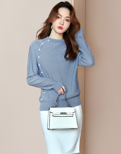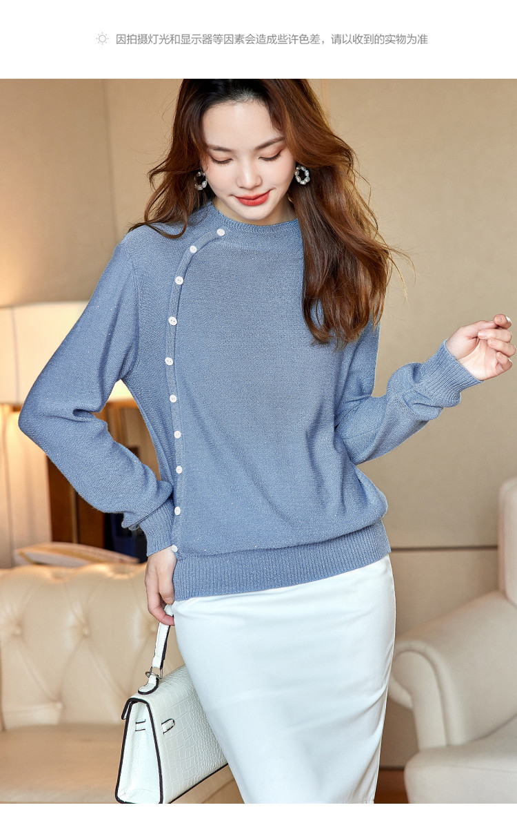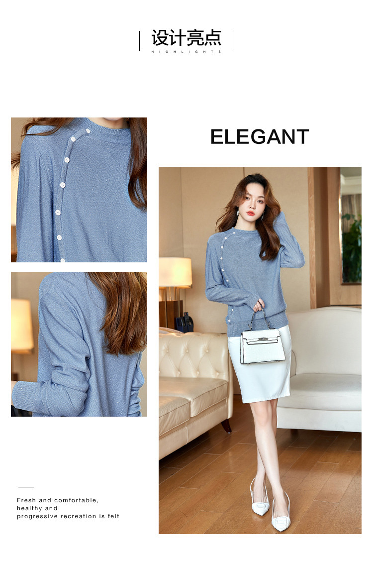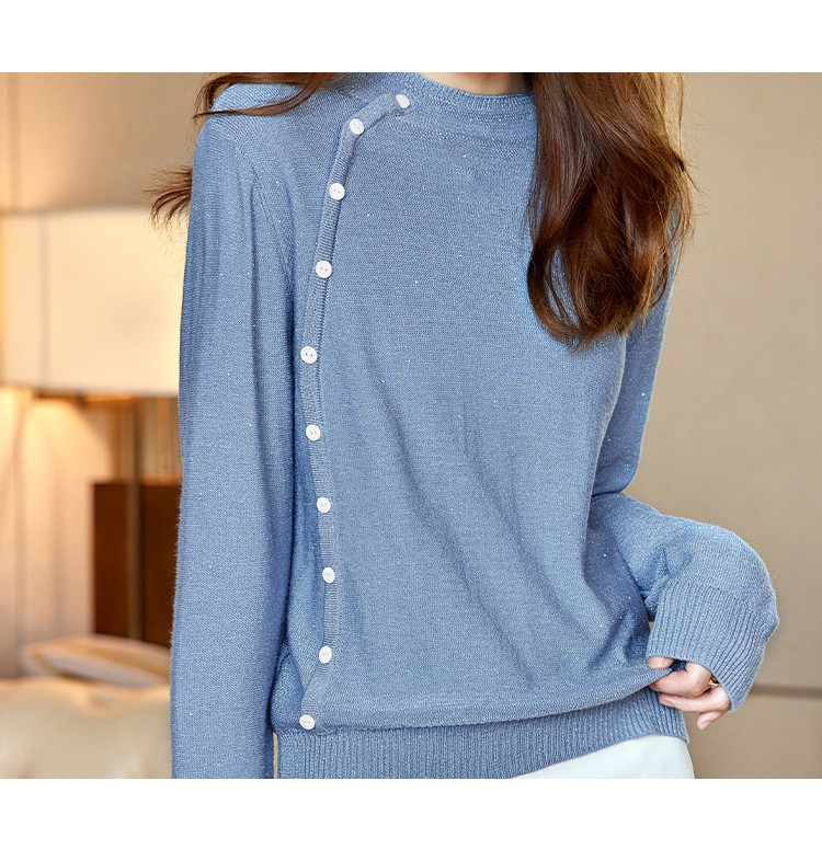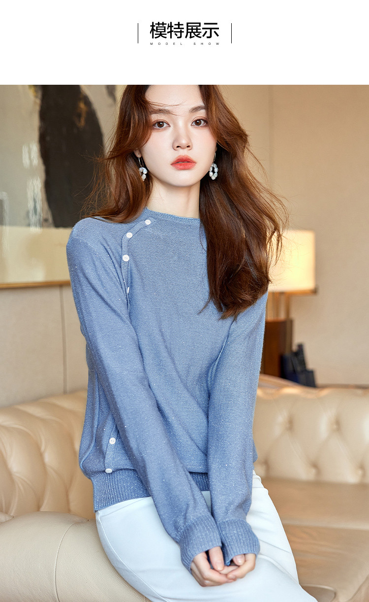 【轻奢亮片】春秋季款经典优雅风侧边纽扣点缀套头针织衫