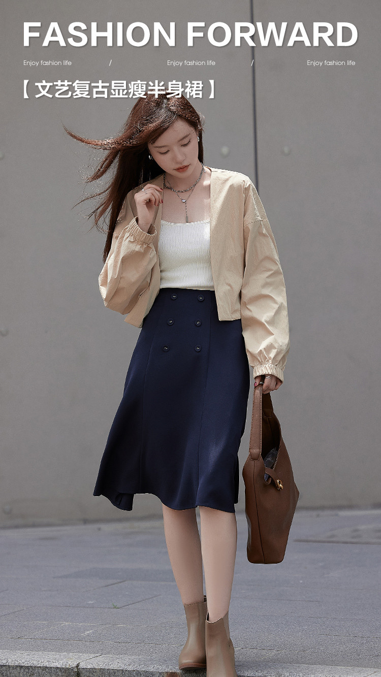 【文艺复古】2023秋季新品 百搭气质文艺复古显瘦半身中长裙