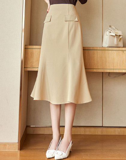 【纯色鱼尾】春秋季款气质通勤袋盖装饰鱼尾半身裙
