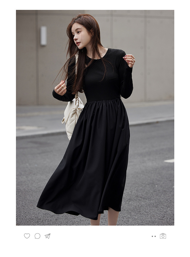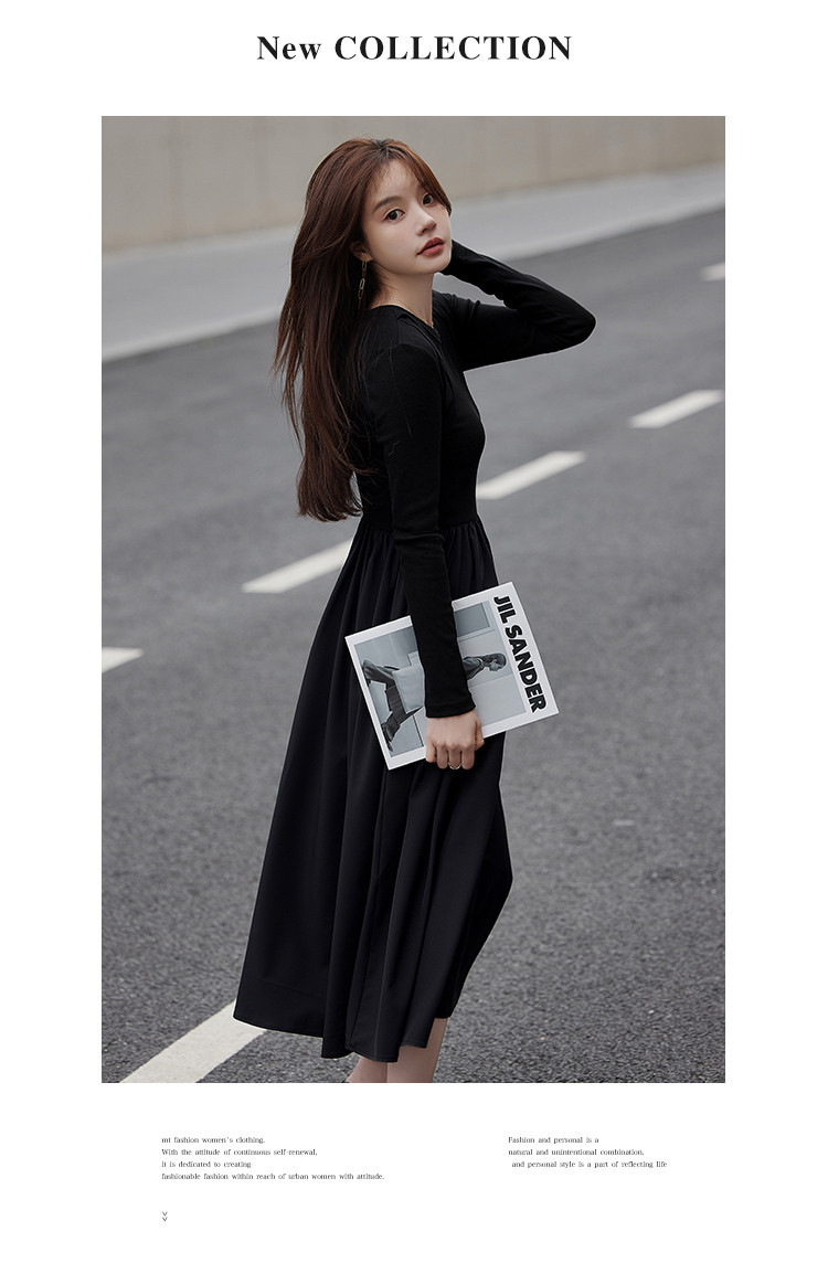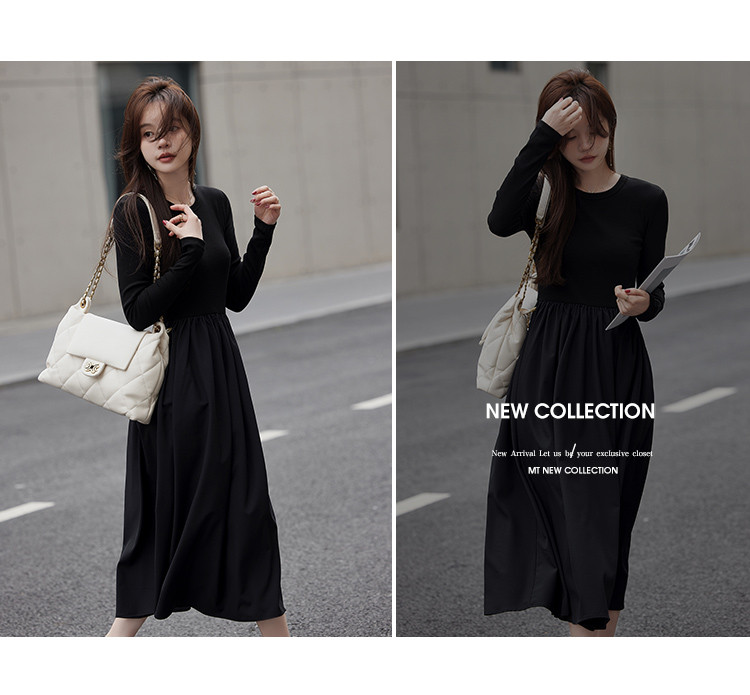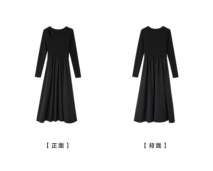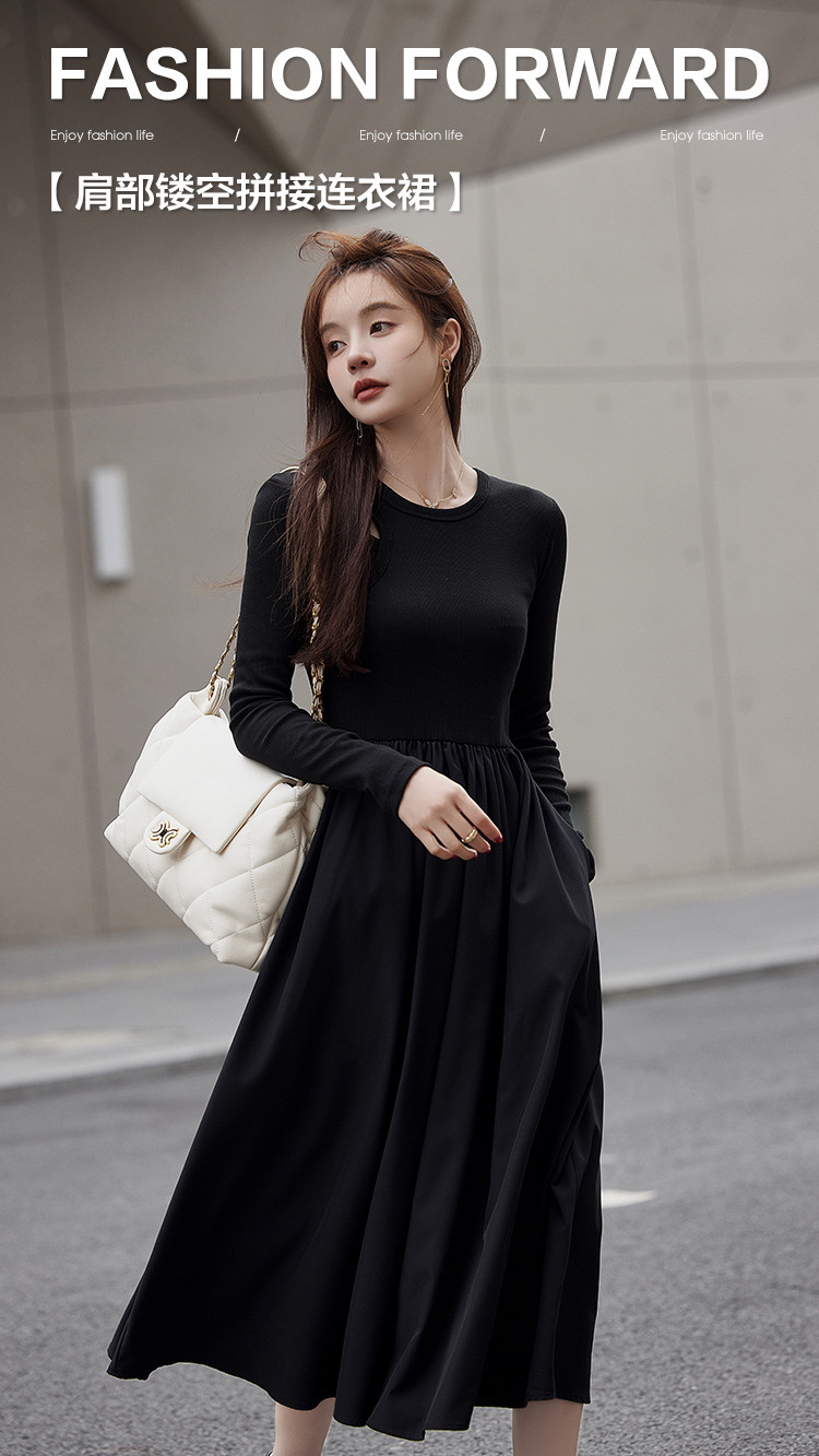 【面料拼接】2023秋季新品肩部镂空设计圆领长款连衣裙