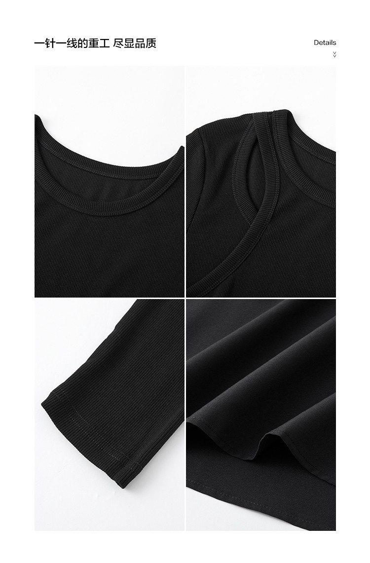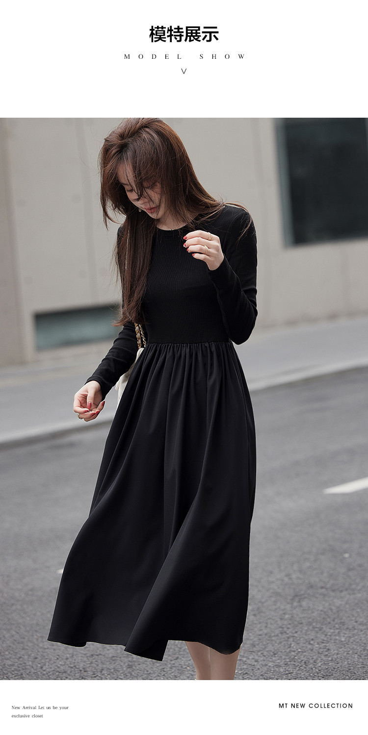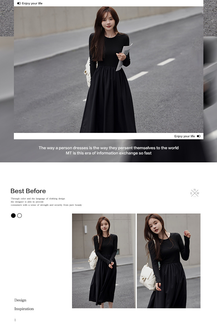 【面料拼接】2023秋季新品肩部镂空设计圆领长款连衣裙