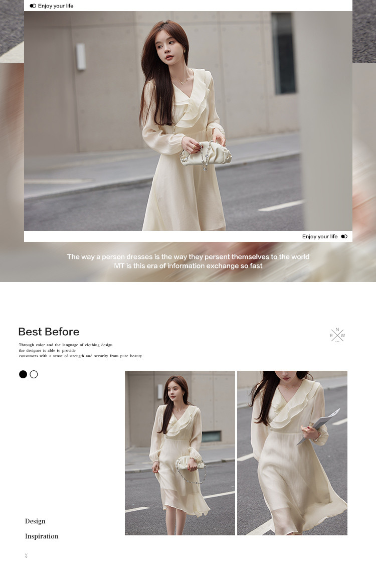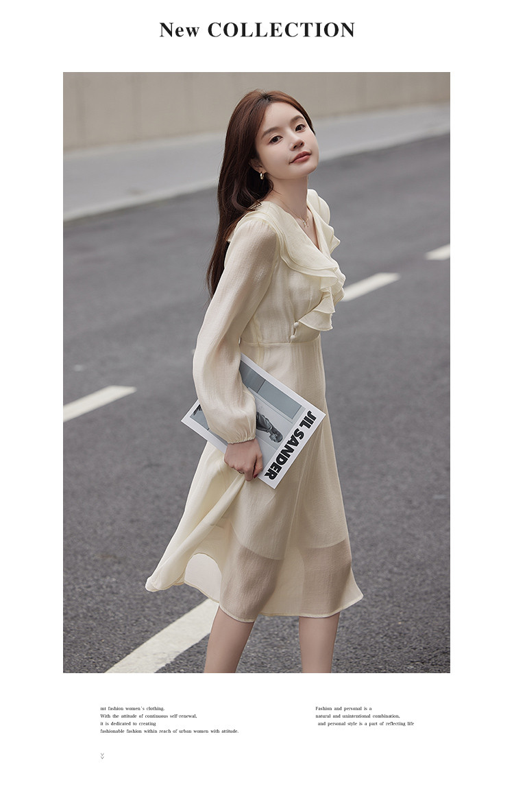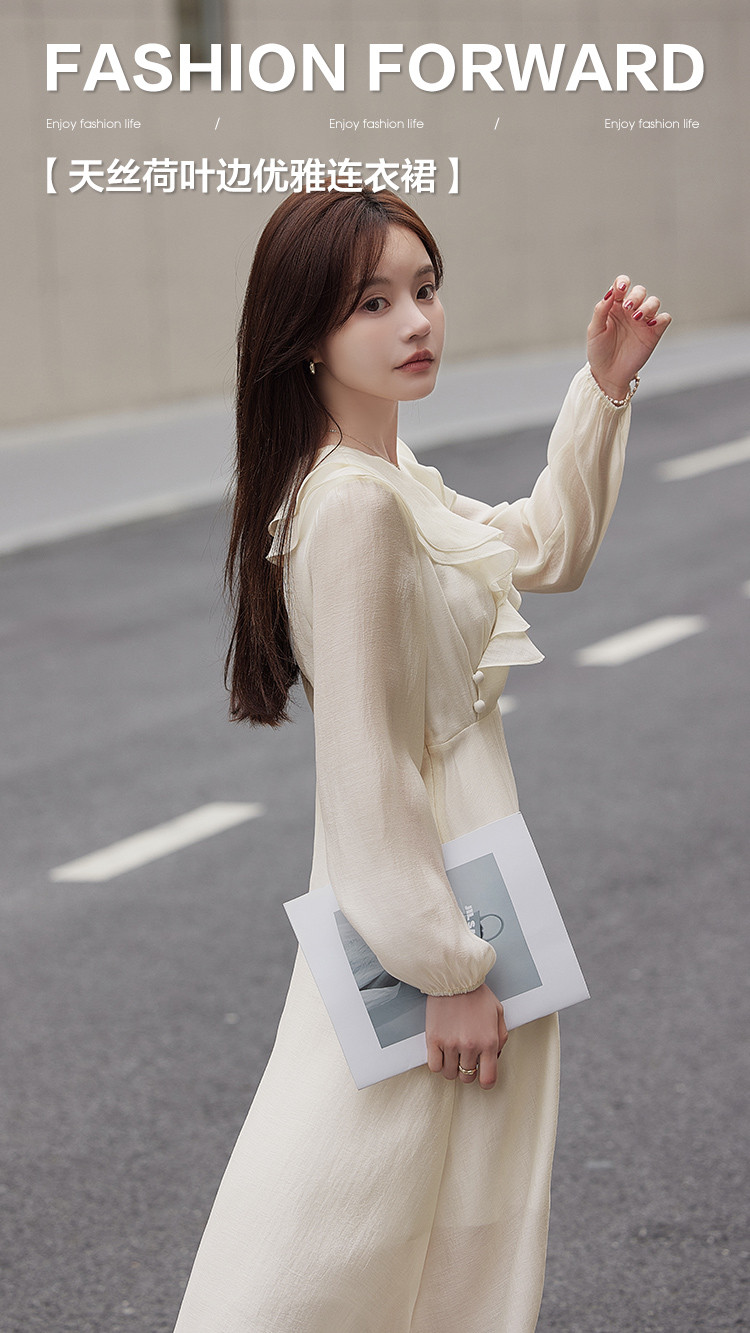 【荷叶边】2023夏季新品法式浪漫风轻薄天丝荷灯笼袖连衣裙