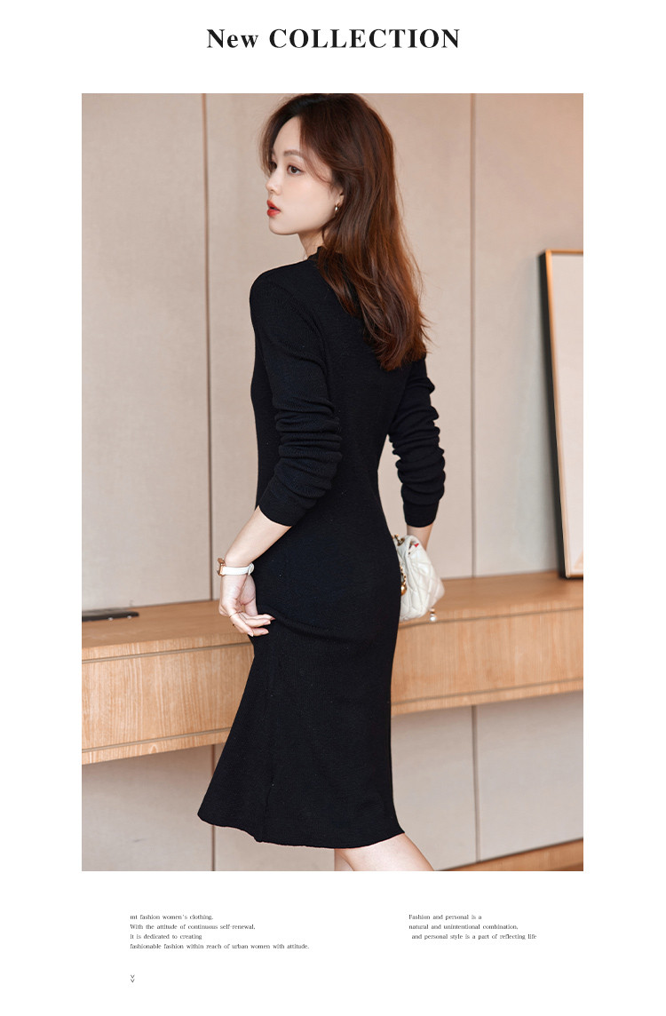 【气质大摆美人鱼】秋款 纯色百搭针织A摆针织连衣裙