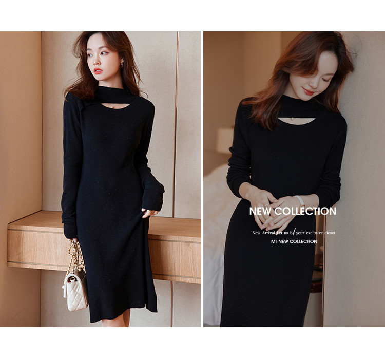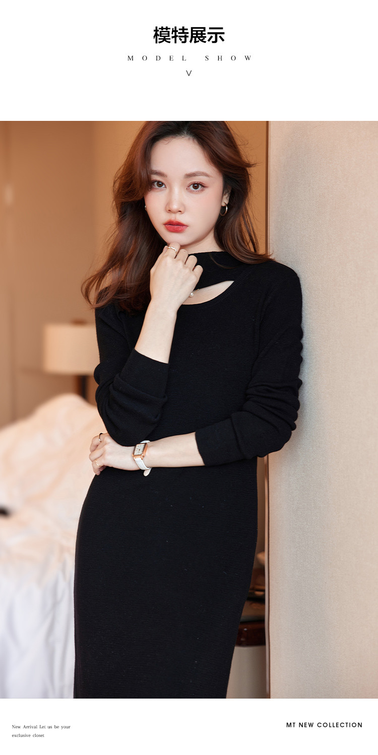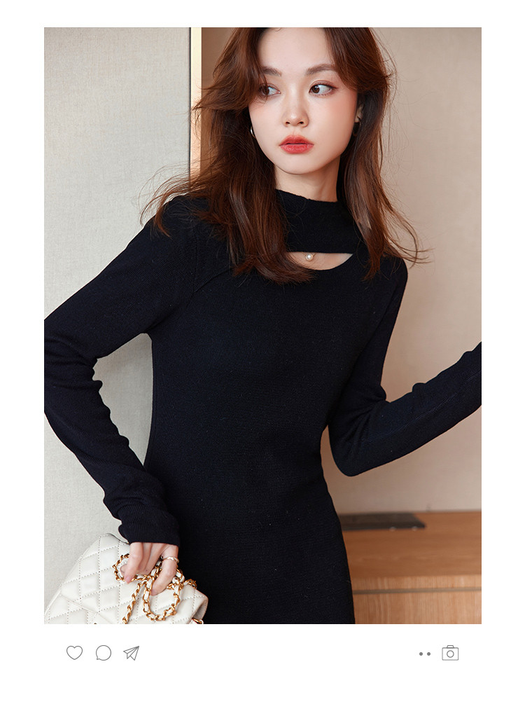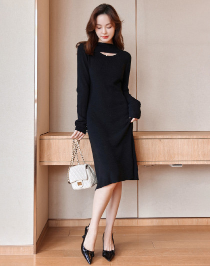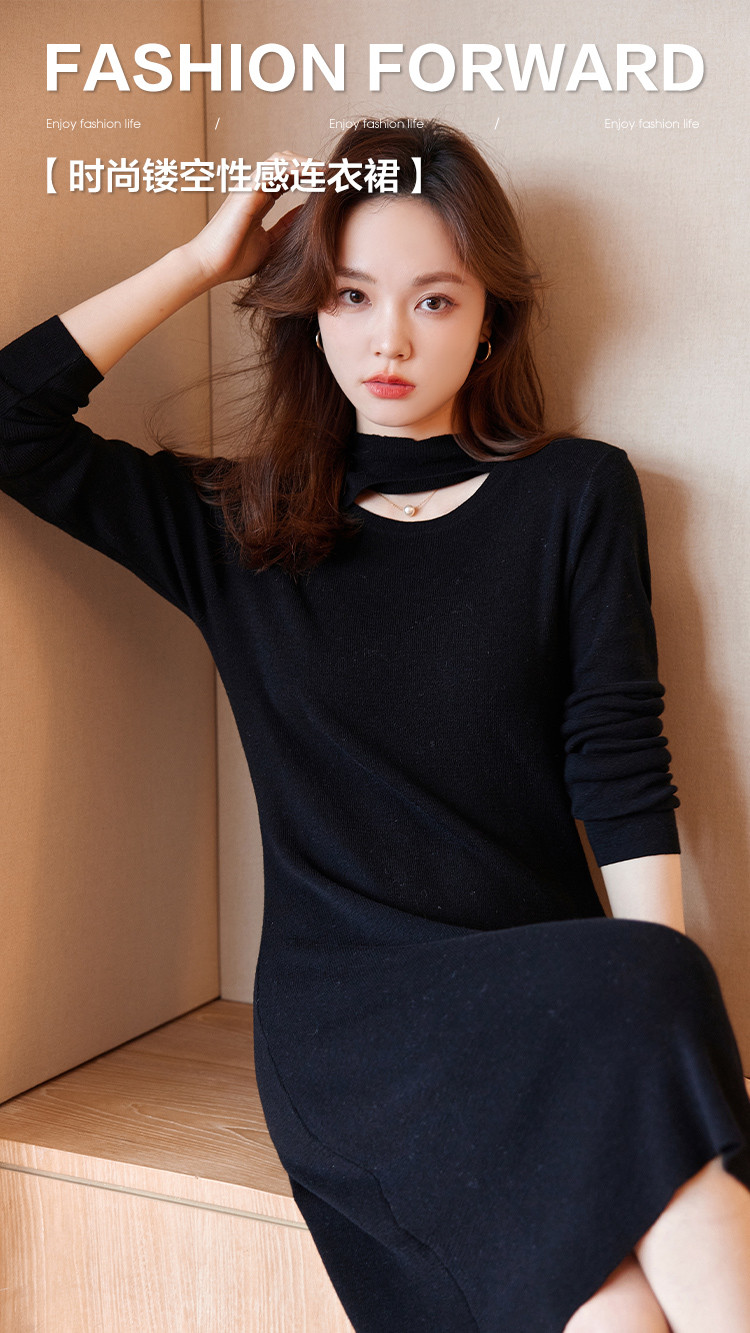【镂空性感】春秋季款时尚纯色长袖线衫长袖连衣裙