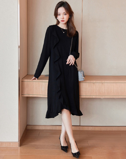 【波浪边】春秋季款法式浪漫风精致套头长袖线衫连衣裙