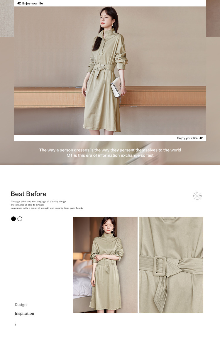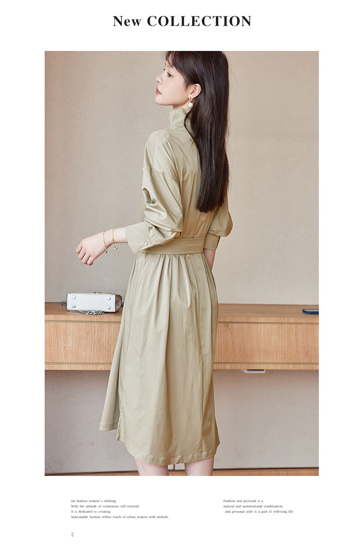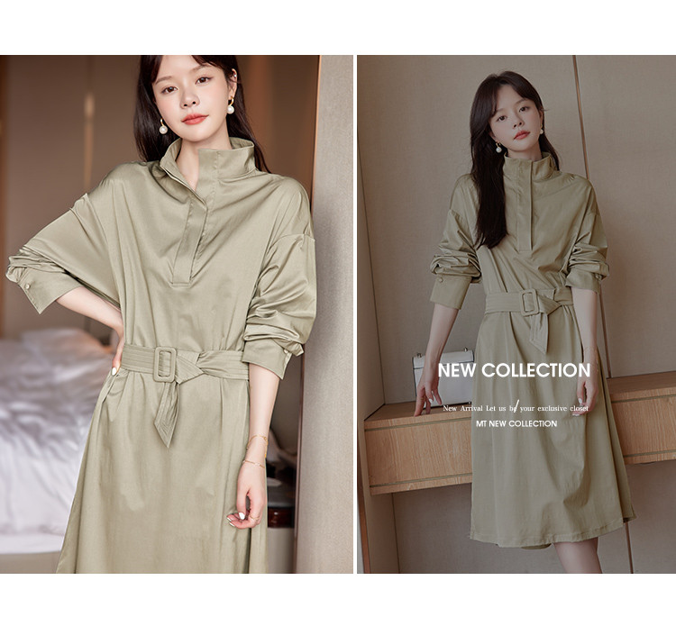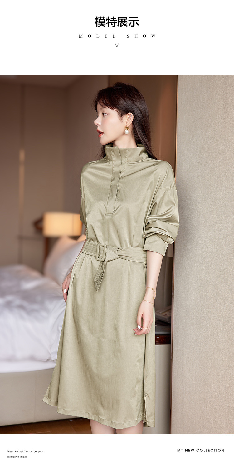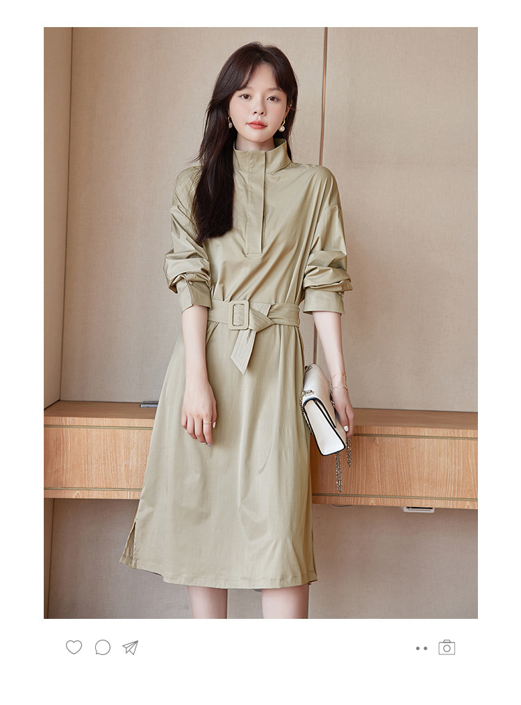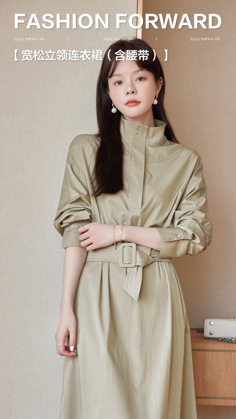 【精致立领】春秋季款都市休闲风斜纹面料宽松立领简约连衣裙