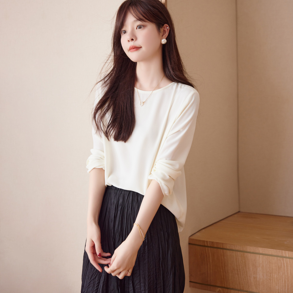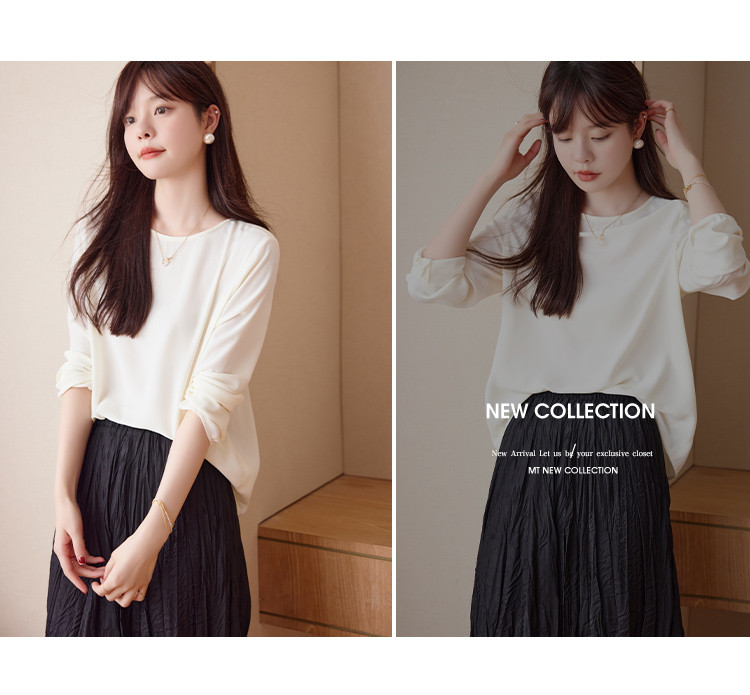 【纯色简约】春秋季款简约H版圆领优雅百搭风套头衬衫