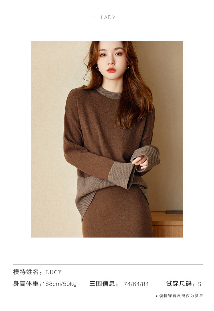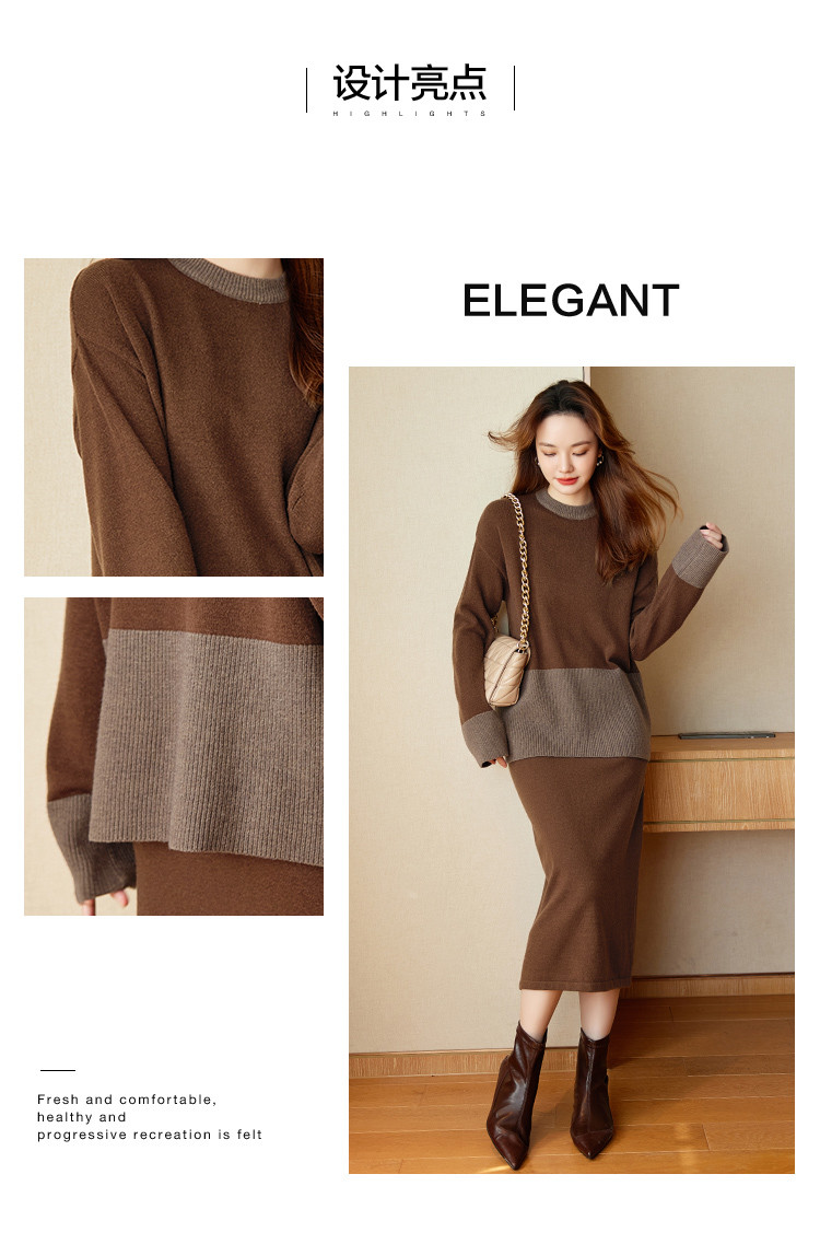【时尚撞色】2023秋冬季 松弛慵懒风经典休闲撞色针织套装女