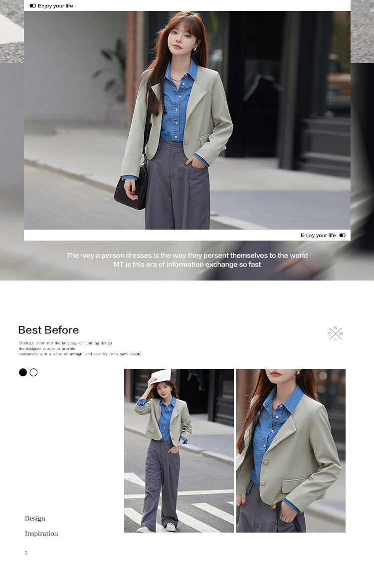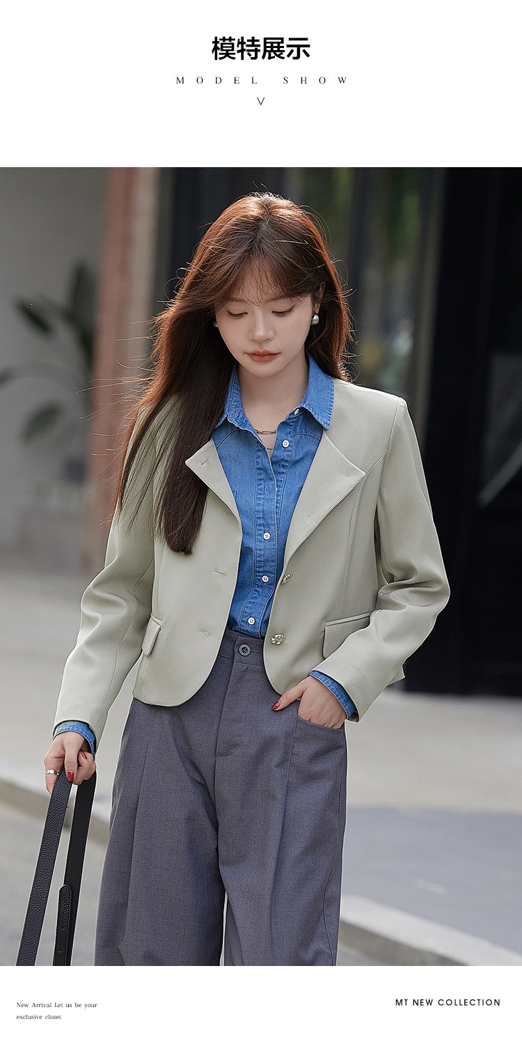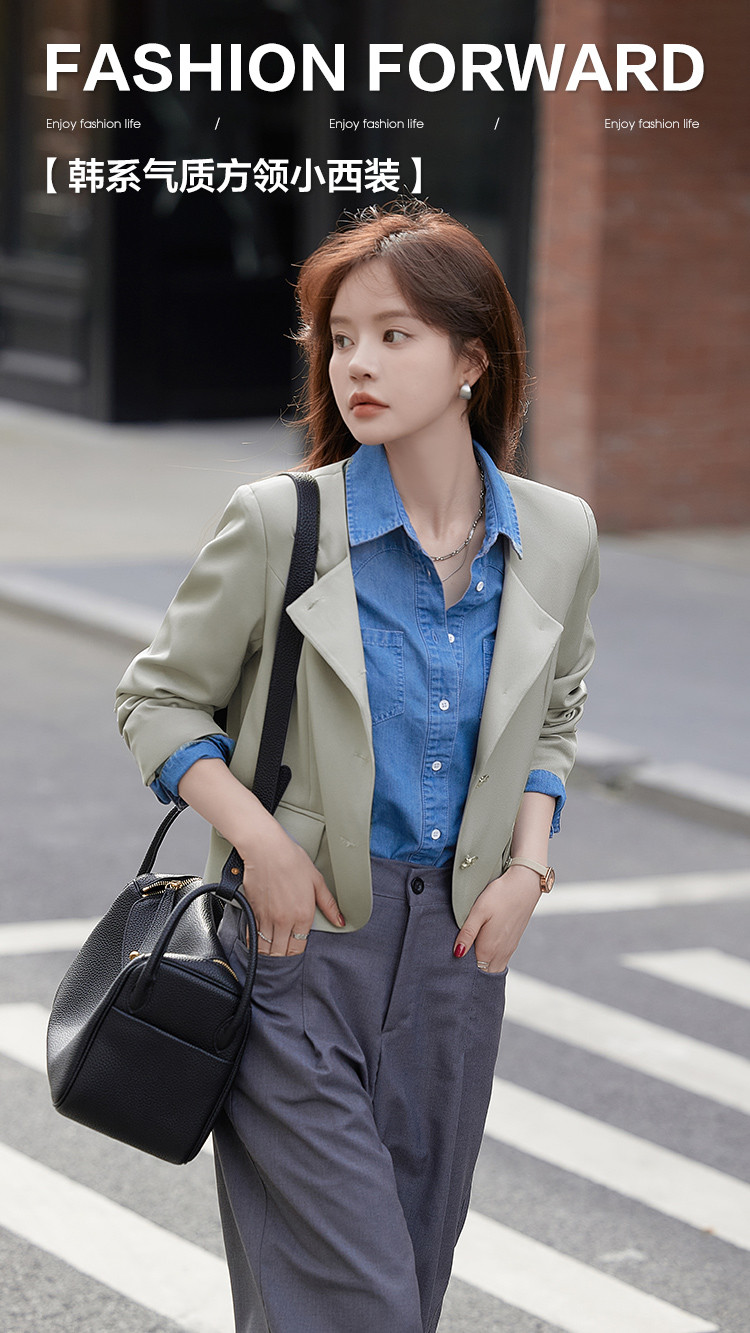 2023秋季新品韩系气质方领简约休闲小西装外套女