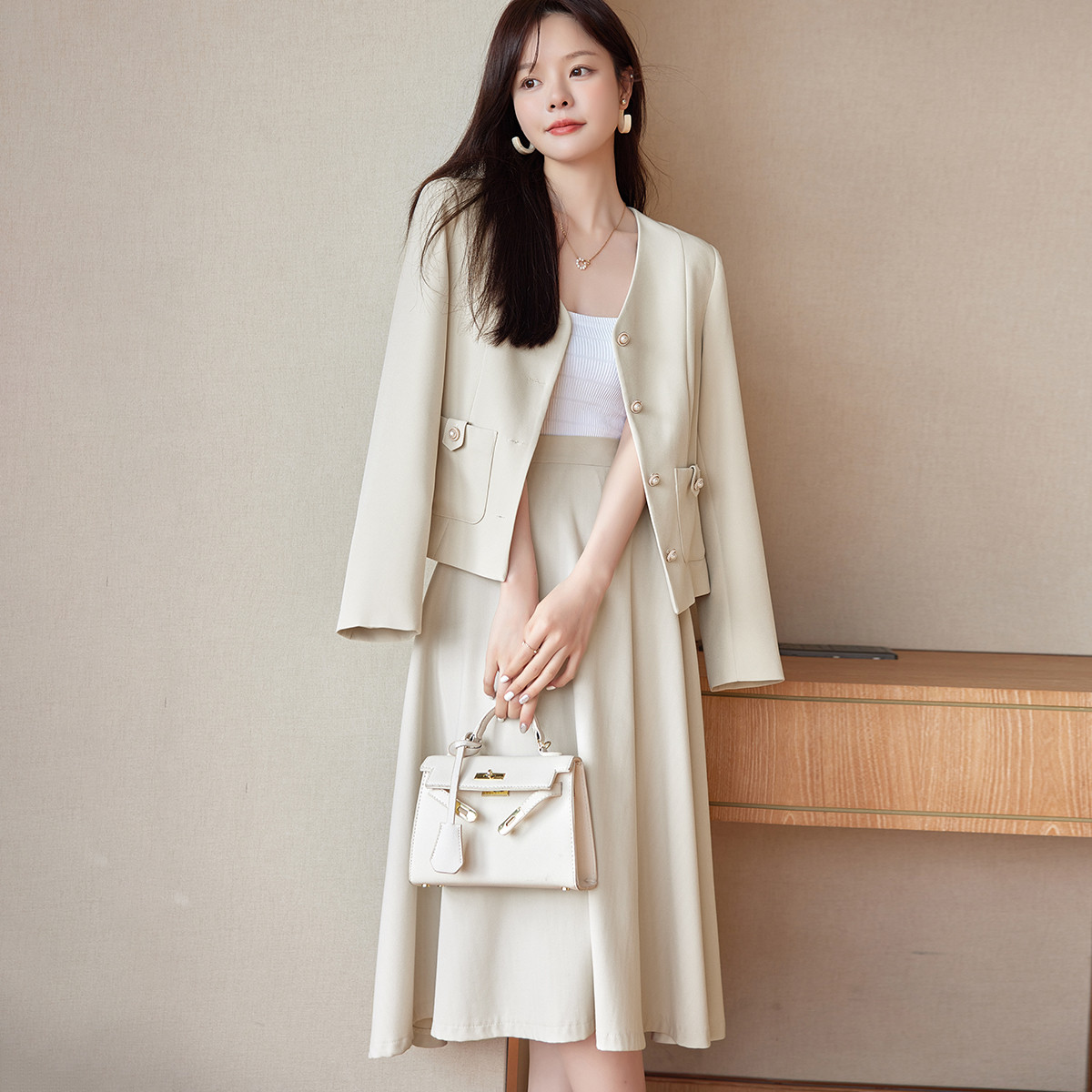 【H版V领】春秋季款都市休闲风平纹料珍珠搭扣外套
