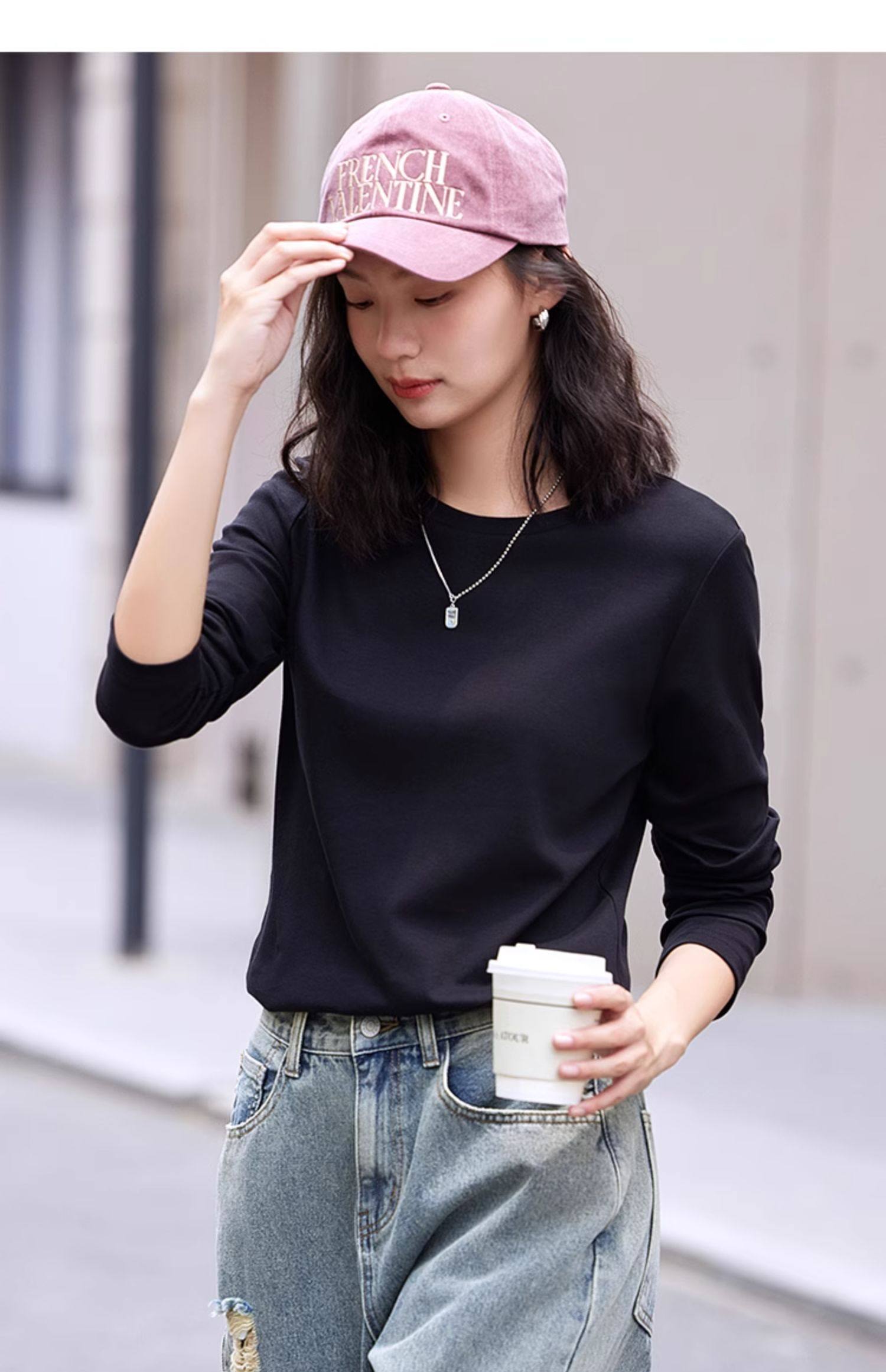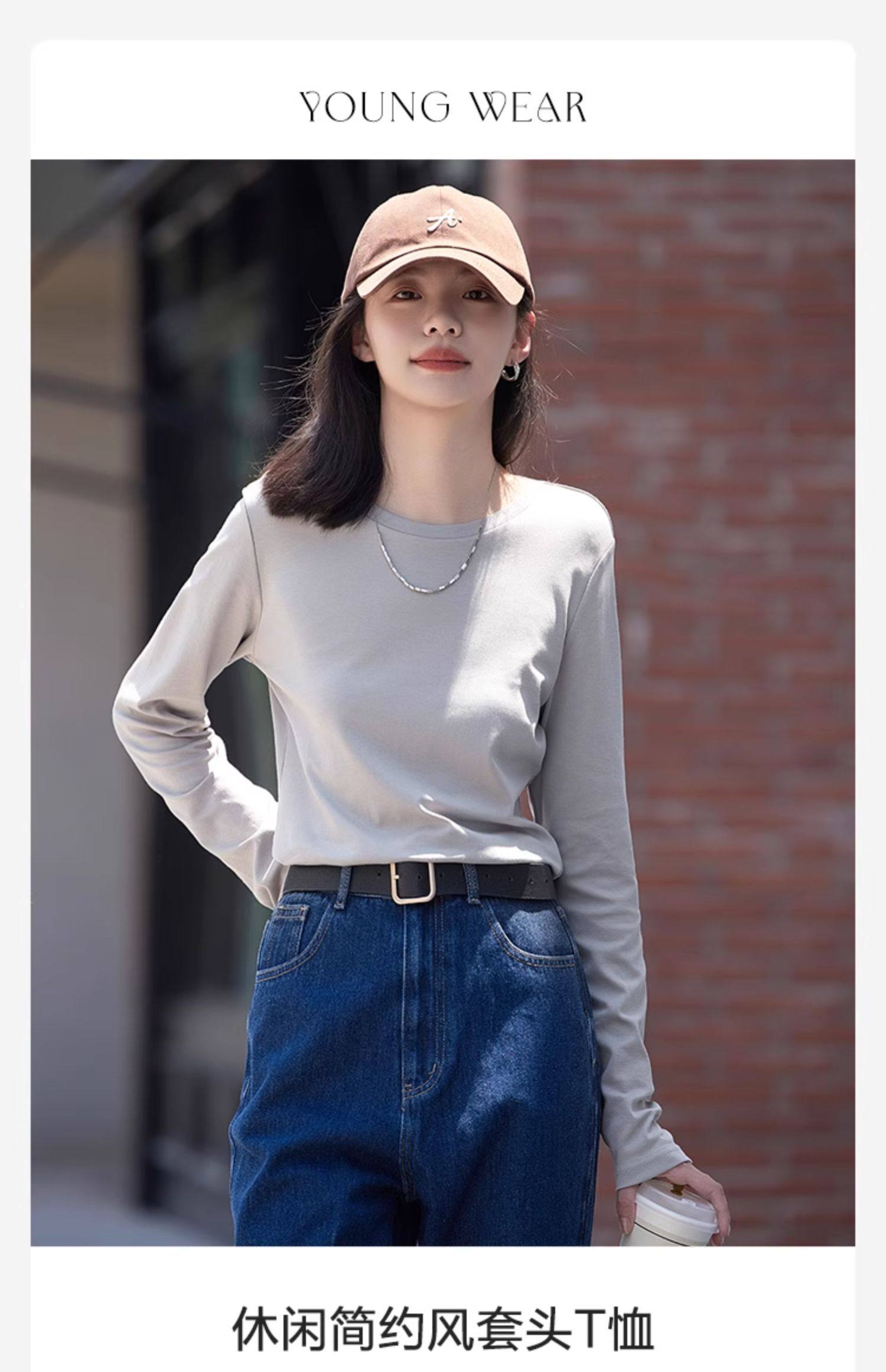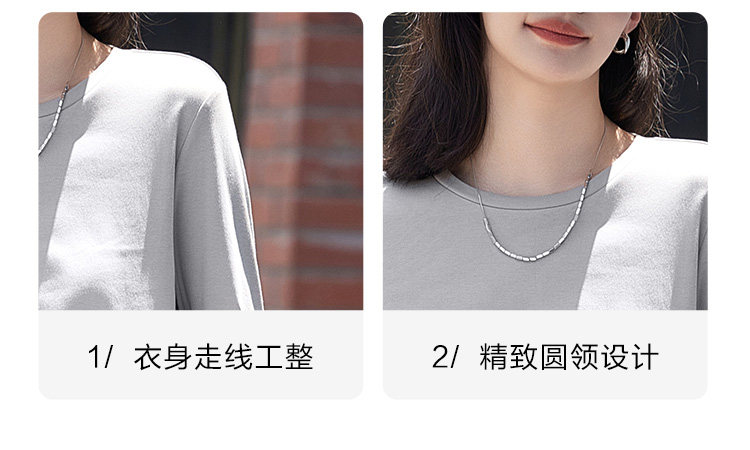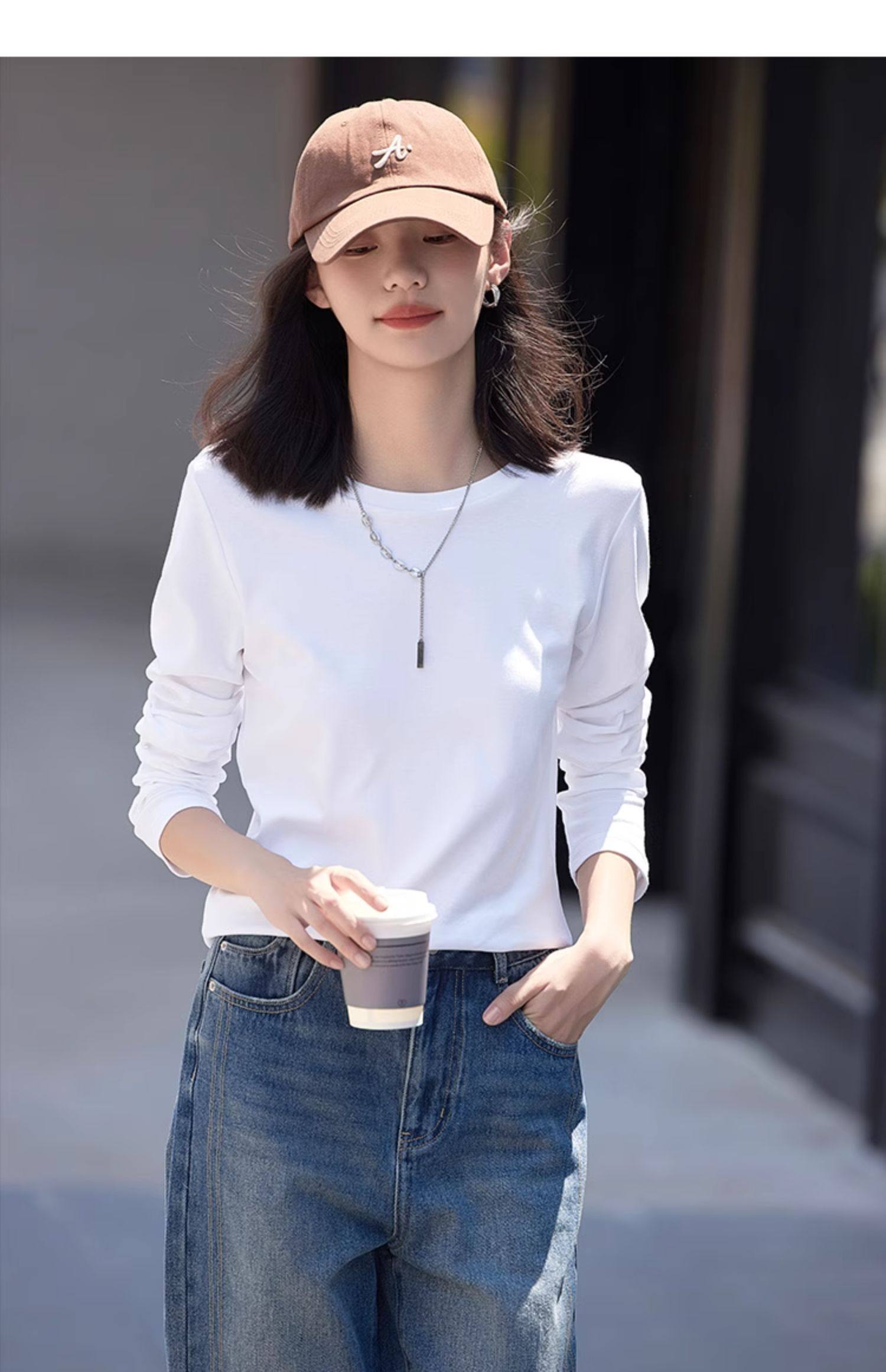 德玛纳长袖白色圆领t恤女士新款秋季设计感宽松上衣时尚体恤