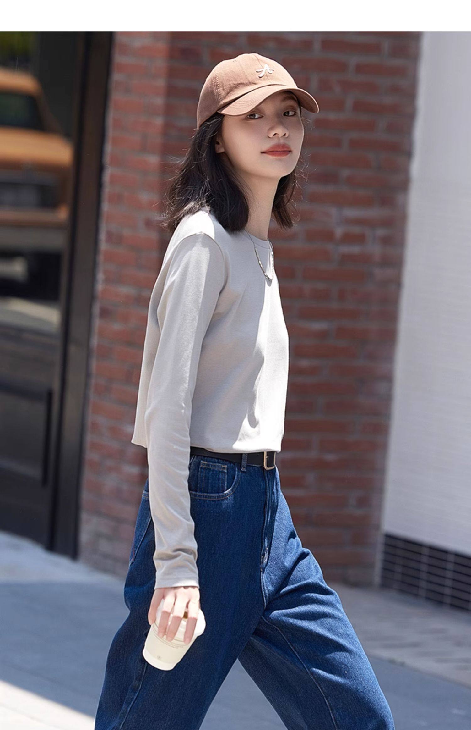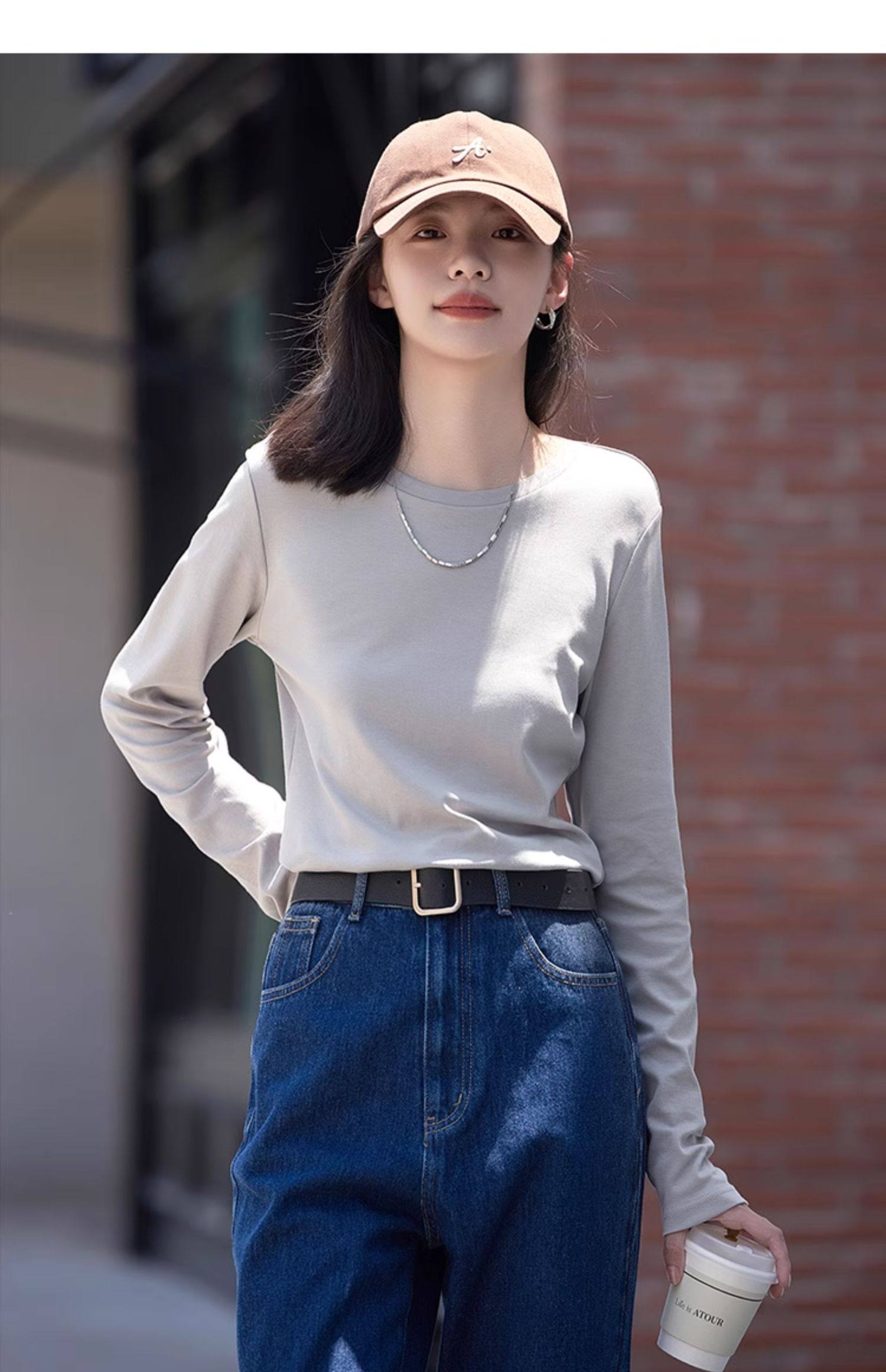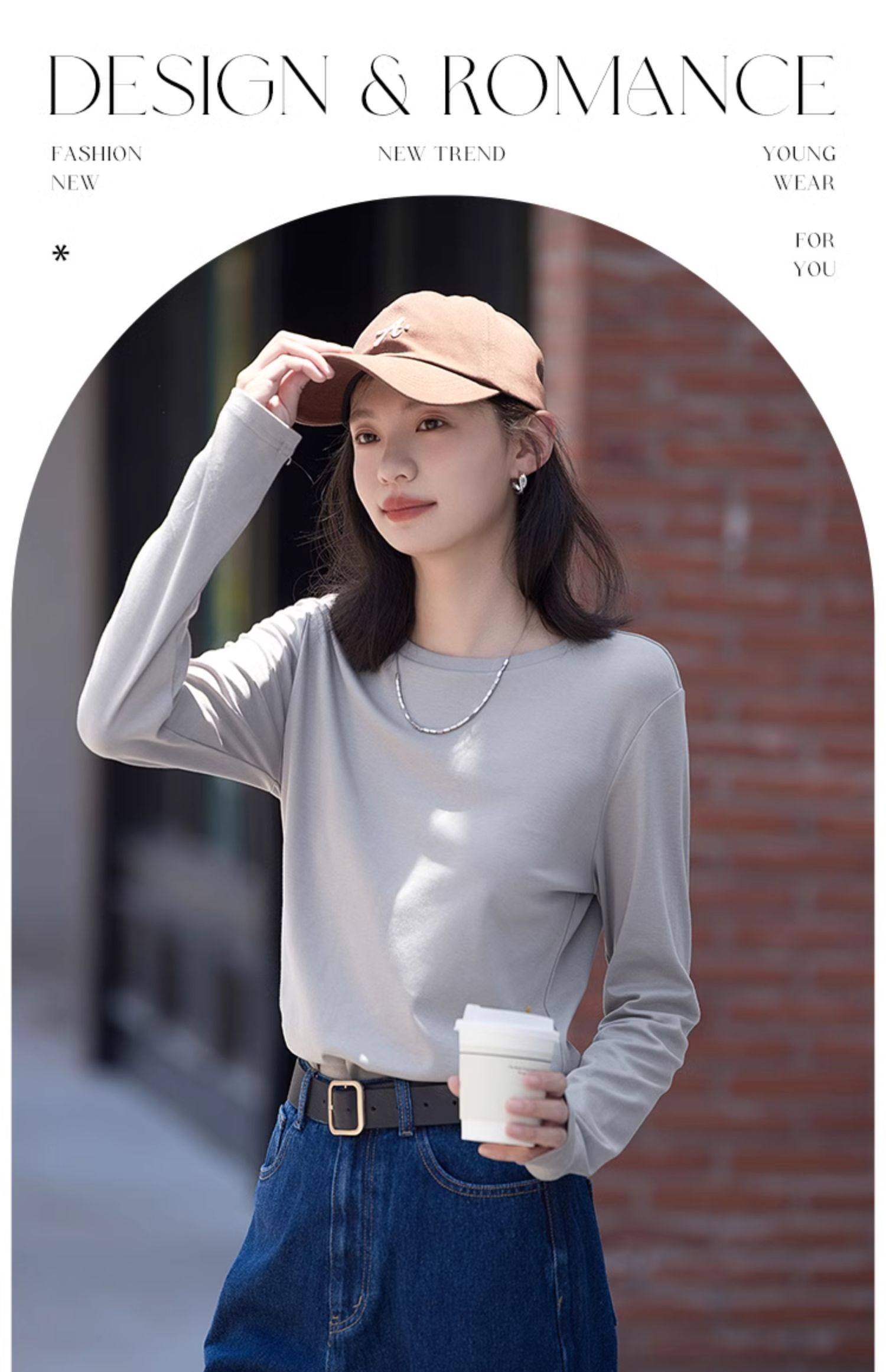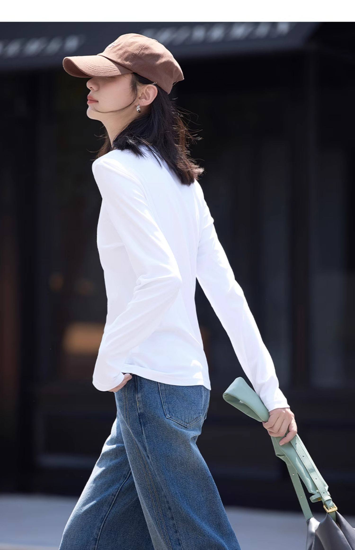 德玛纳长袖白色圆领t恤女士新款秋季设计感宽松上衣时尚体恤