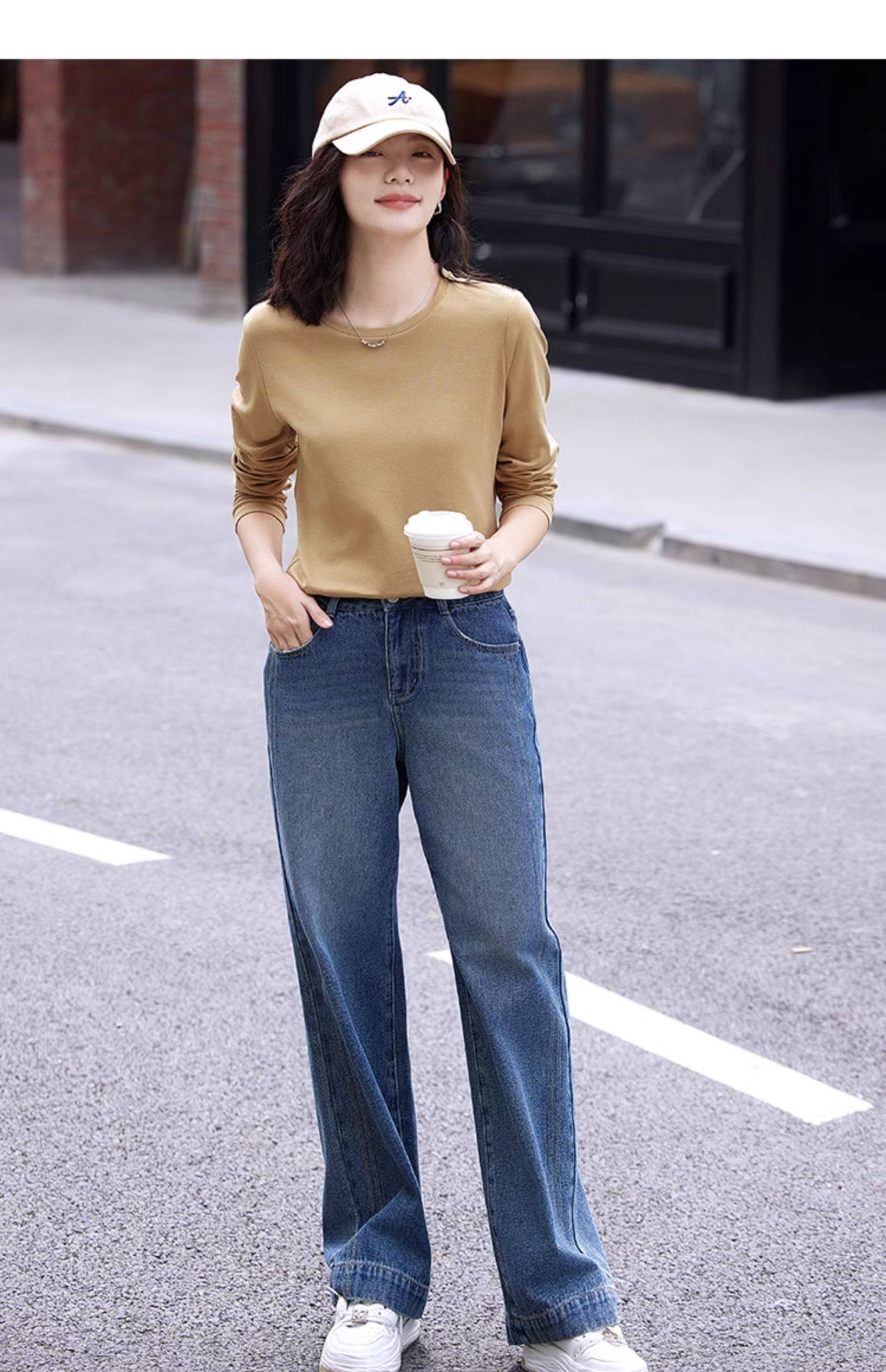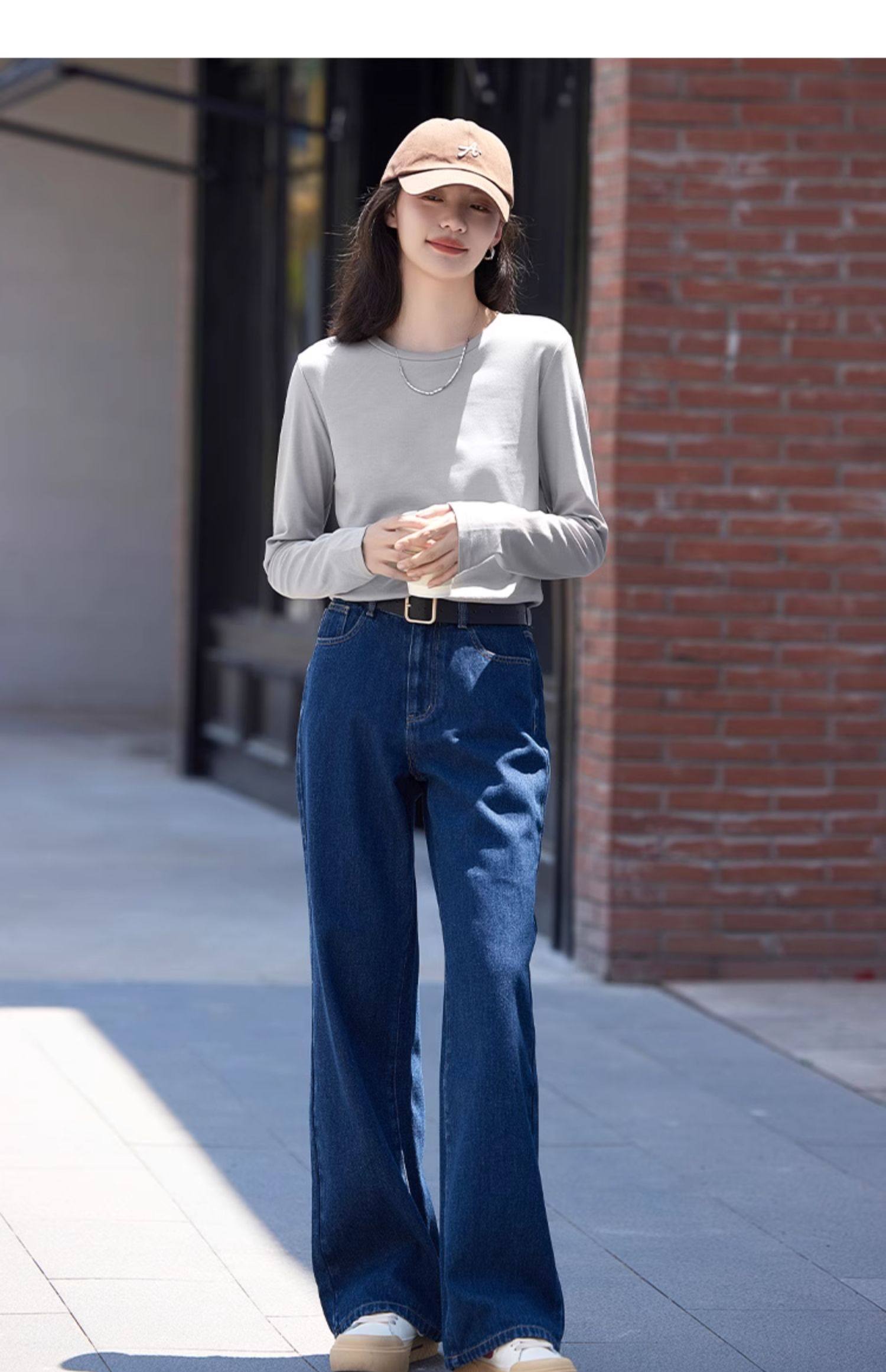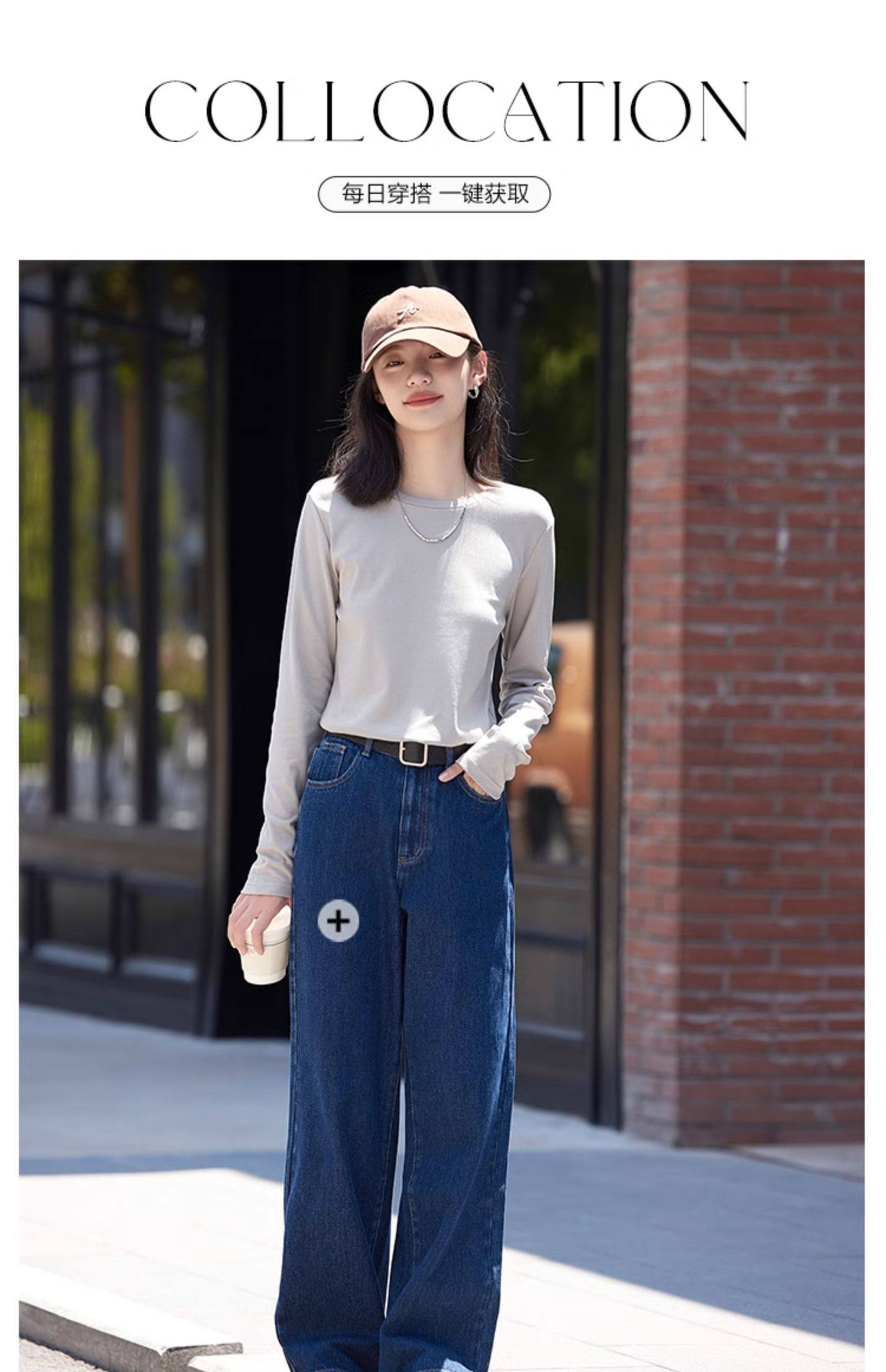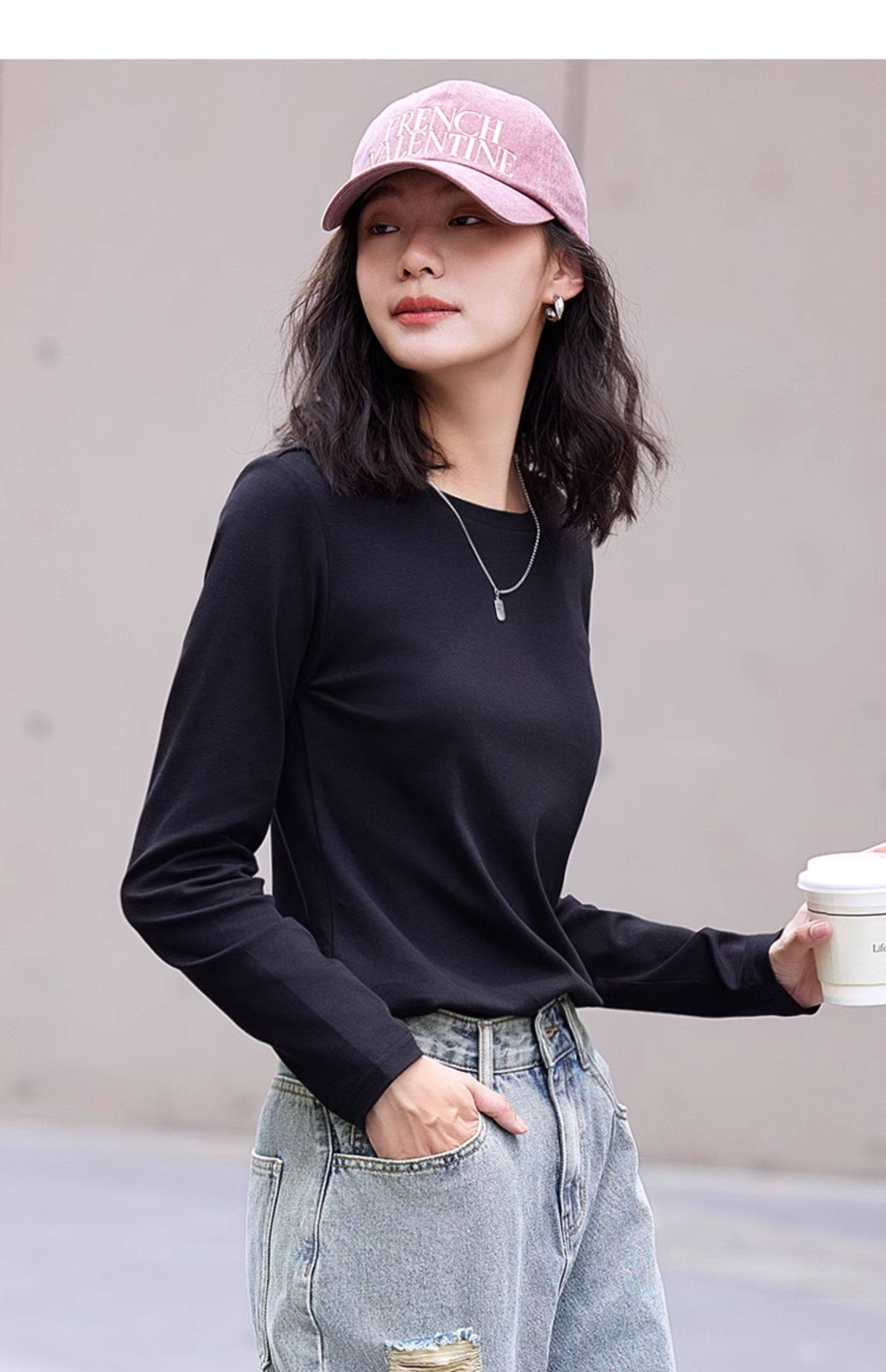 德玛纳长袖白色圆领t恤女士新款秋季设计感宽松上衣时尚体恤