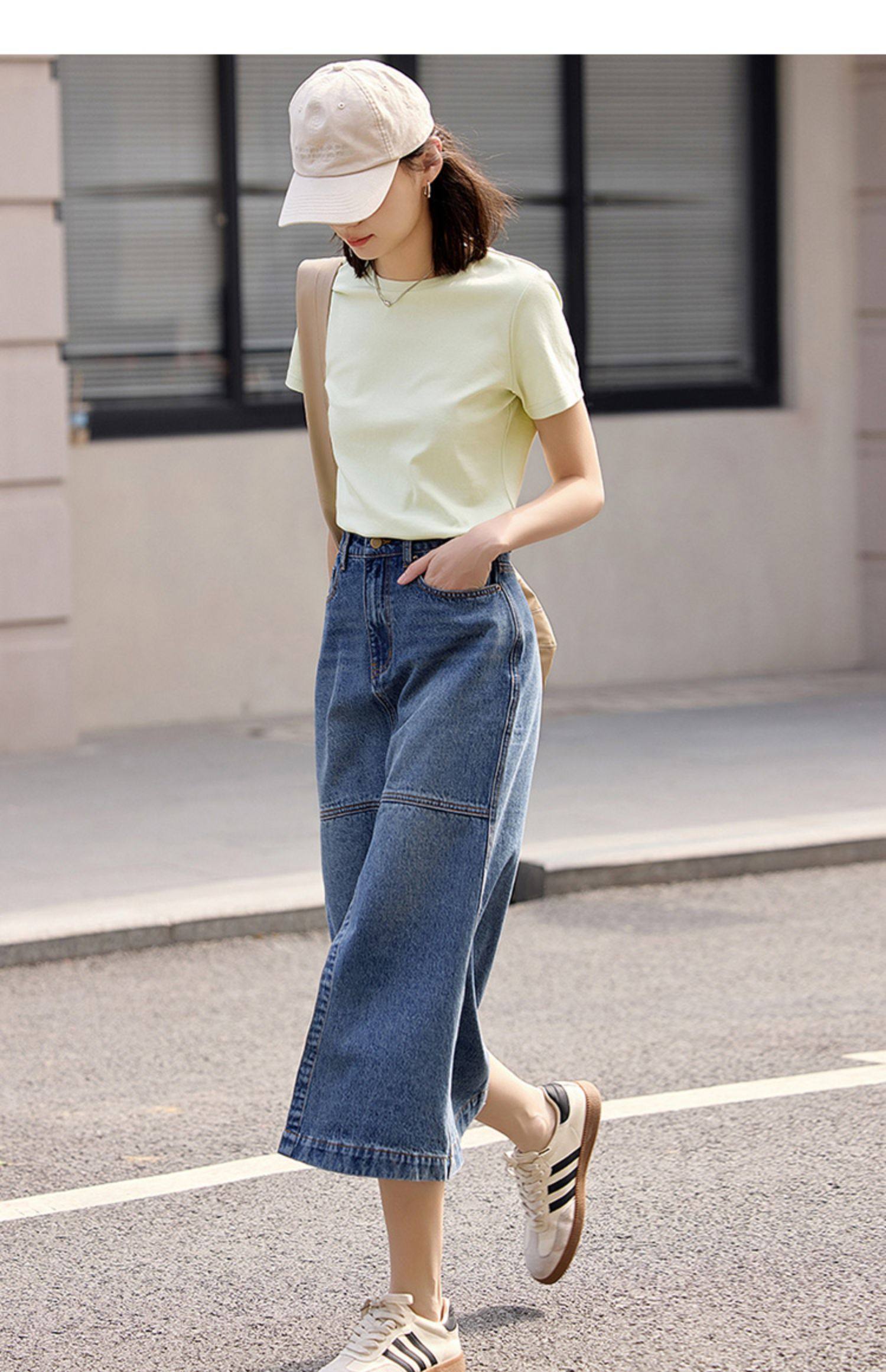 德玛纳蓝色牛仔半身裙女夏季新款中长休闲高腰显高显瘦A字裙