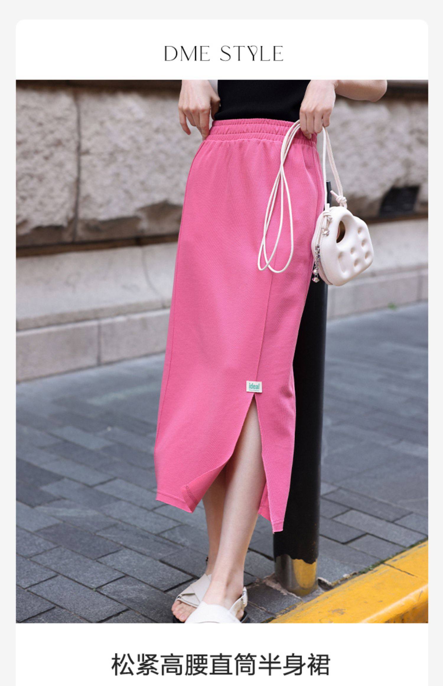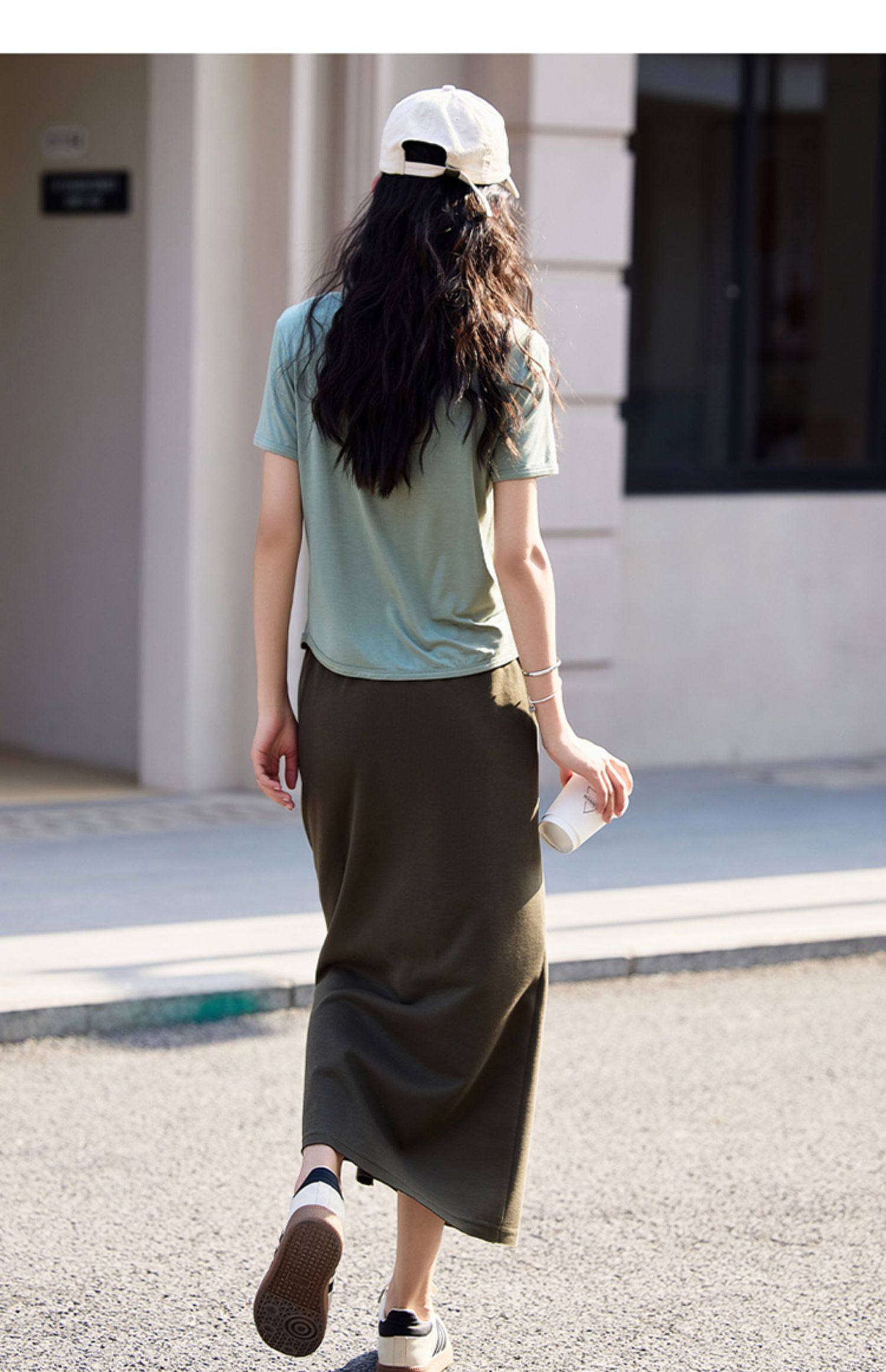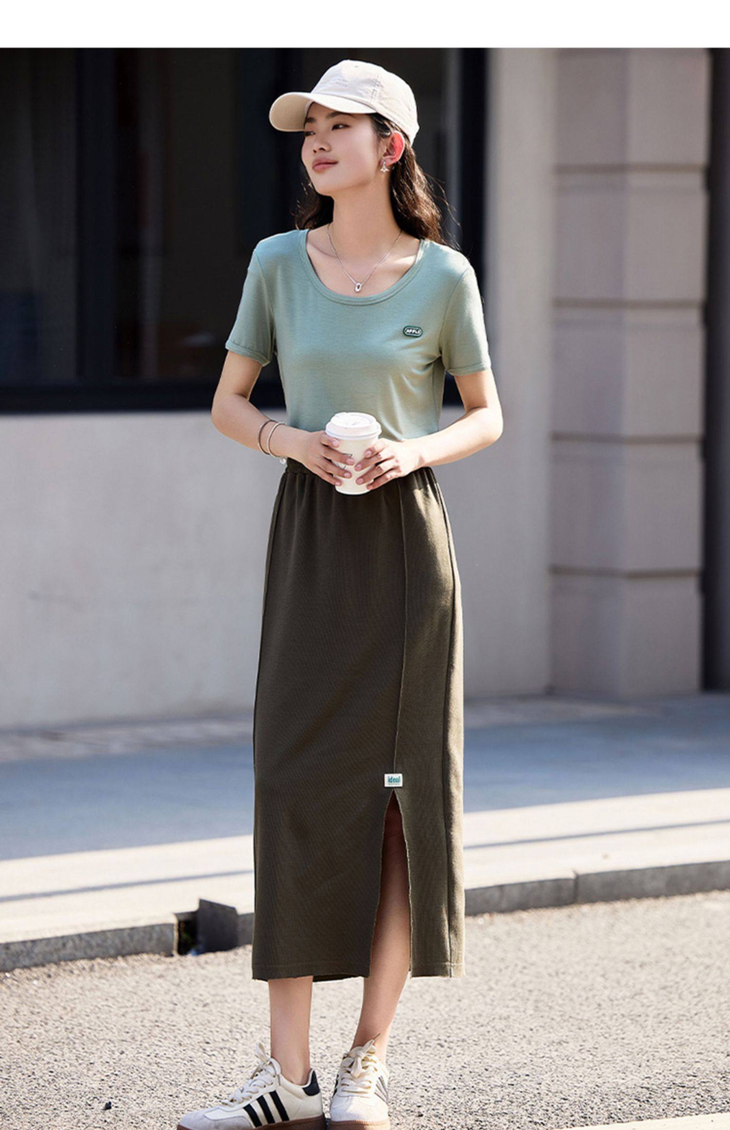 德玛纳夏季新品绿色半身裙女夏季新款中长款休闲高腰显高显瘦