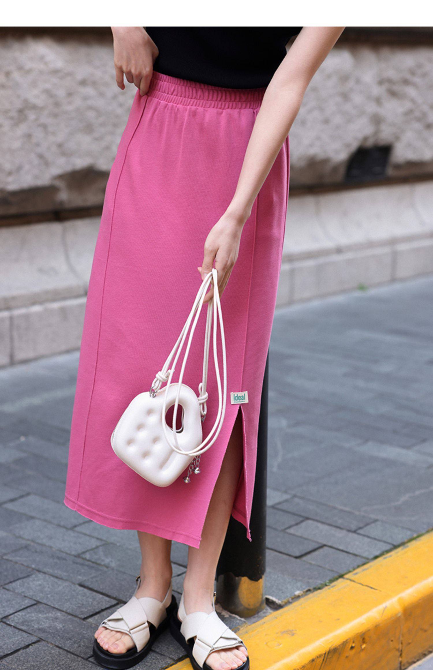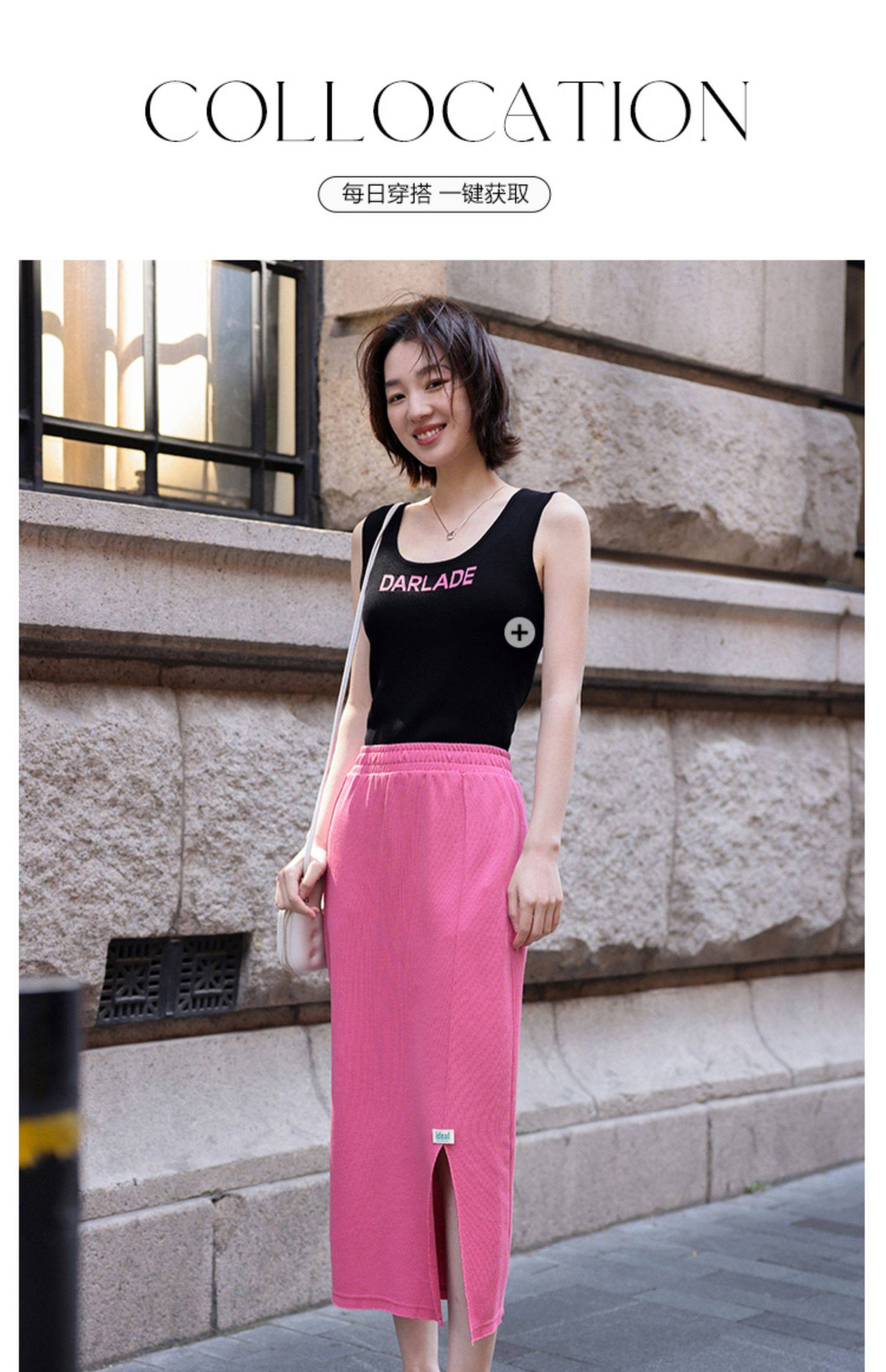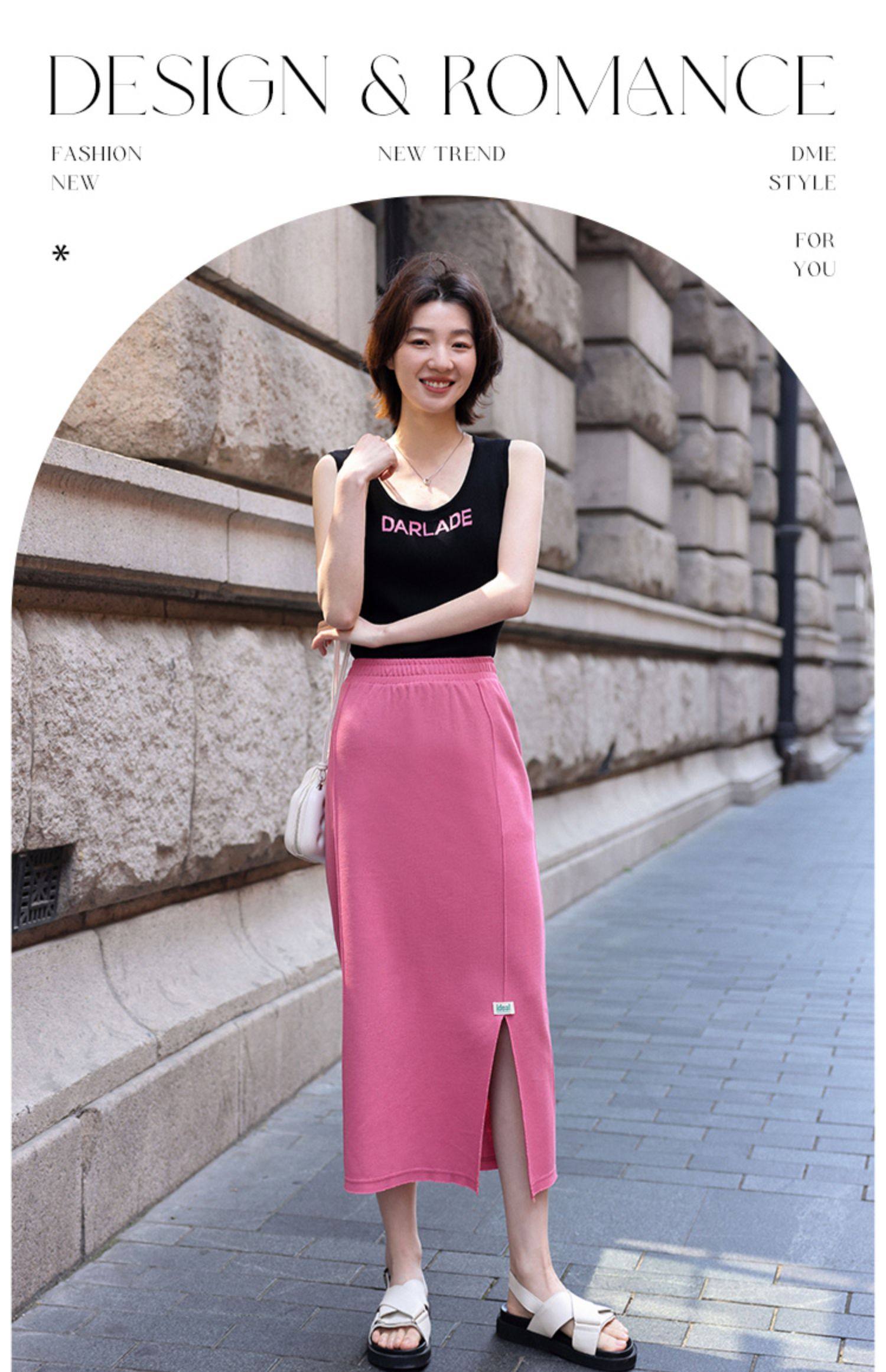 德玛纳夏季新品绿色半身裙女夏季新款中长款休闲高腰显高显瘦