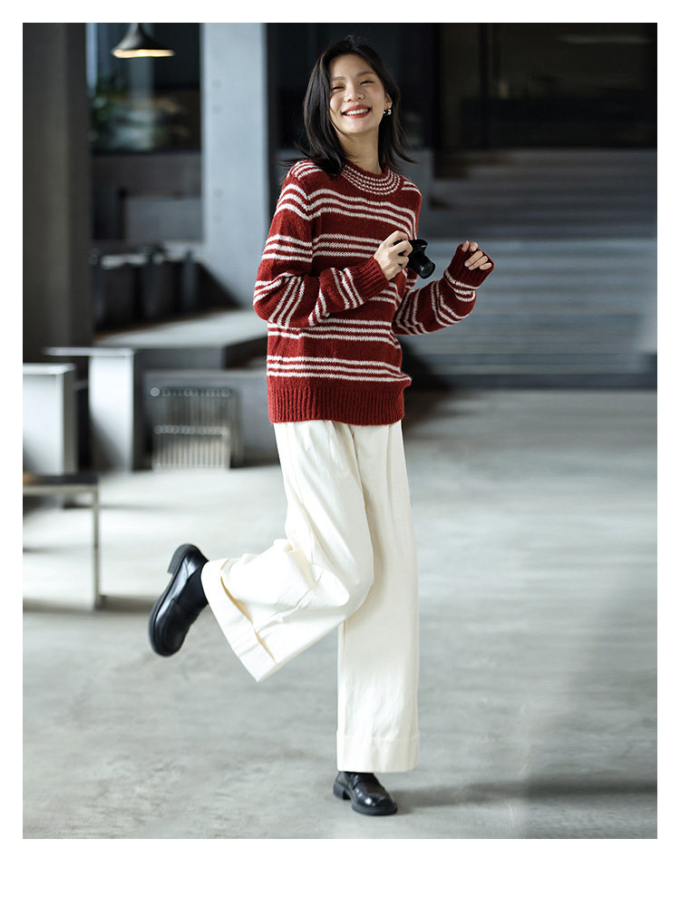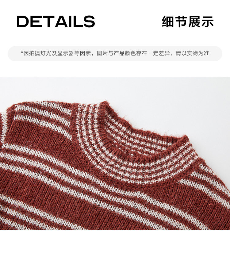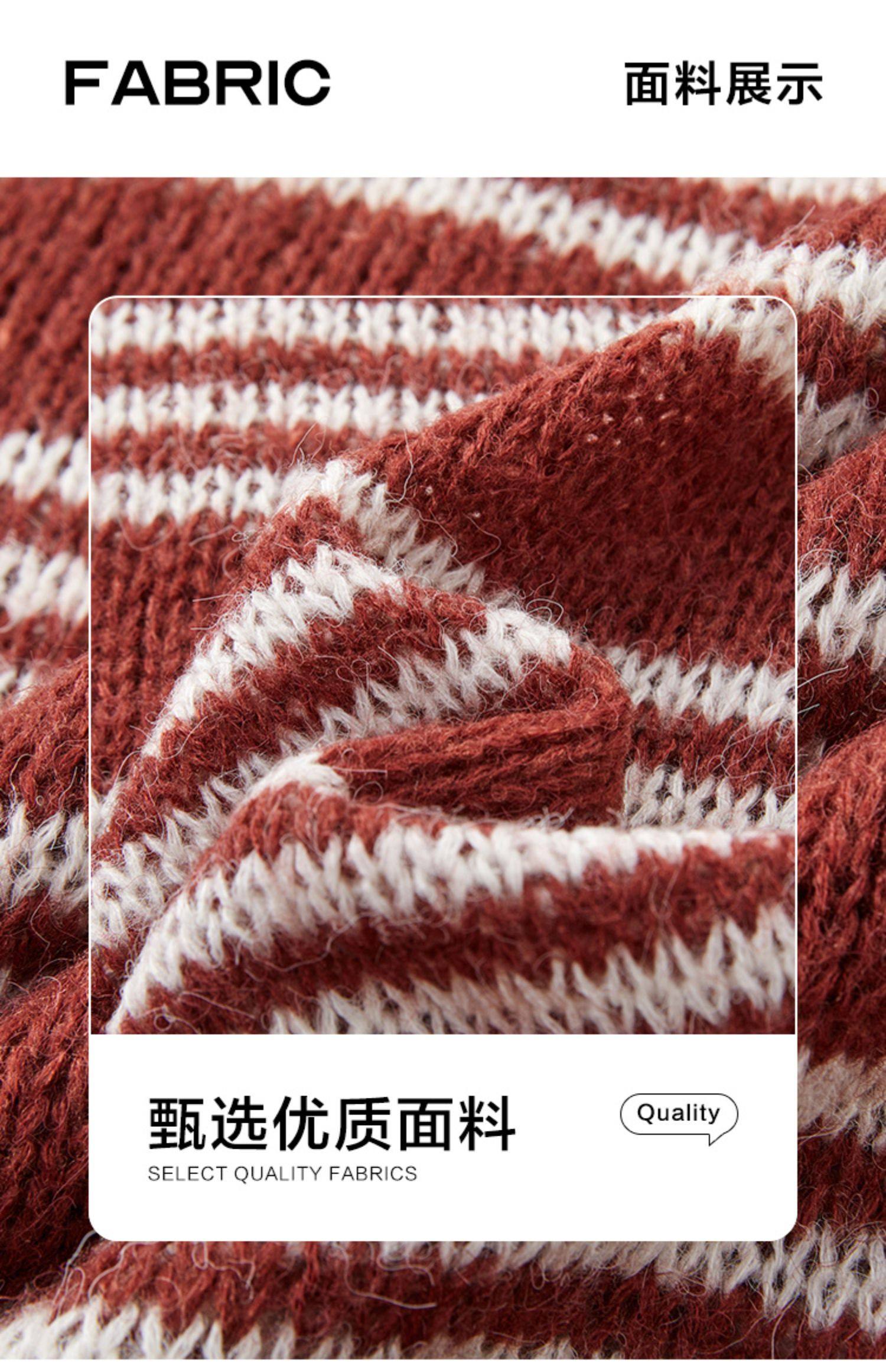 德玛纳复古条纹宽松慵懒风毛衣女秋冬季新款外穿外套针织上衣