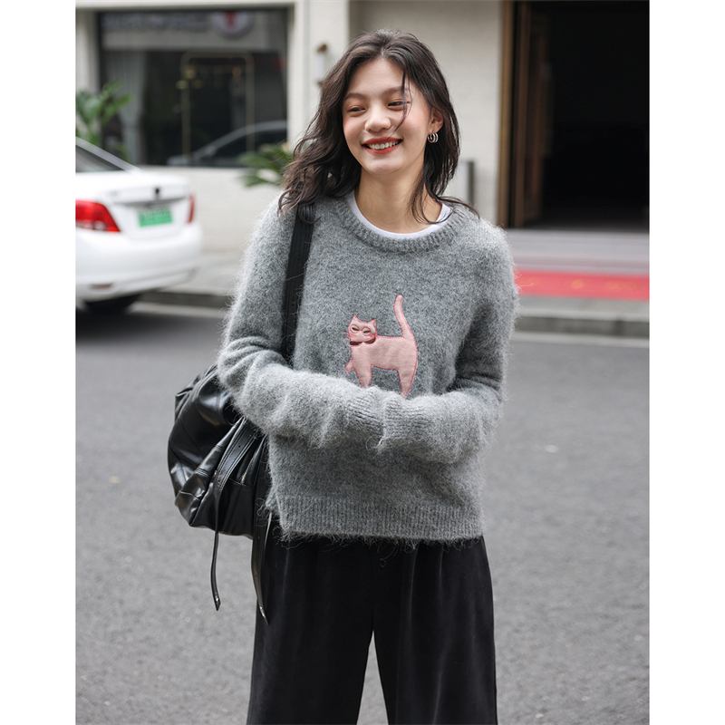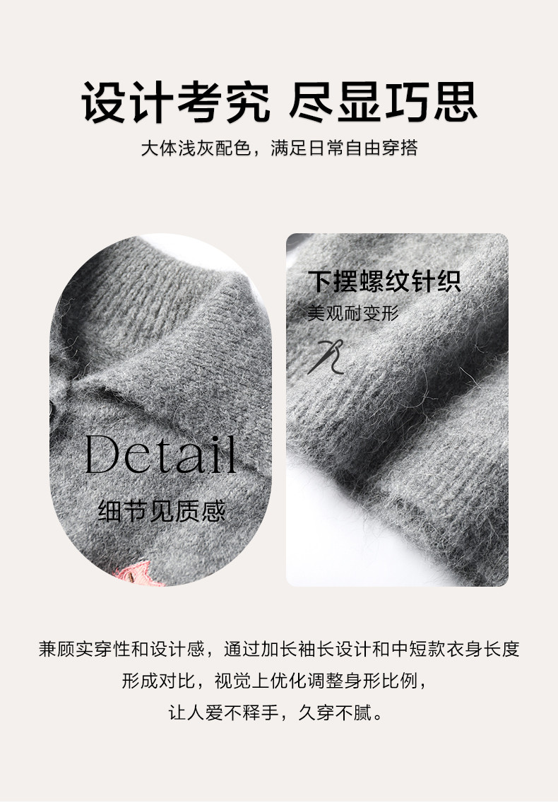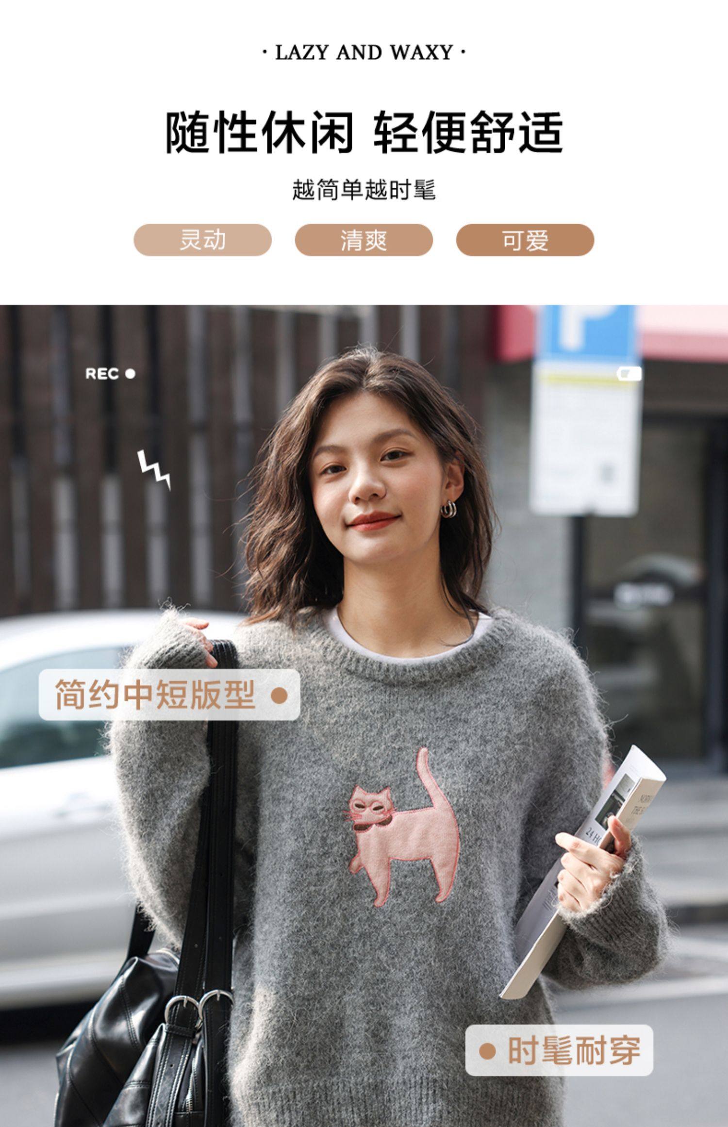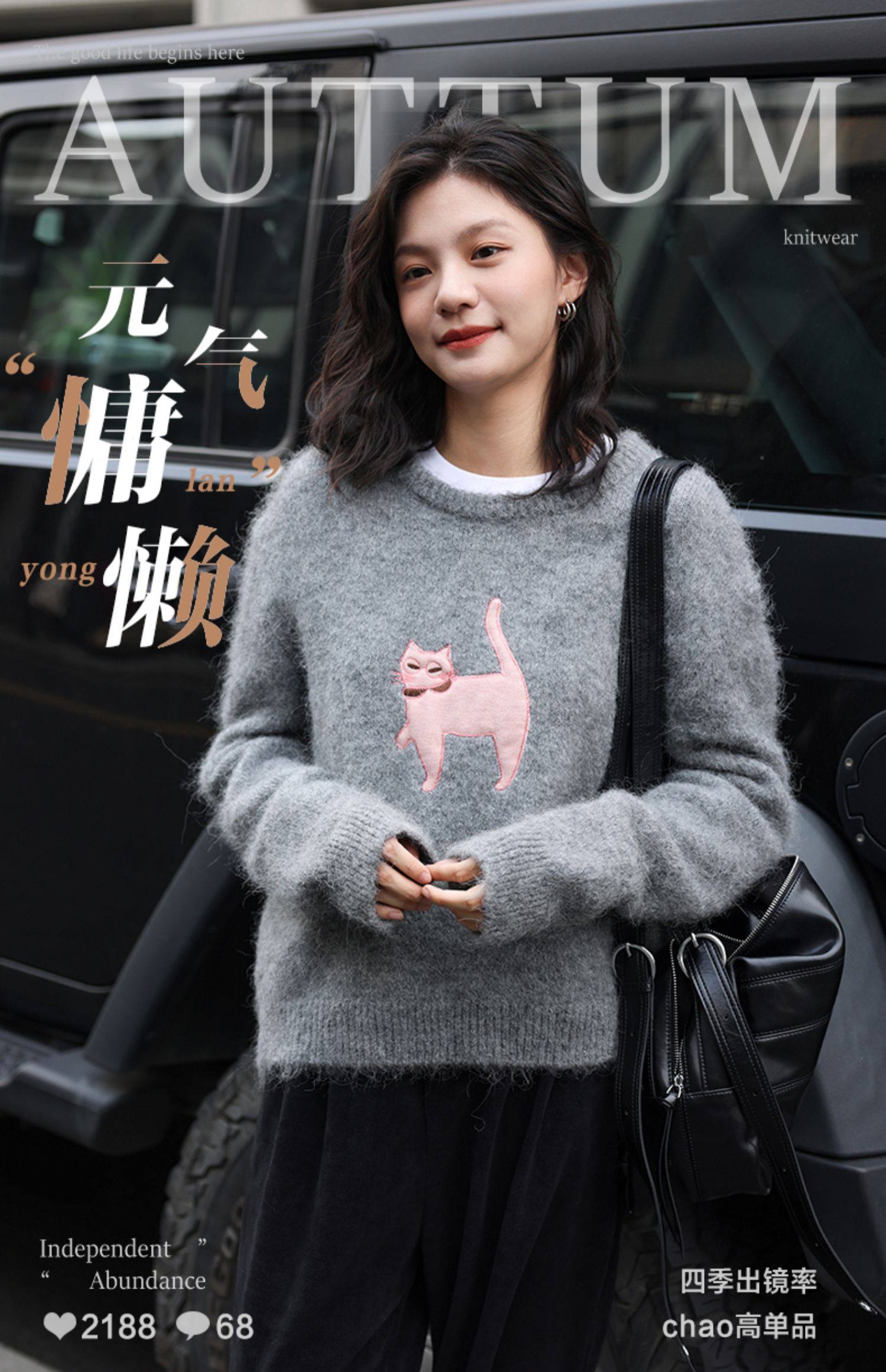德玛纳冬季套头休闲灰色毛衣女冬季新款宽松显瘦时尚风打底针织衫