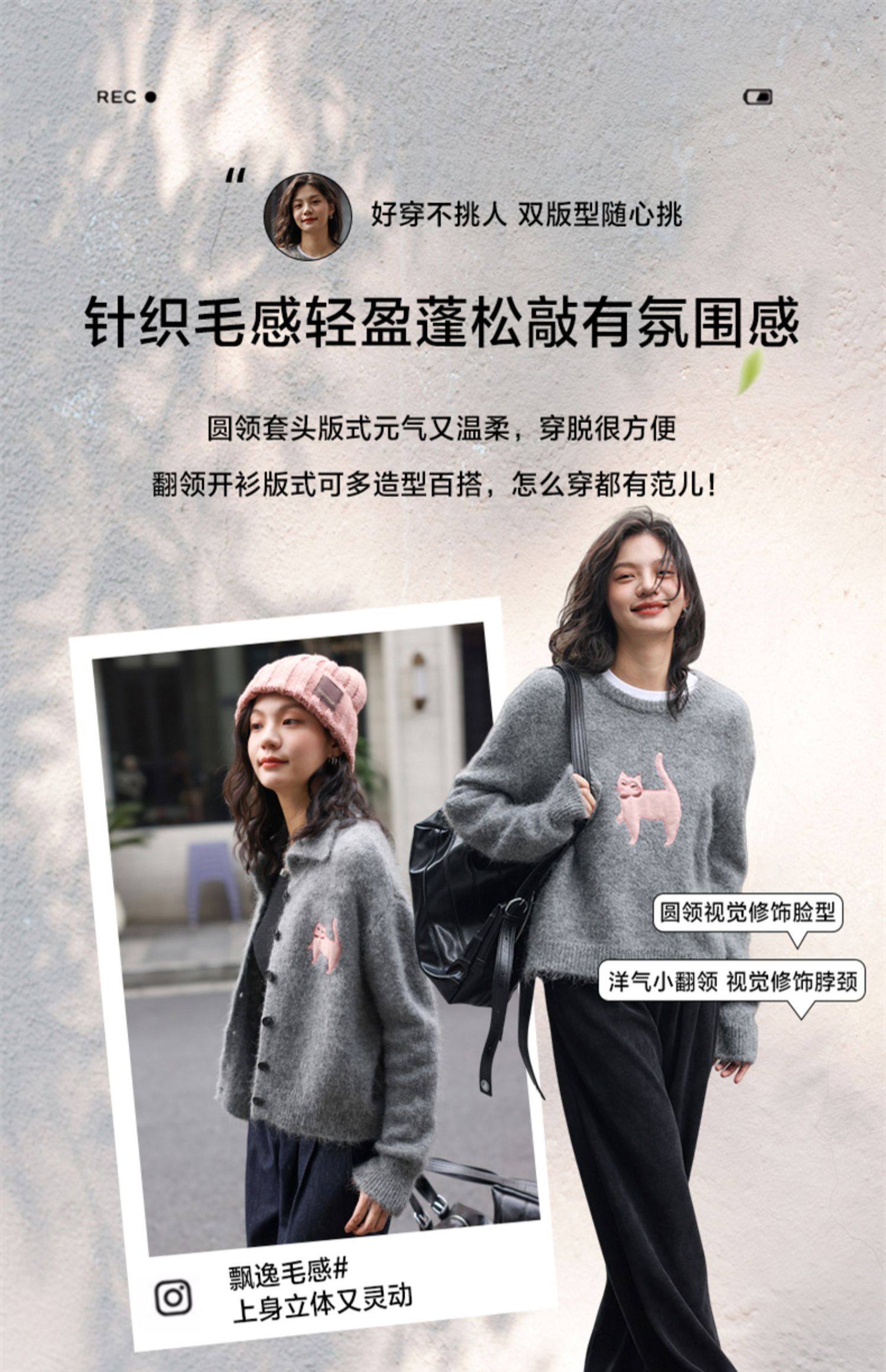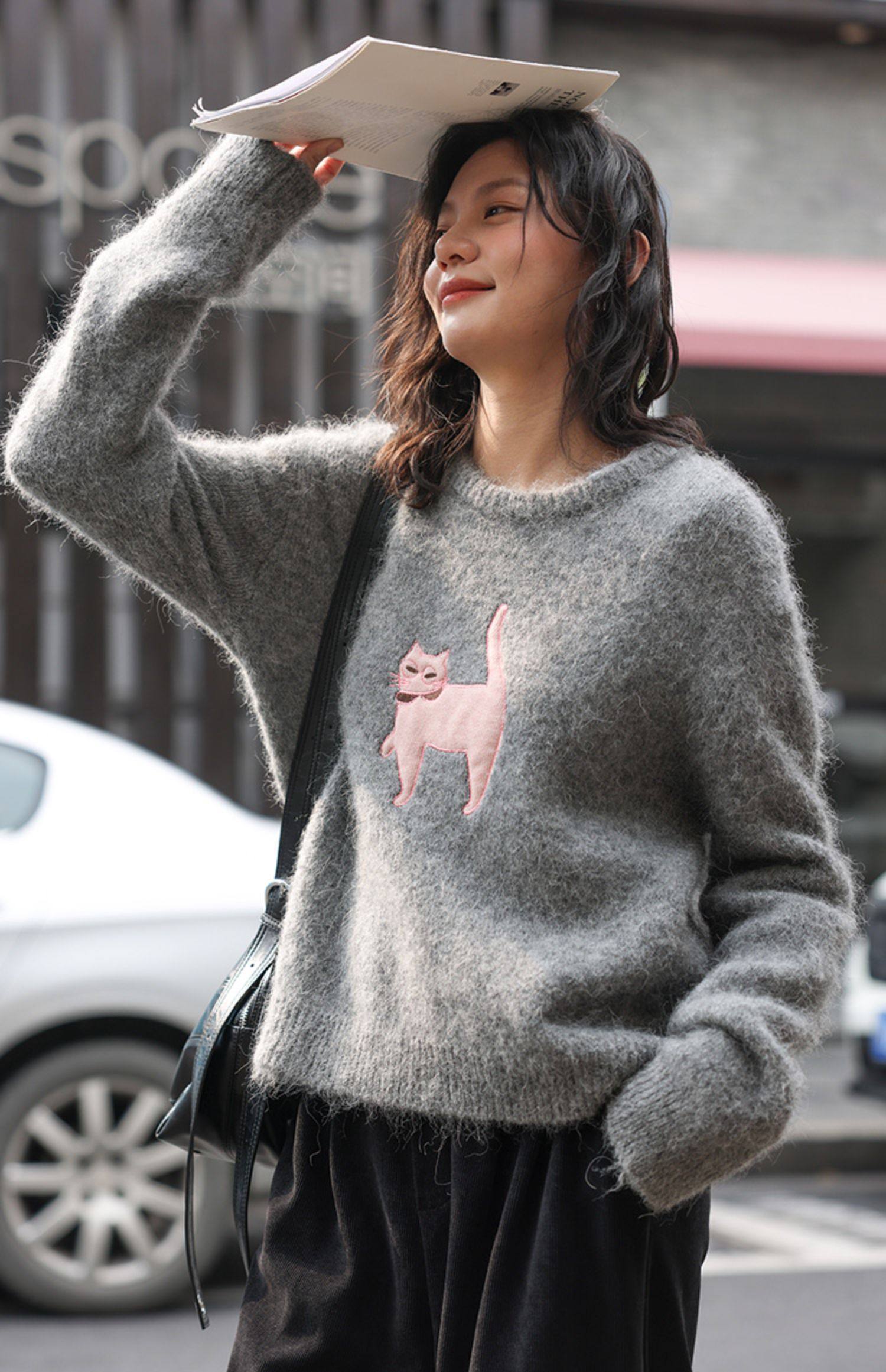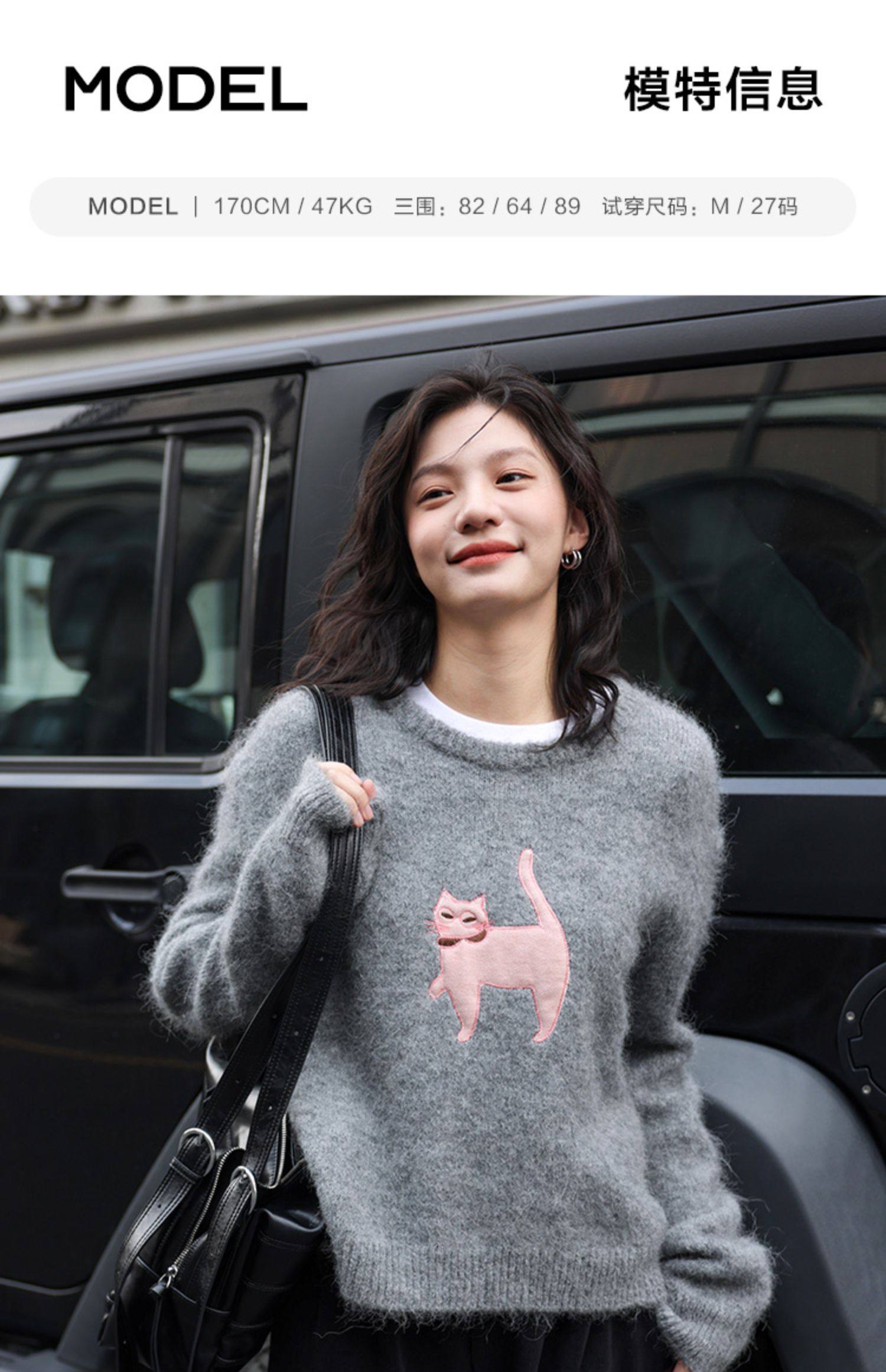 德玛纳冬季套头休闲灰色毛衣女冬季新款宽松显瘦时尚风打底针织衫