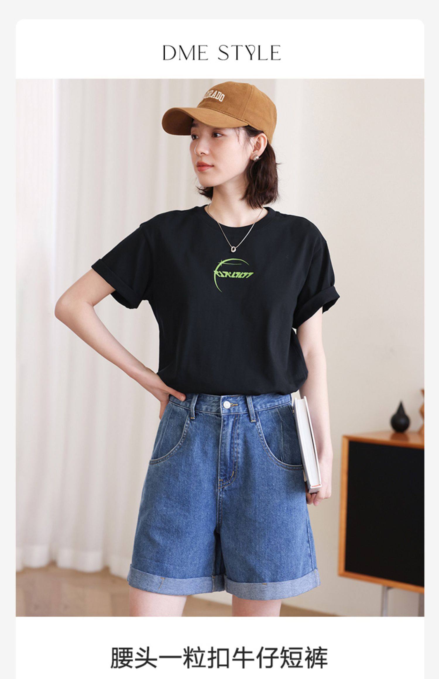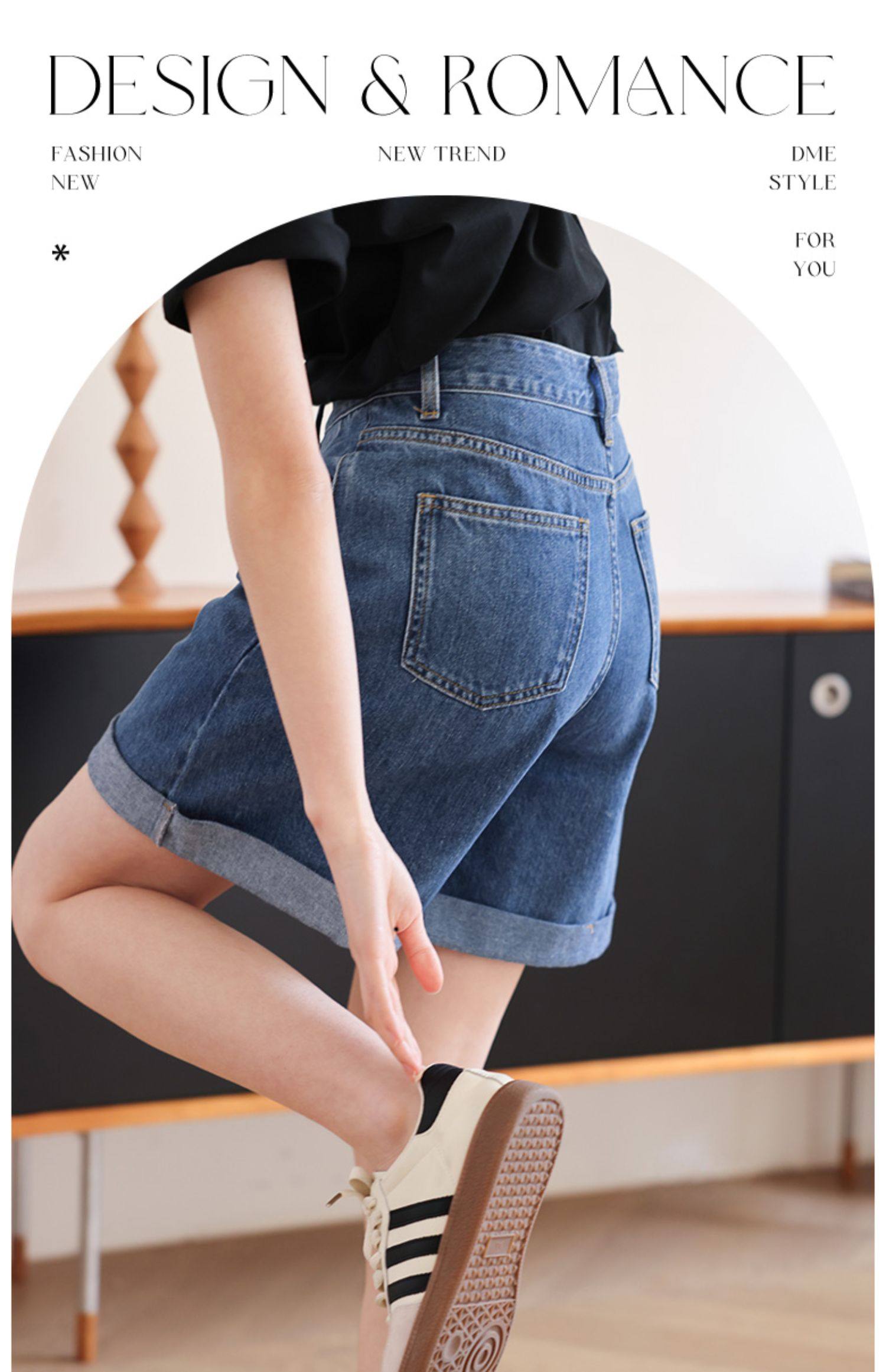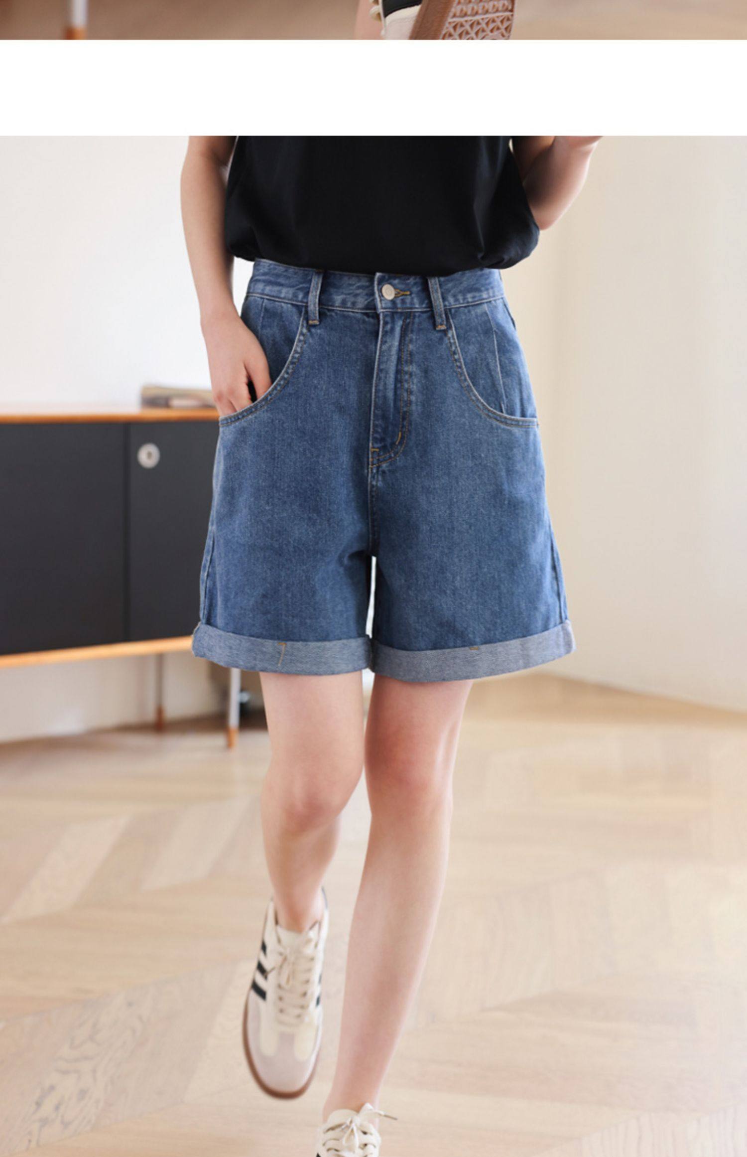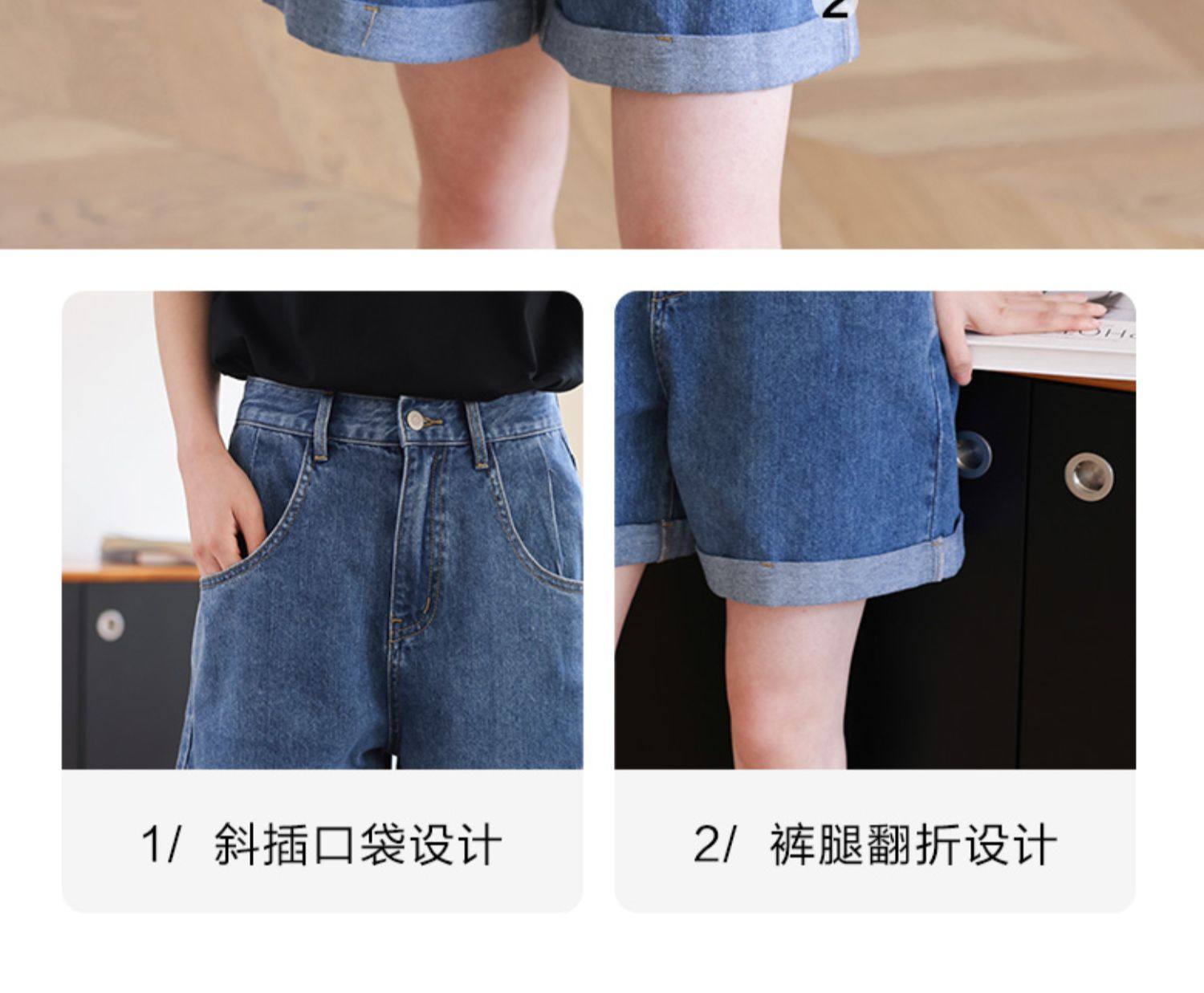 德玛纳夏季新款薄款牛仔短裤女士高腰显瘦小个子直筒阔腿裤子