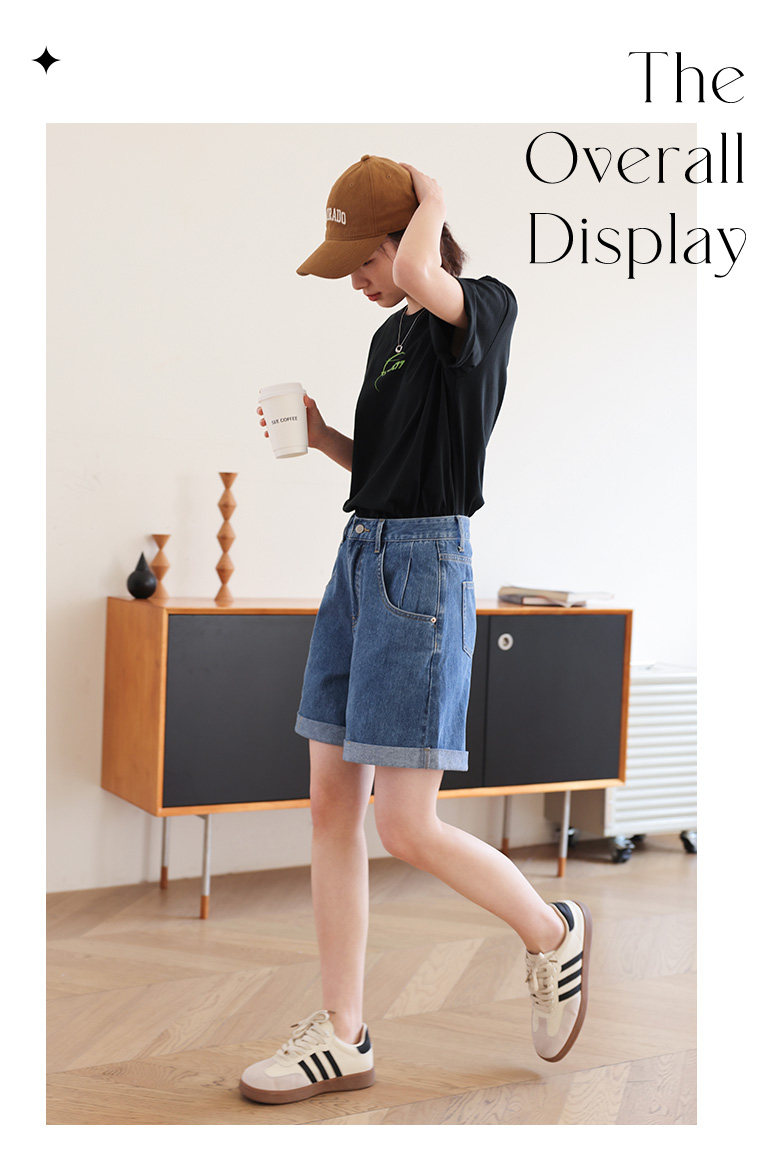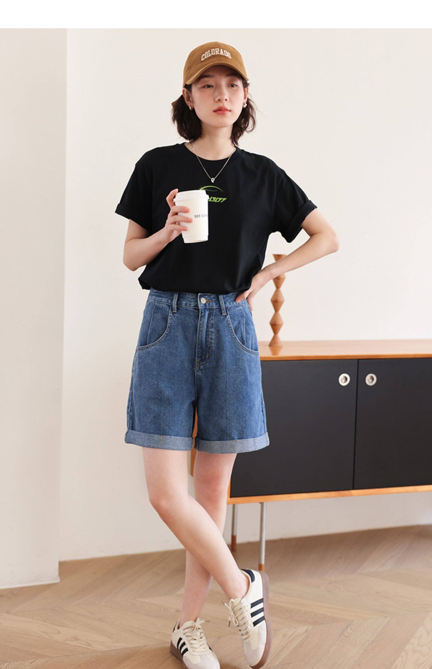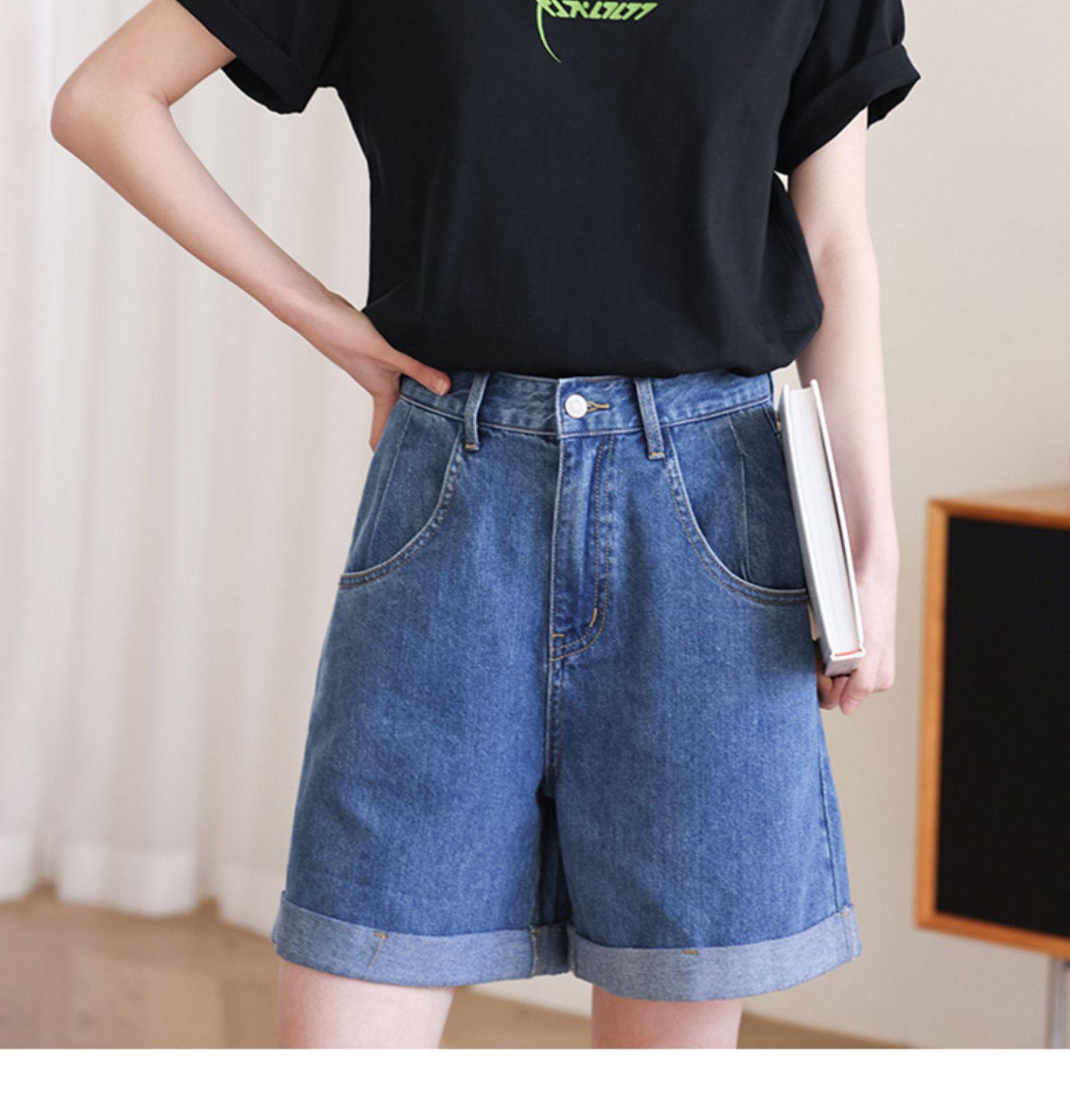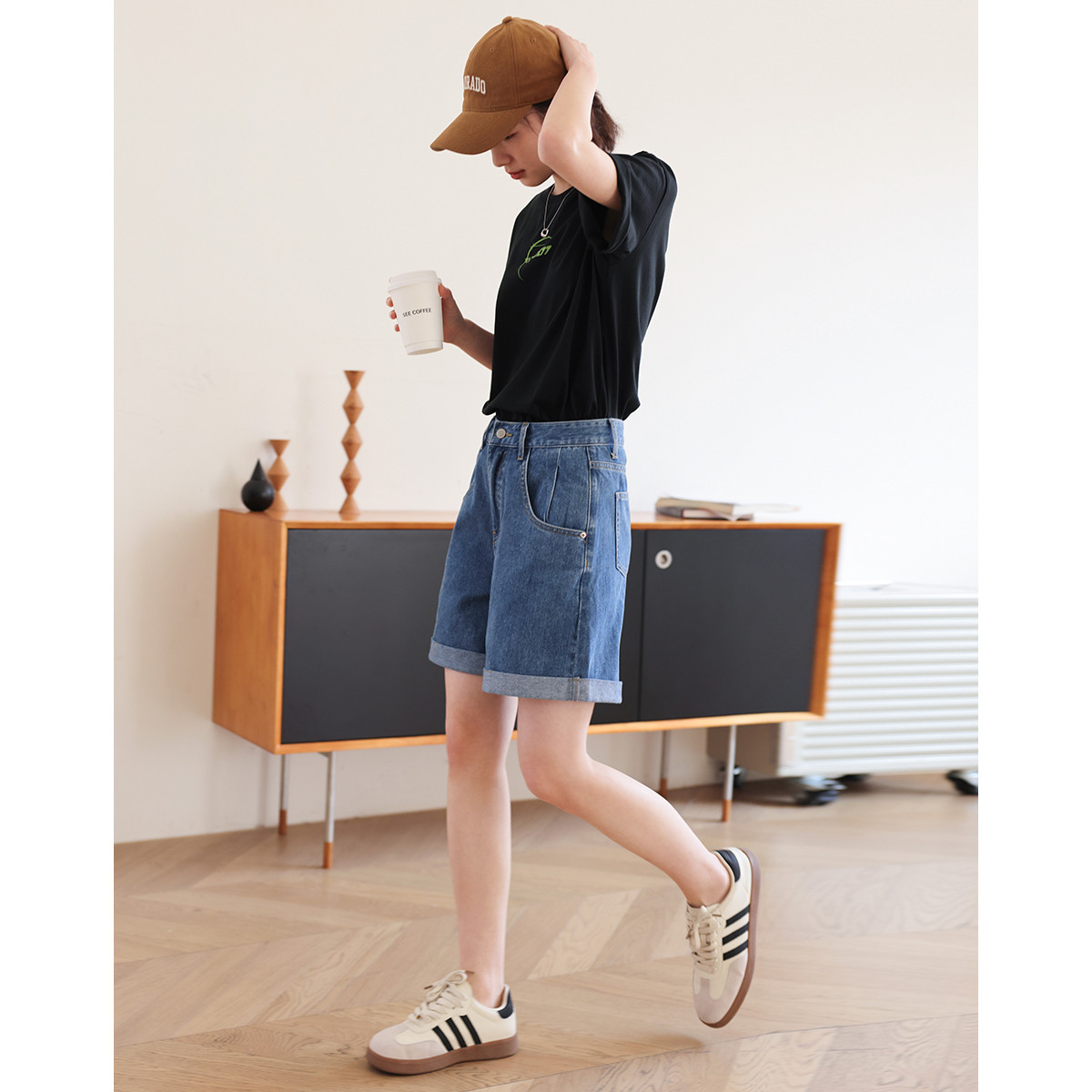 德玛纳夏季新款薄款牛仔短裤女士高腰显瘦小个子直筒阔腿裤子