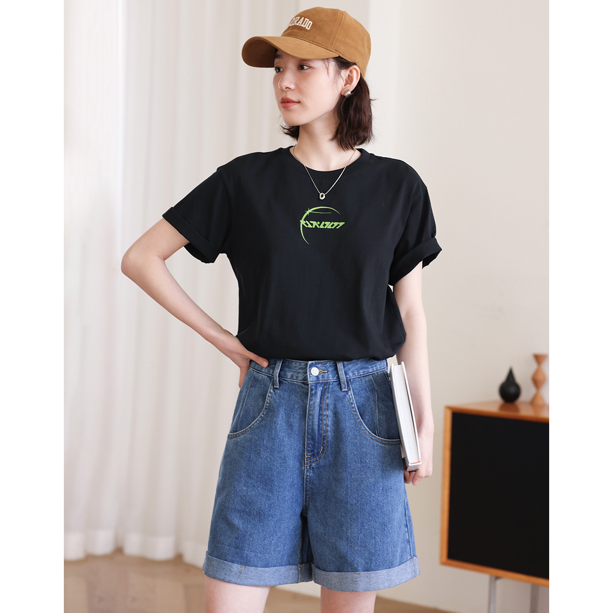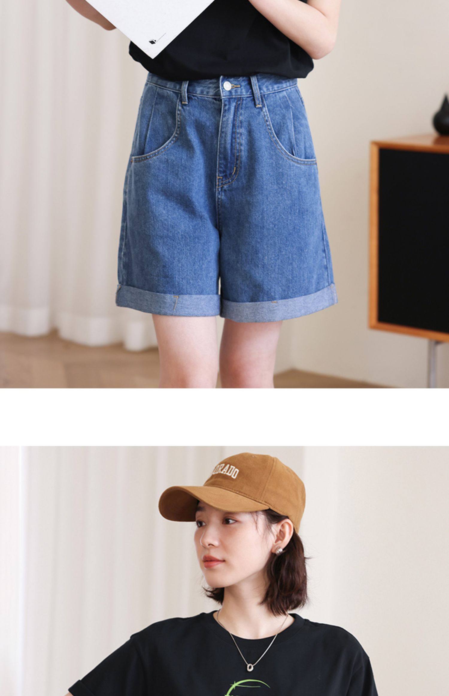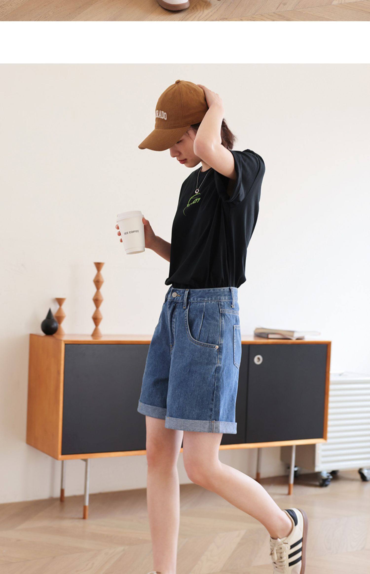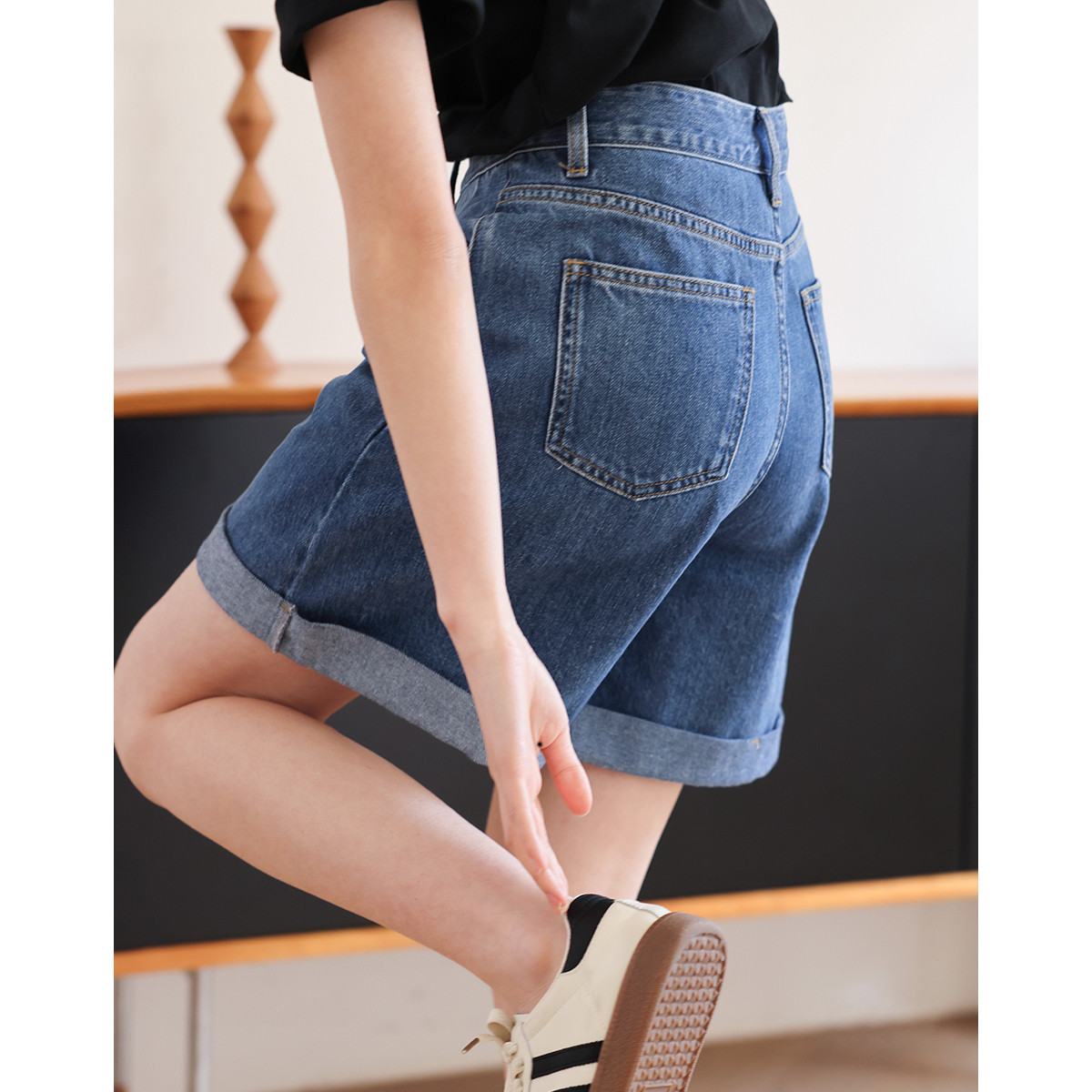 德玛纳夏季新款薄款牛仔短裤女士高腰显瘦小个子直筒阔腿裤子