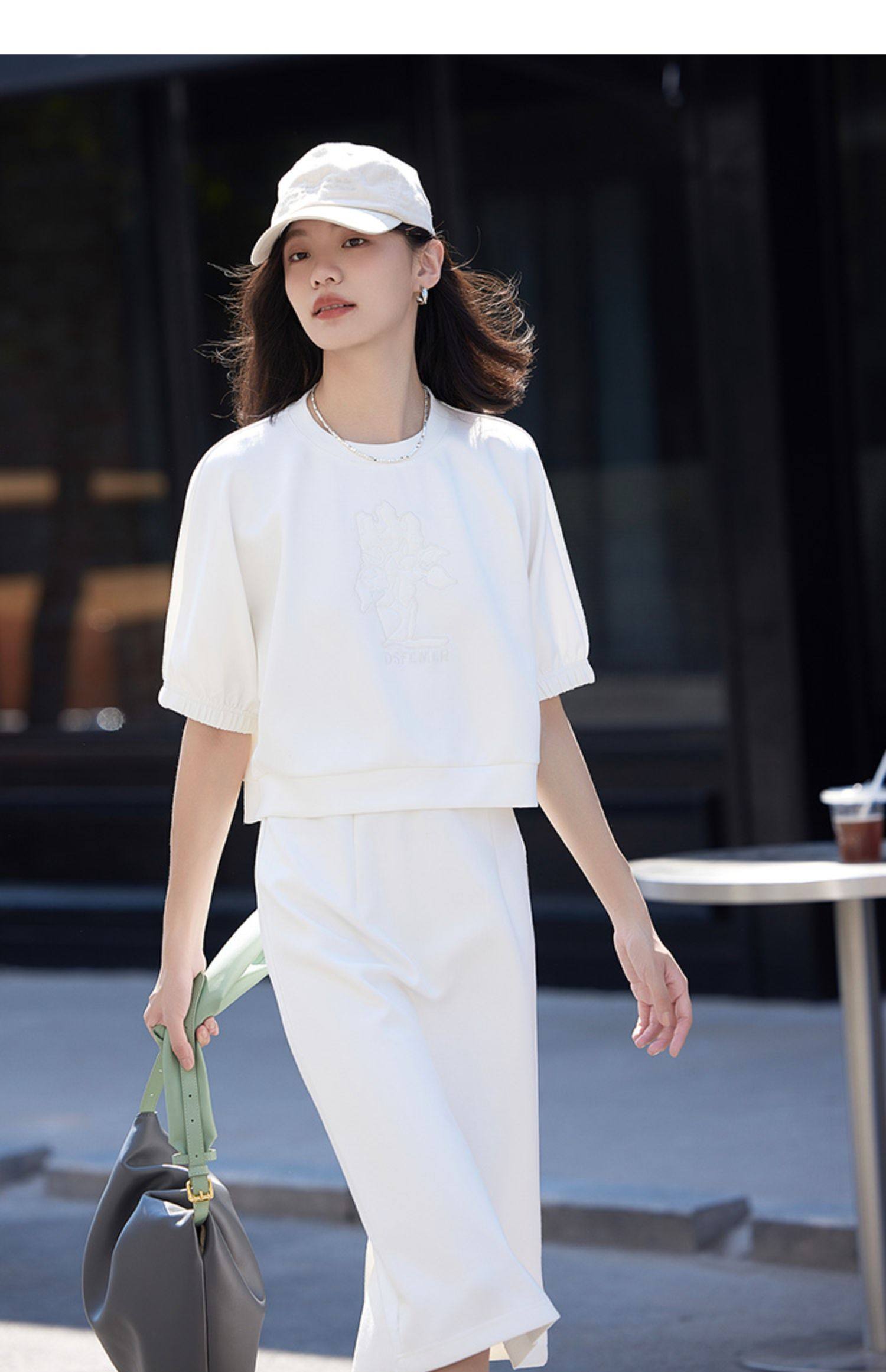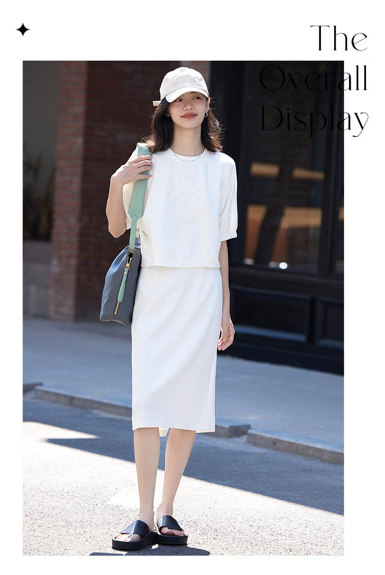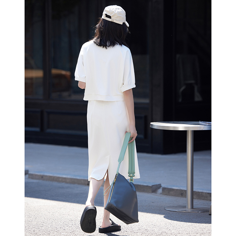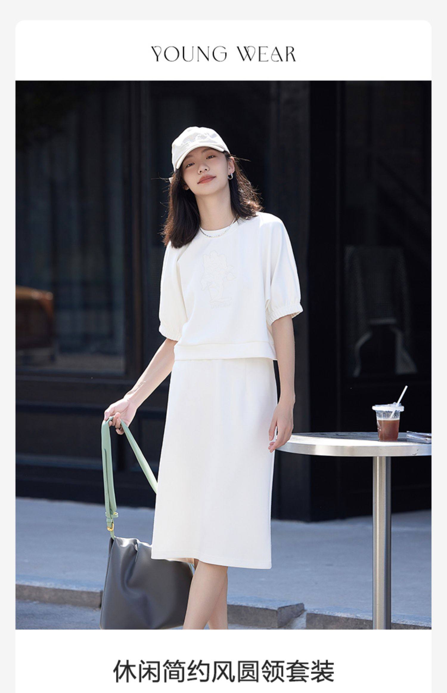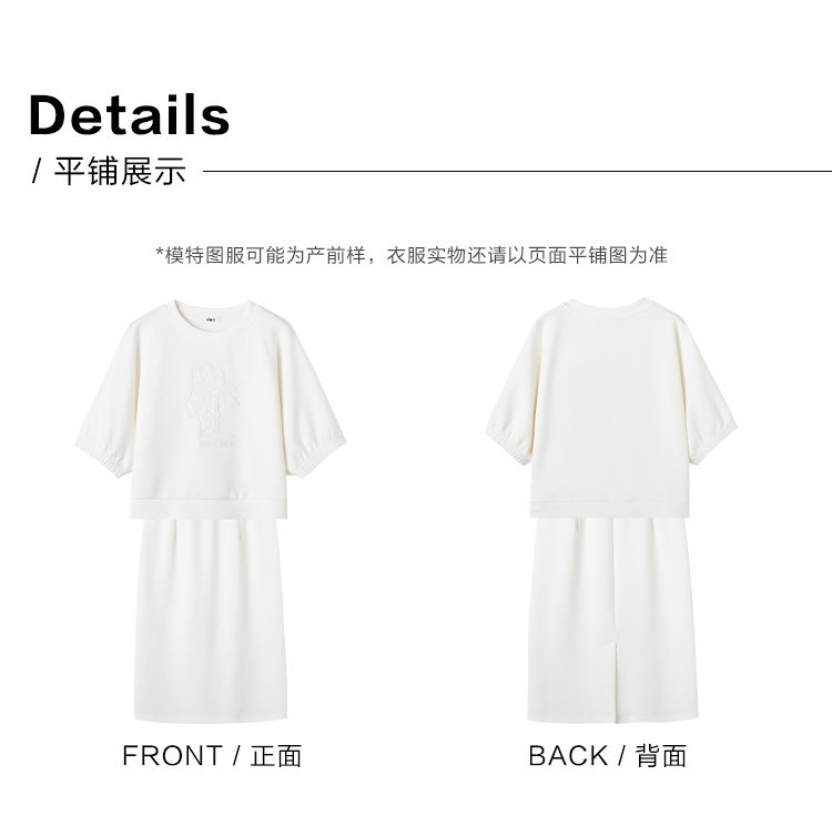 德玛纳白色休闲风圆领套装女春季新款潮流卫衣卫裙宽松两件套