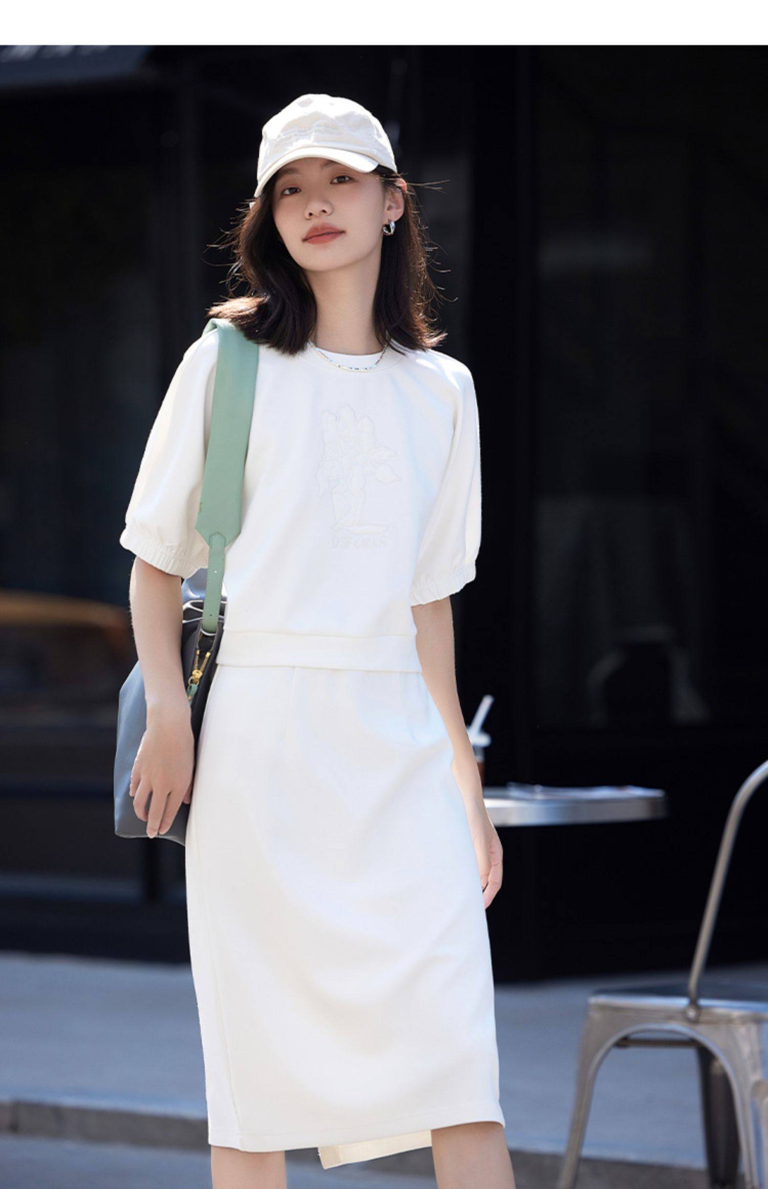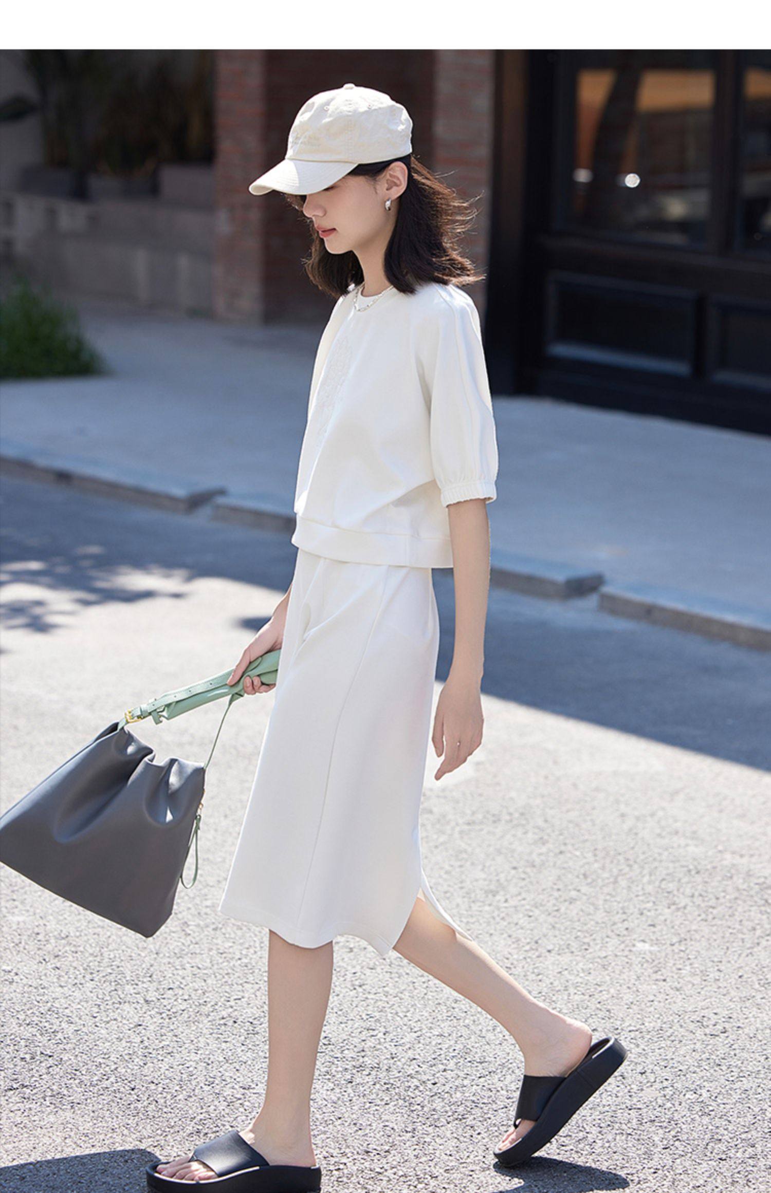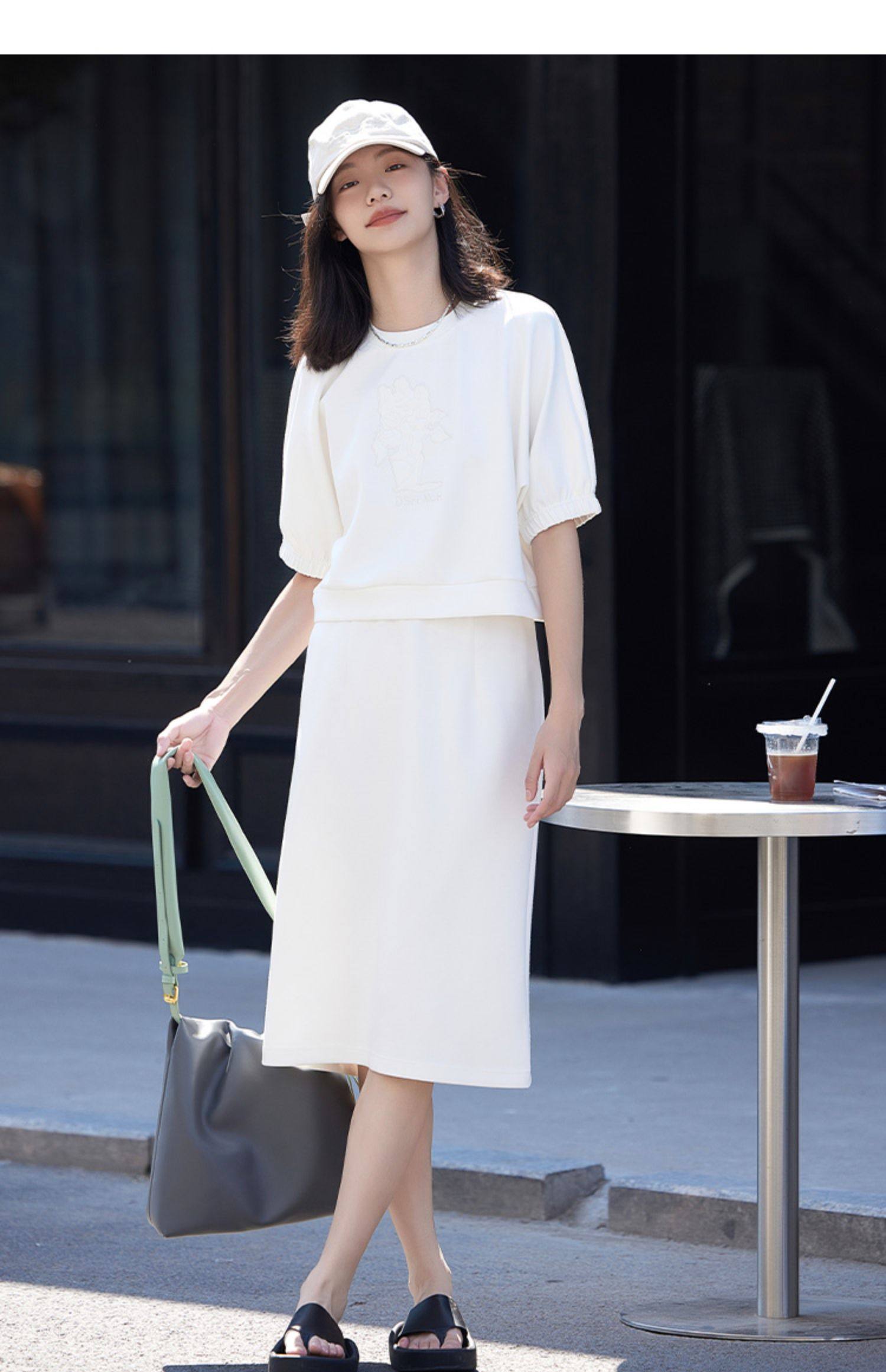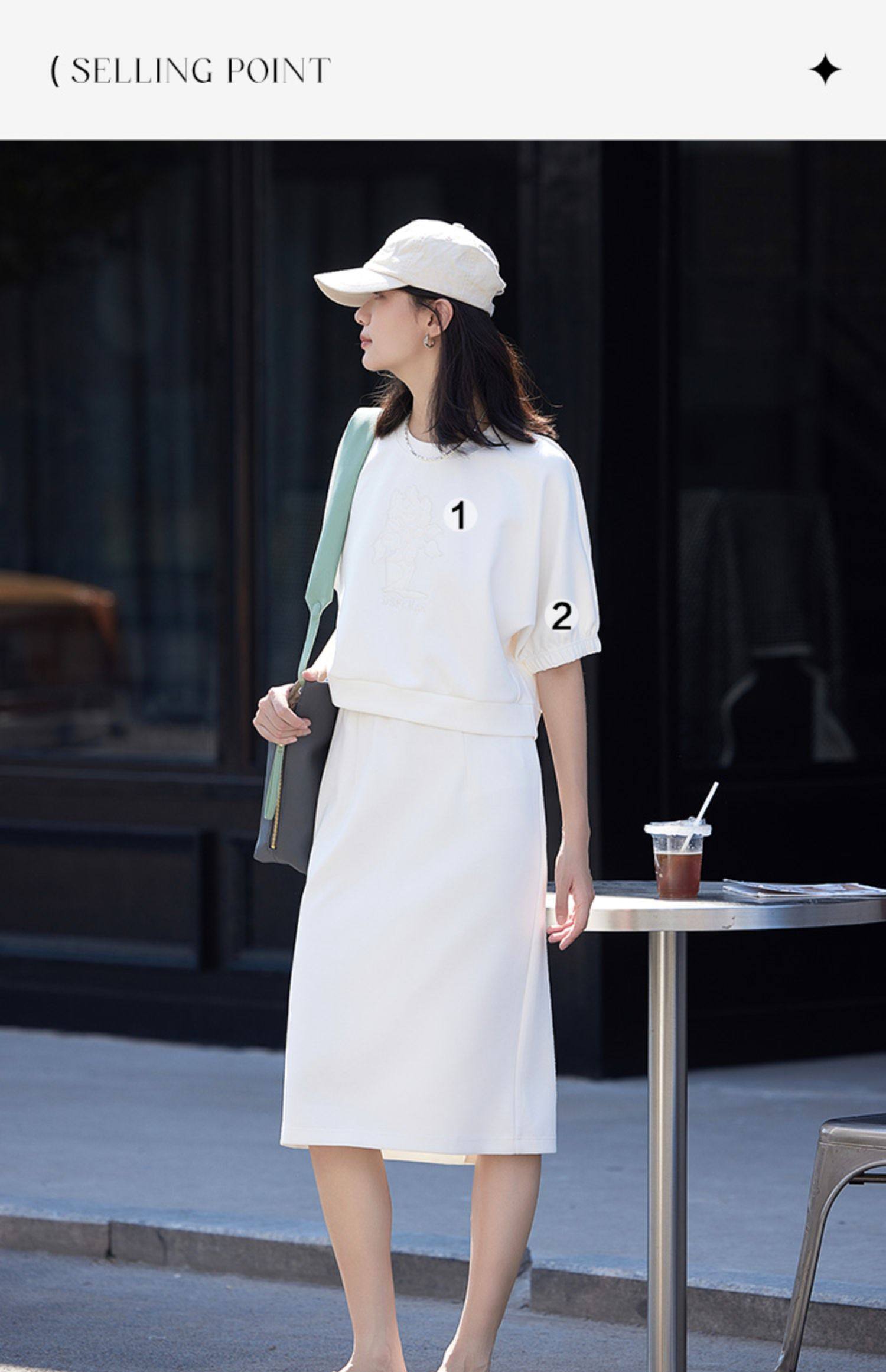 德玛纳白色休闲风圆领套装女春季新款潮流卫衣卫裙宽松两件套