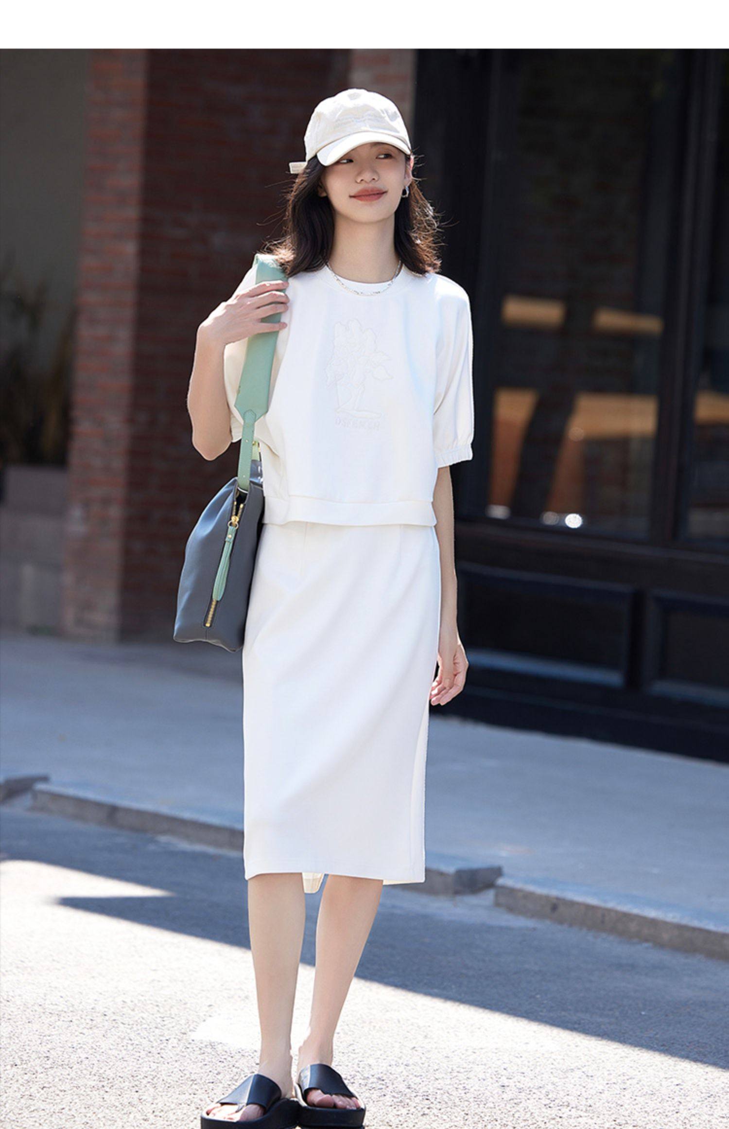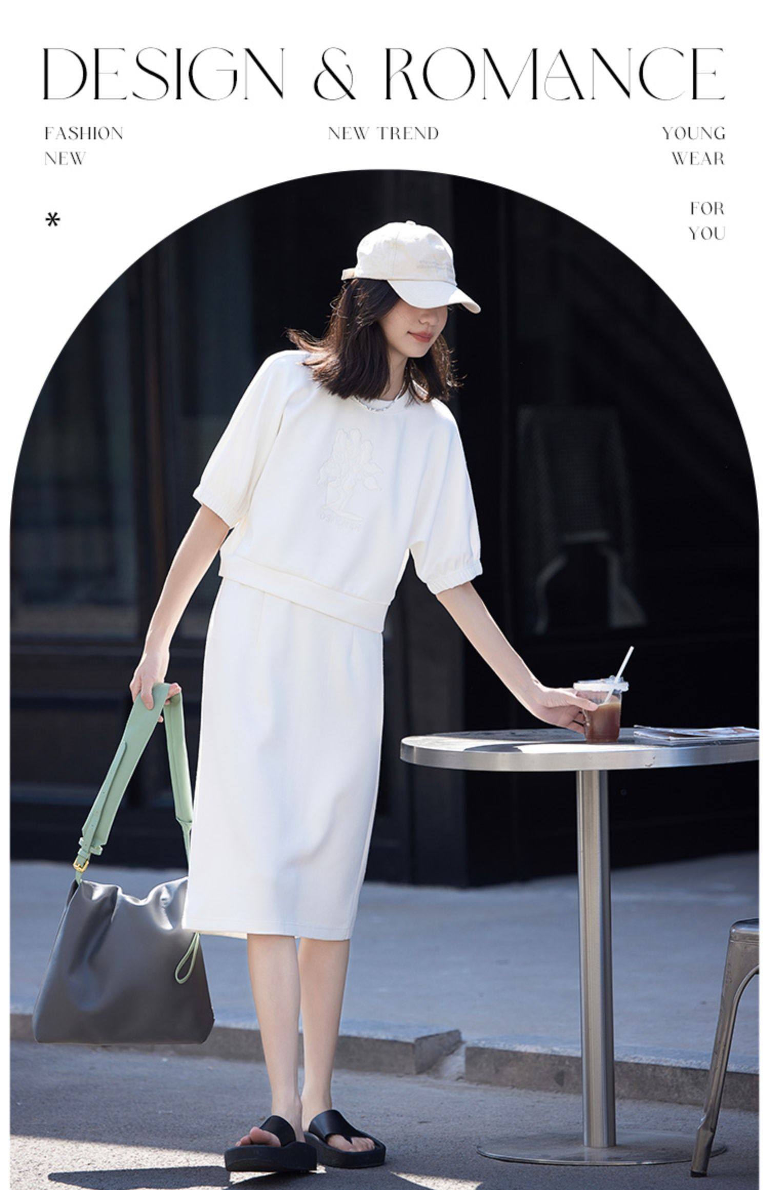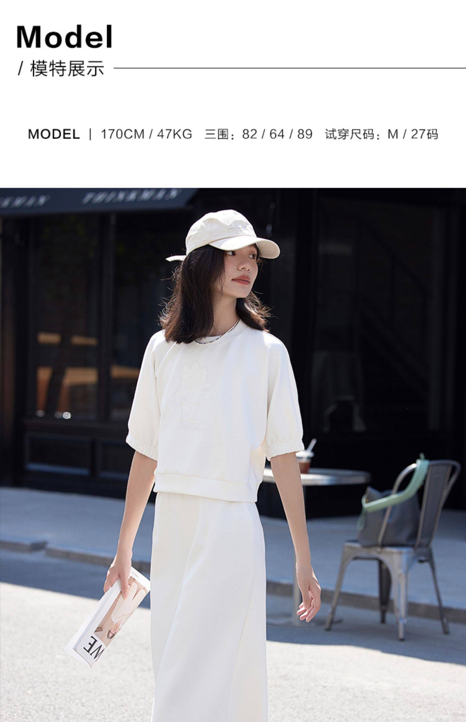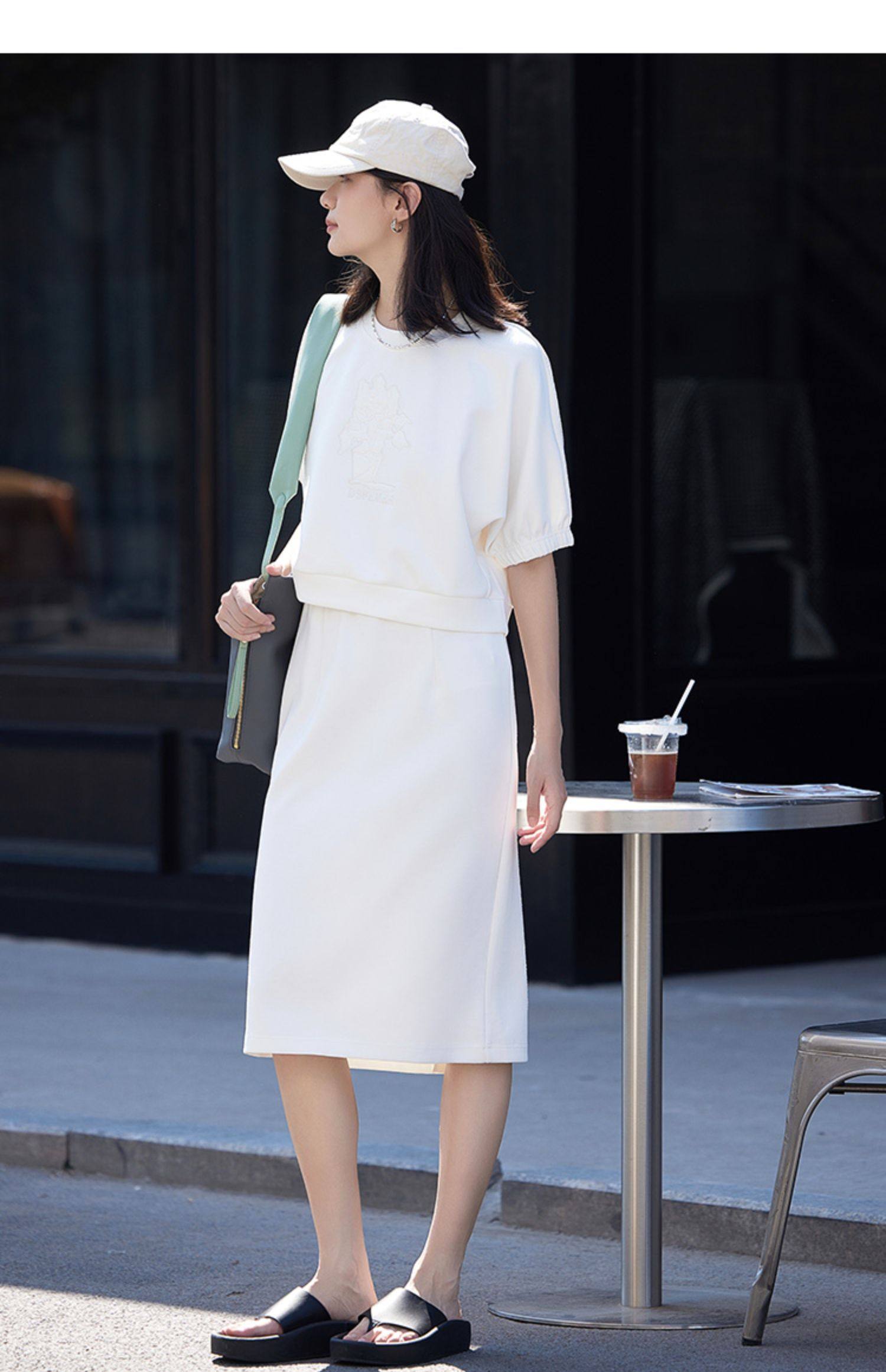 德玛纳白色休闲风圆领套装女春季新款潮流卫衣卫裙宽松两件套