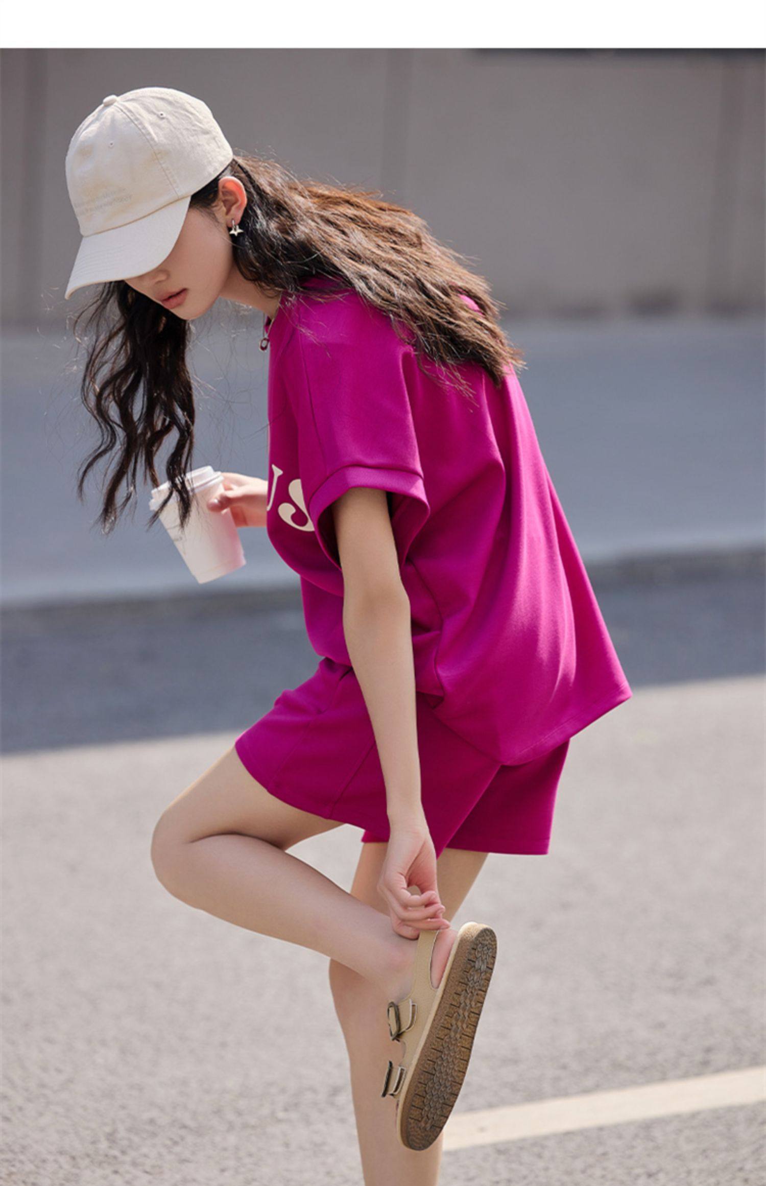 德玛纳短袖T恤女套装夏季新款休闲风透气短裤宽松潮流两件套