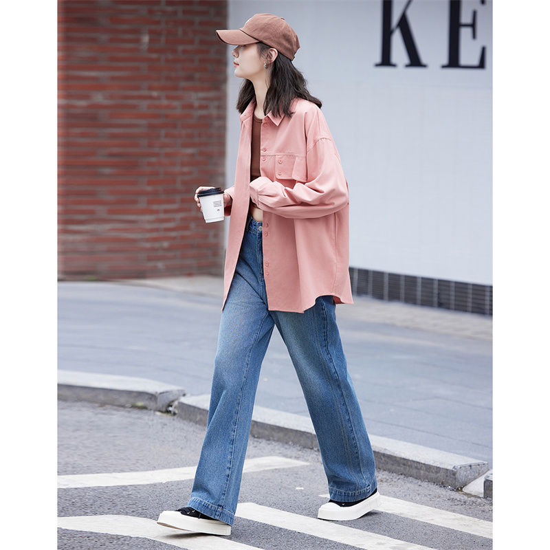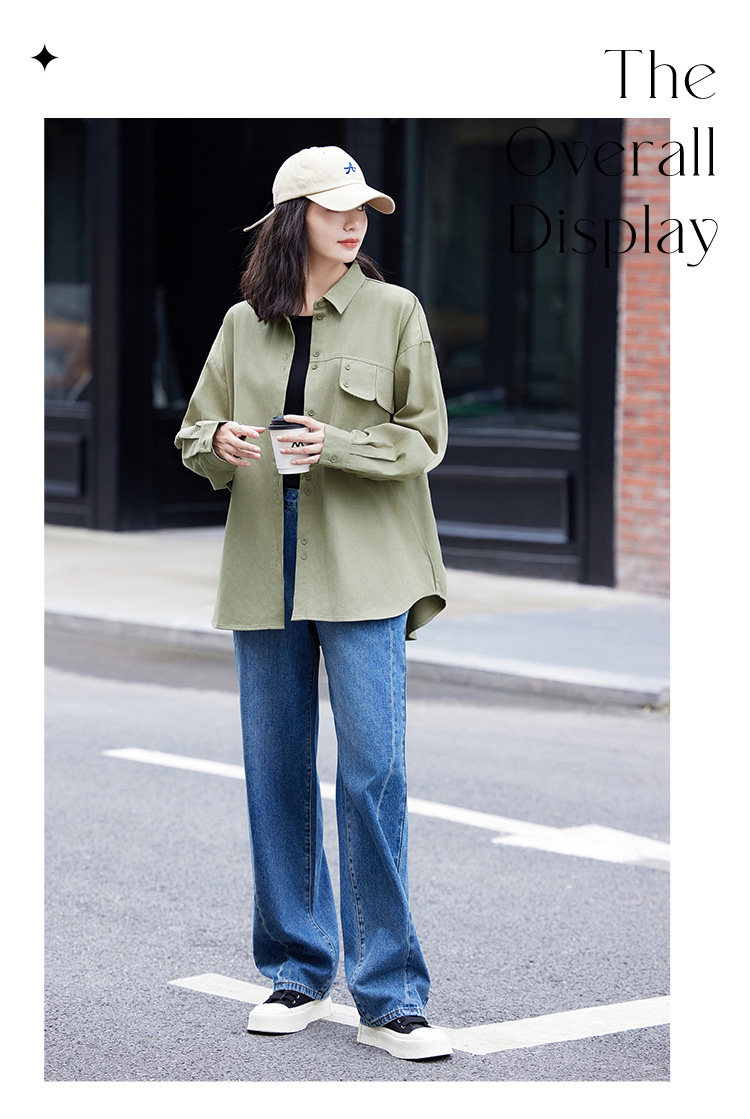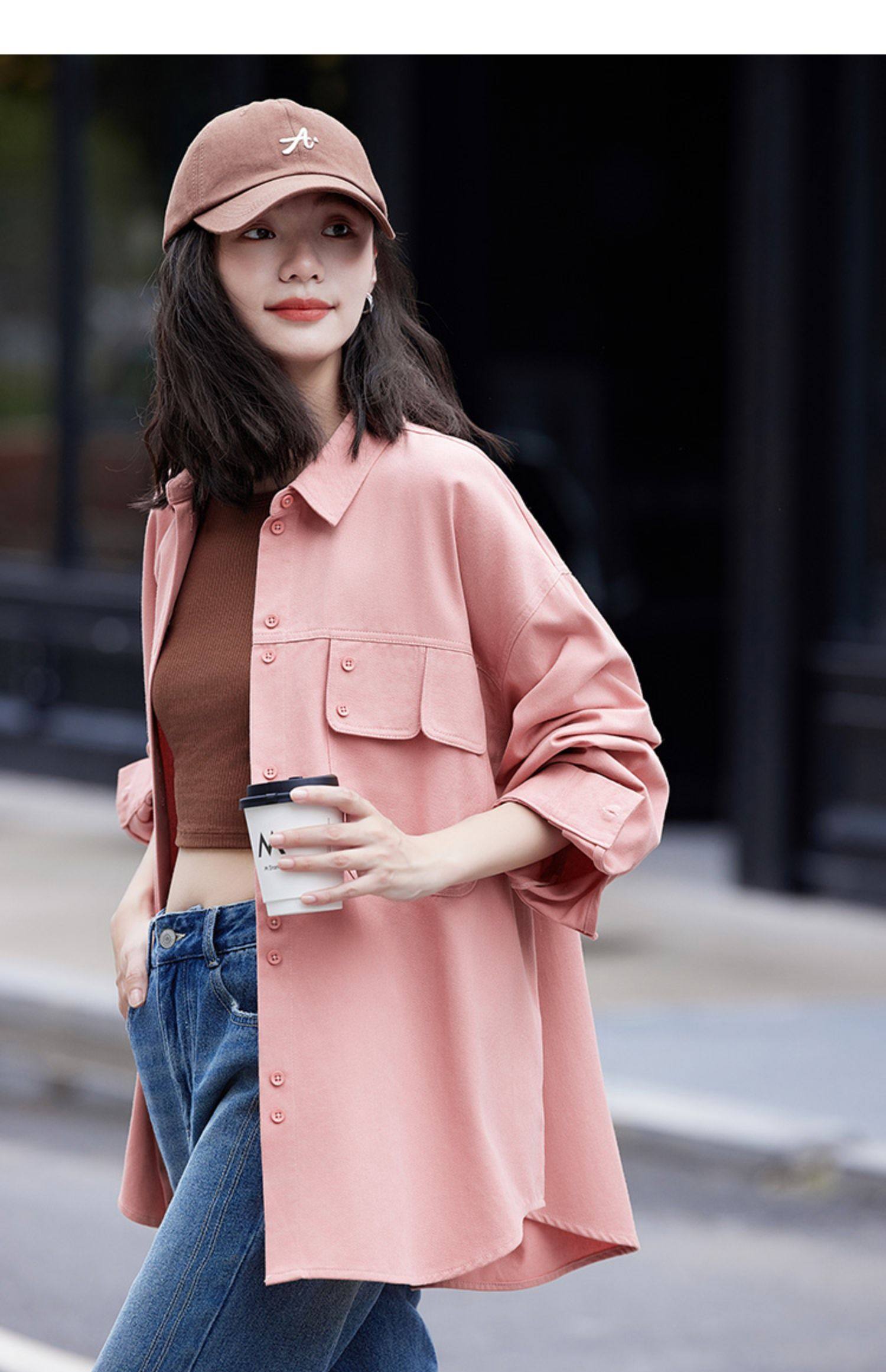 德玛纳polo领外套女长袖气质秋季新款洋气小个子衬衫百搭上衣
