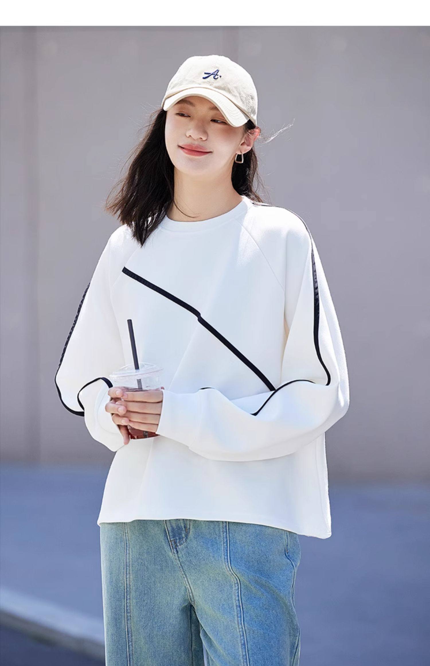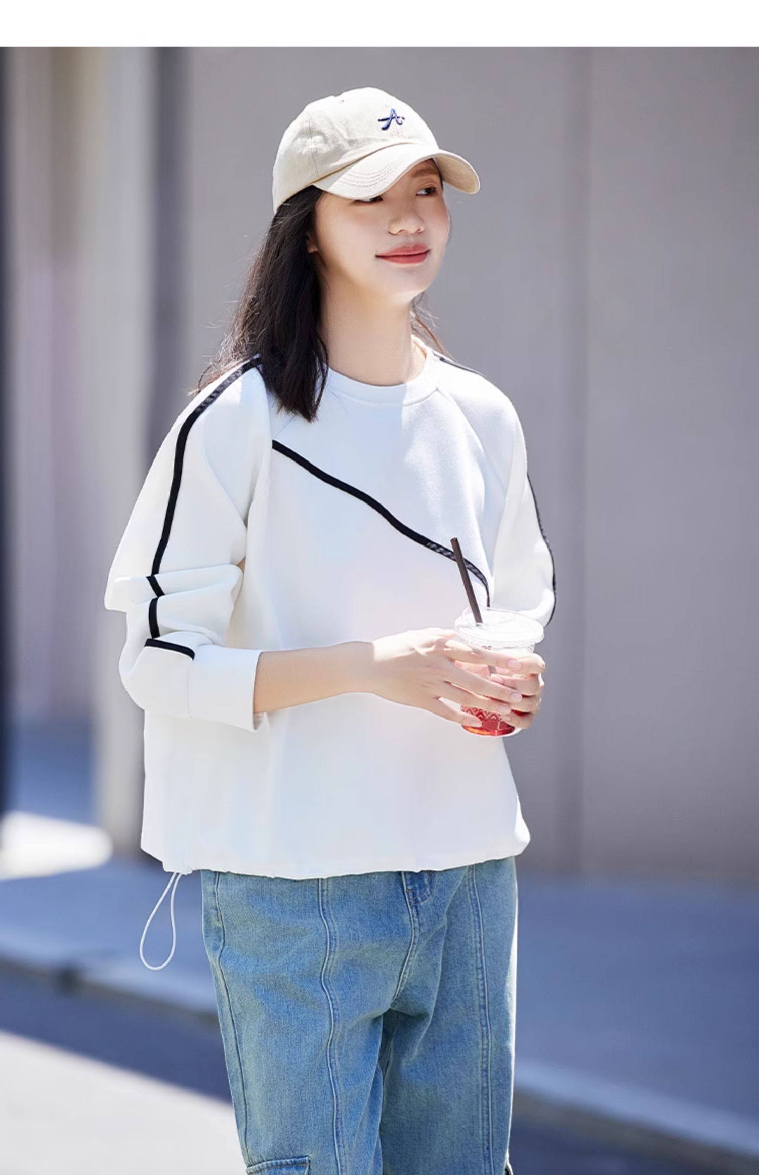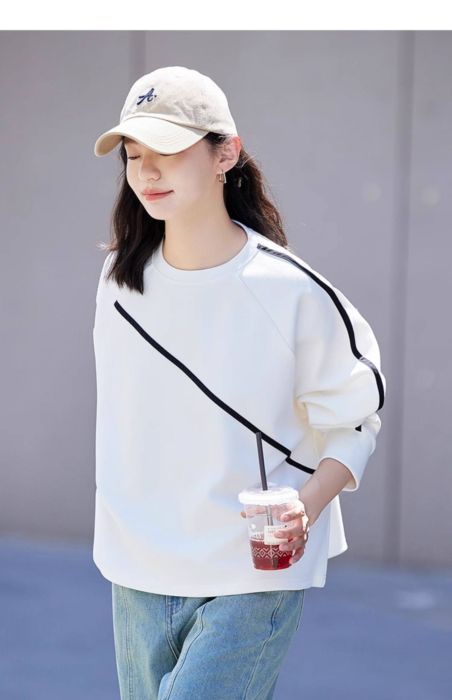 德玛纳圆领白色卫衣女士新款爆款春秋季高级感小个子宽松外套