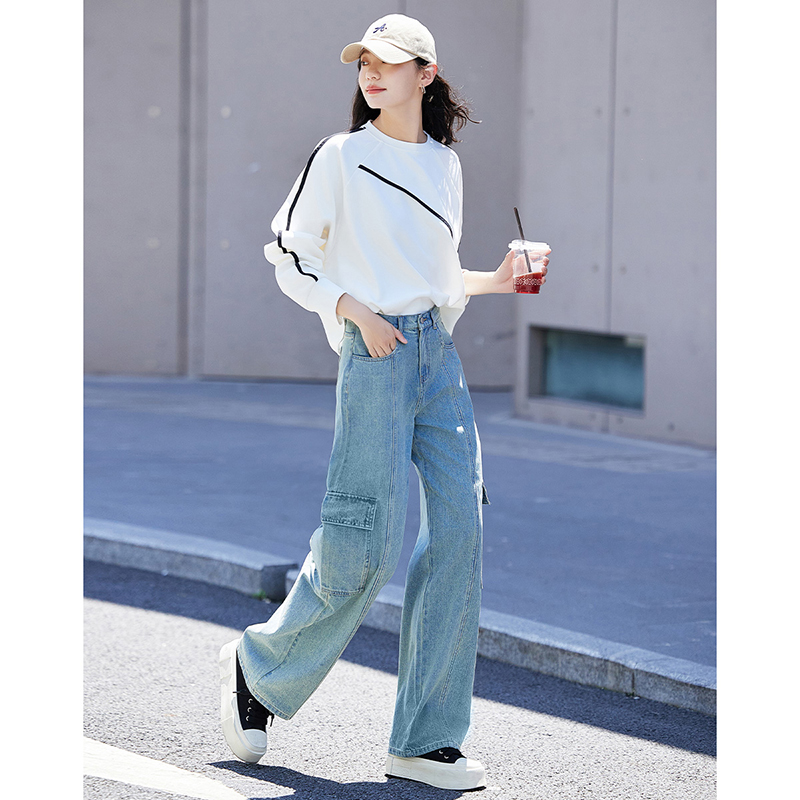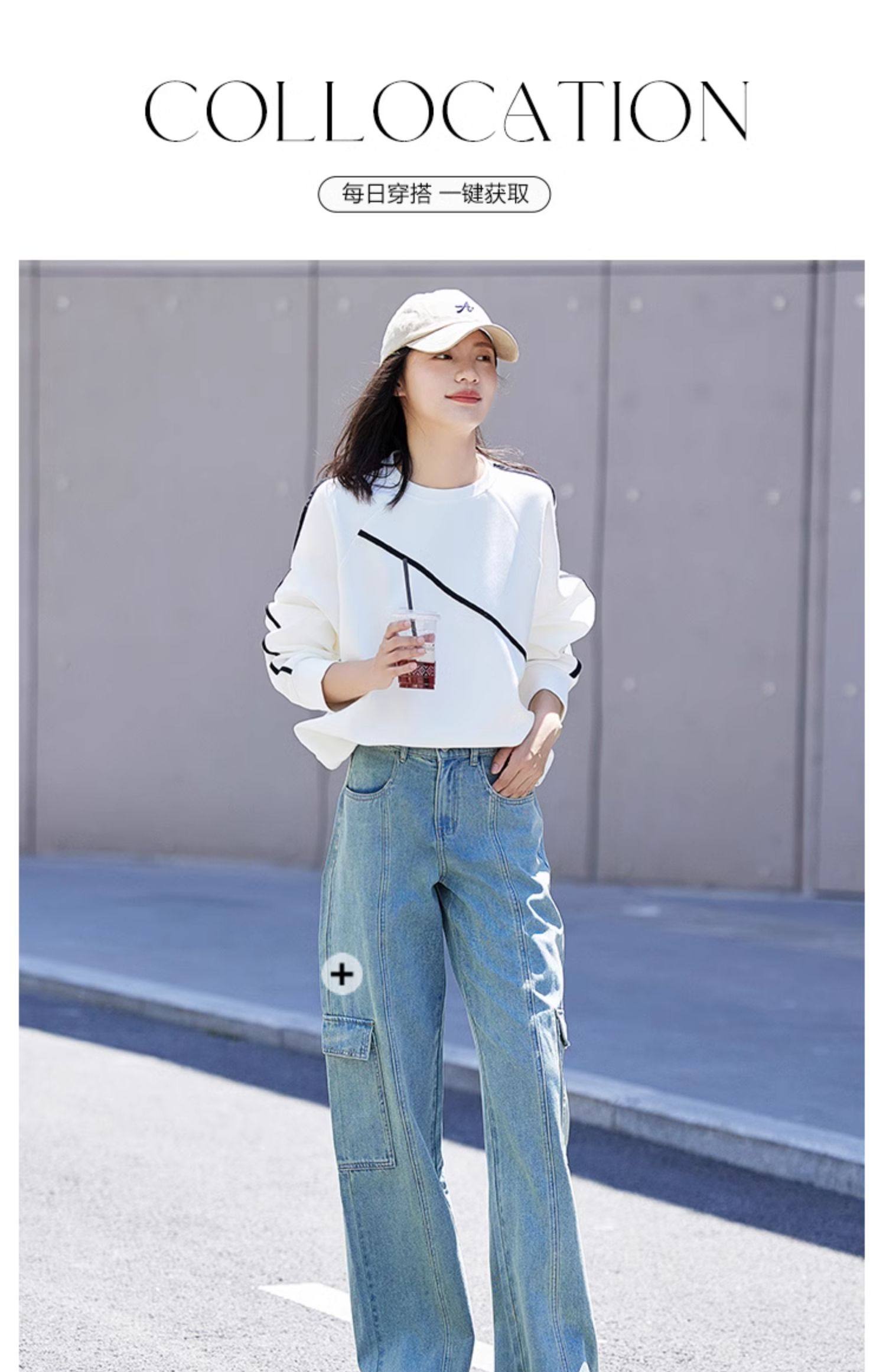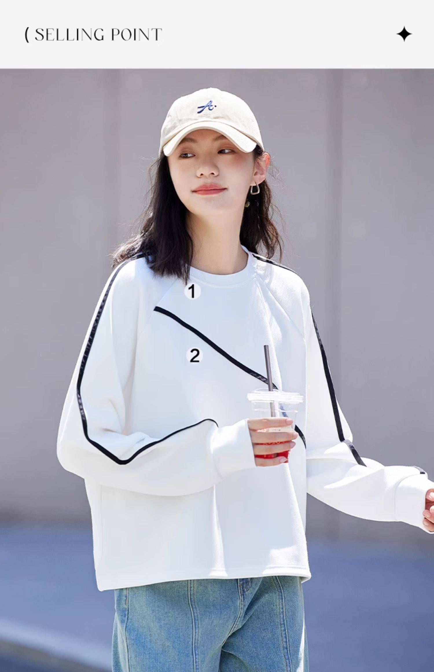 德玛纳圆领白色卫衣女士新款爆款春秋季高级感小个子宽松外套