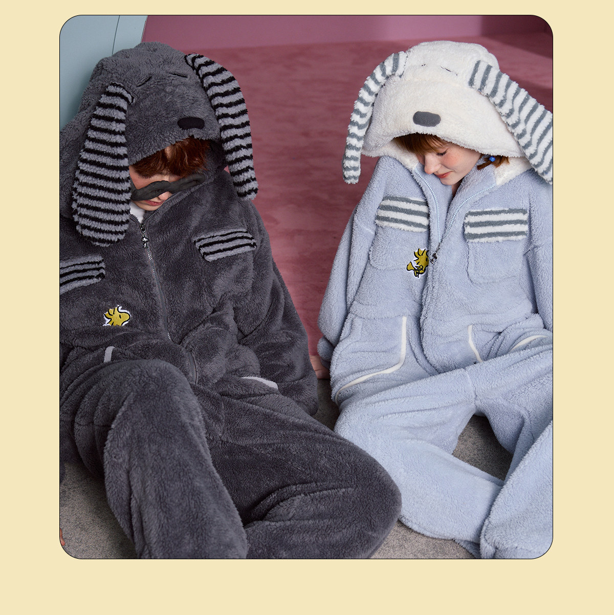 yso【礼物系列】睡衣女冬季高级感珊瑚绒连帽兔子套装加厚家居服D