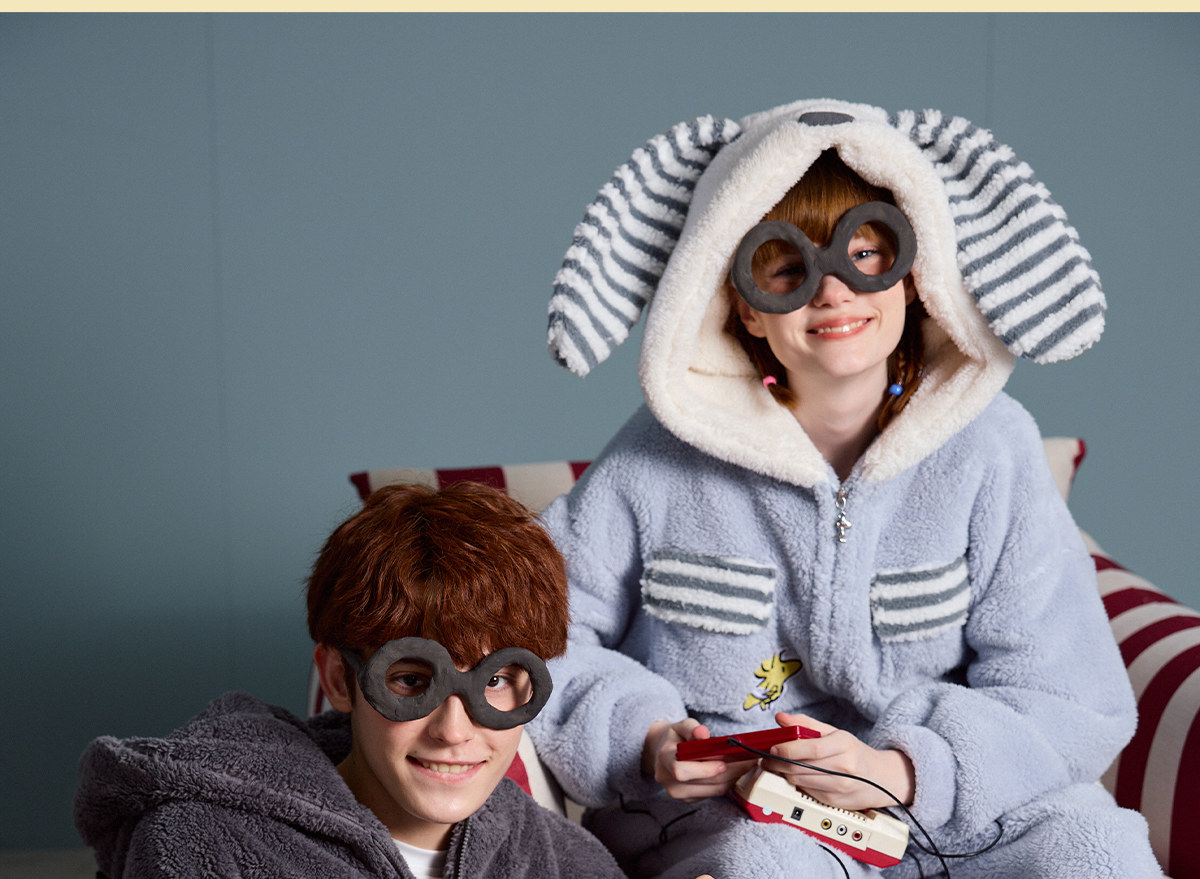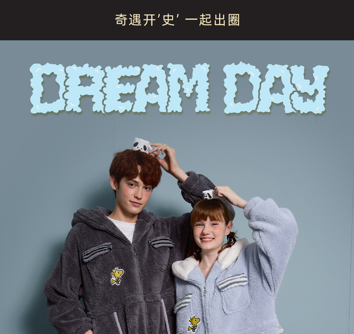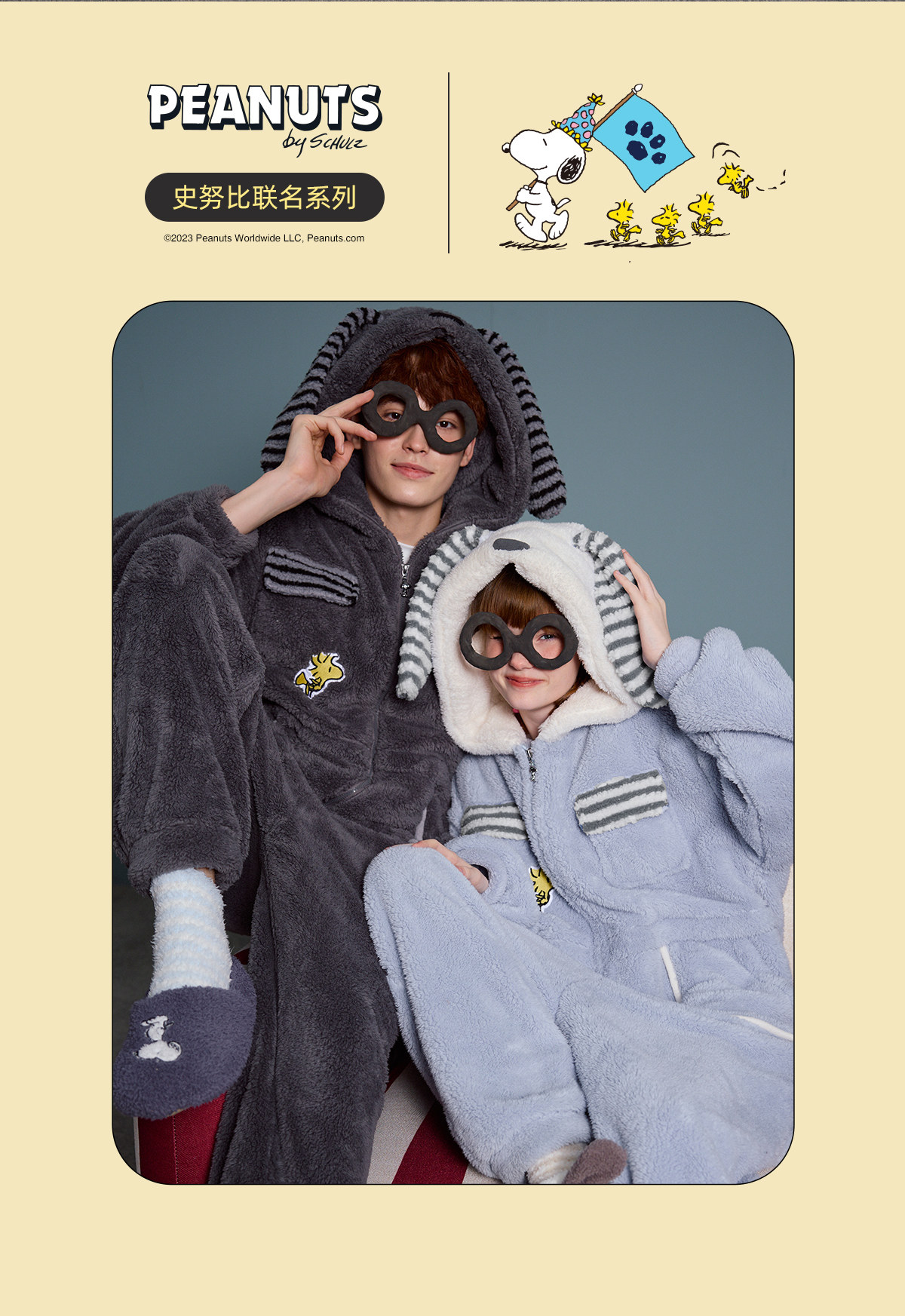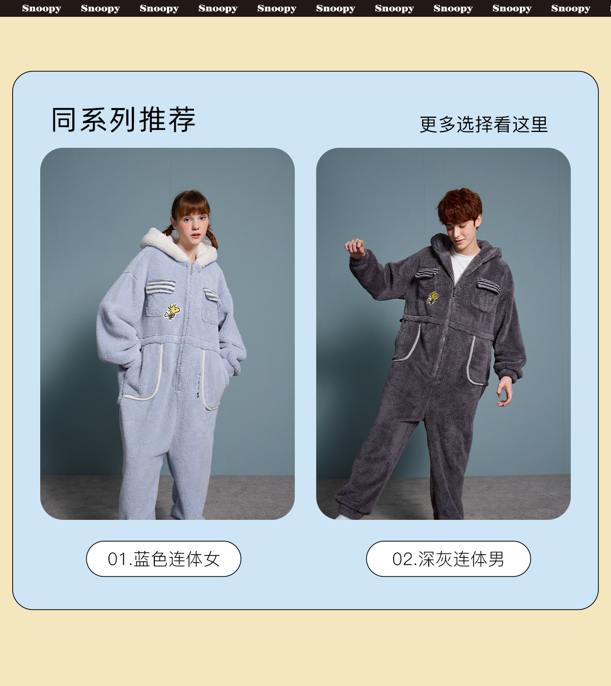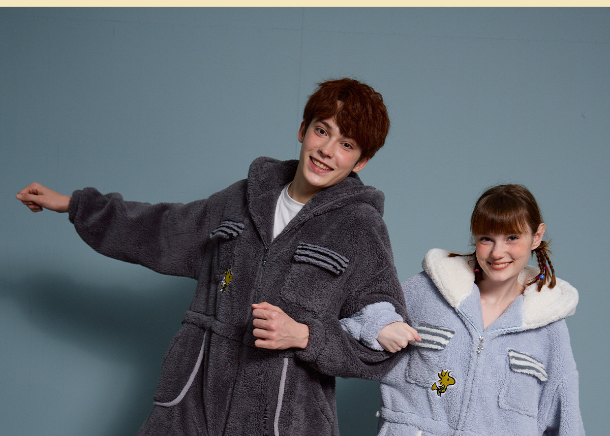 yso史努比冬季情侣睡衣女珊瑚绒卡通连体睡衣男可外穿家居服D