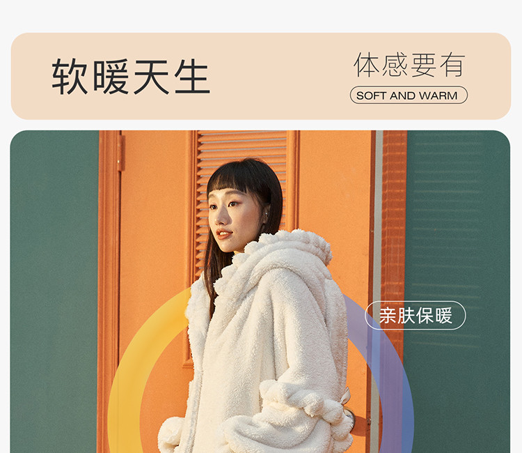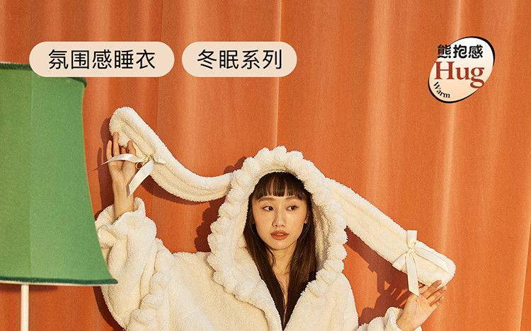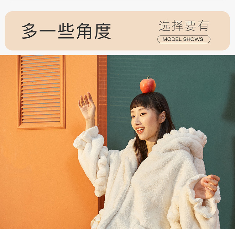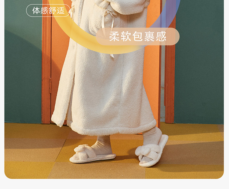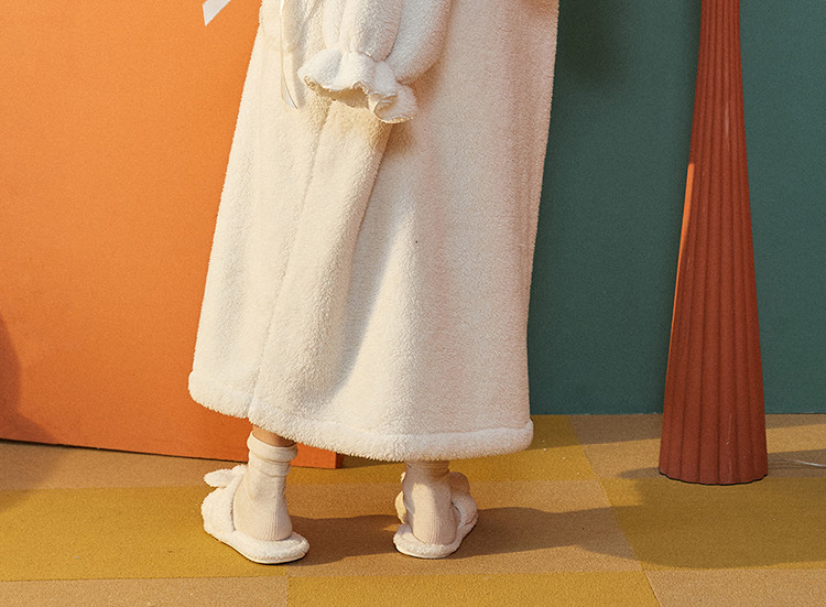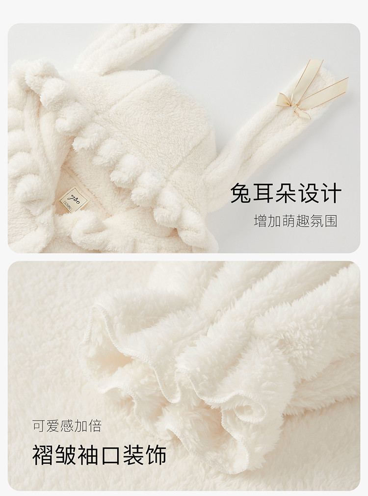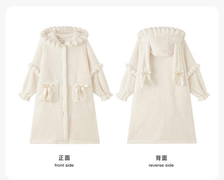 yso冬季睡袍女轻软款珊瑚绒睡衣可爱蝴蝶结耳朵睡袍家居服D