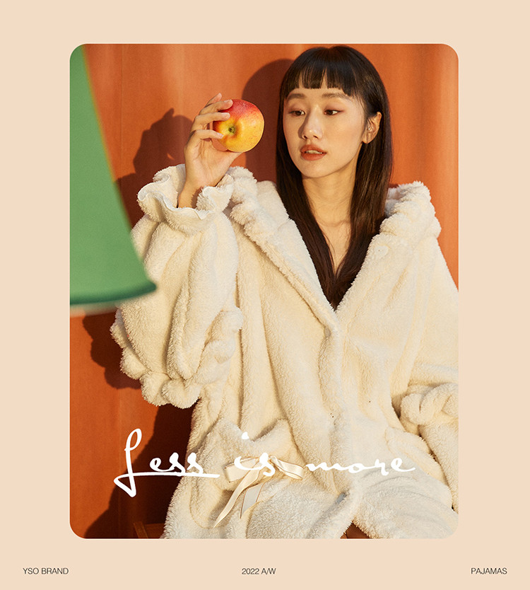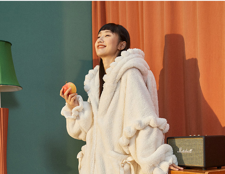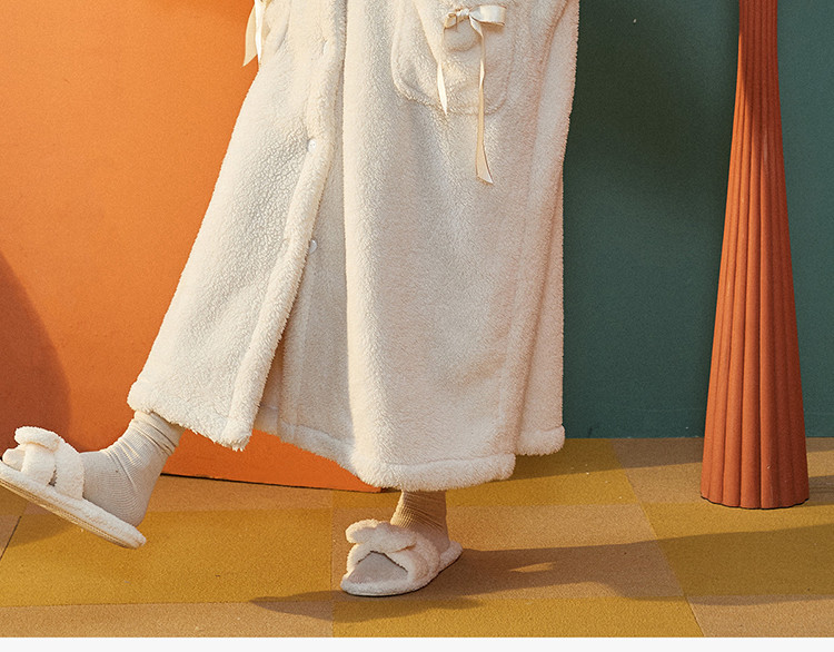 yso冬季睡衣女轻薄款珊瑚绒蝴蝶结爱心口袋可爱睡袍可外穿家居服D