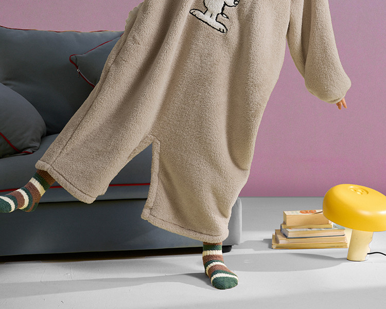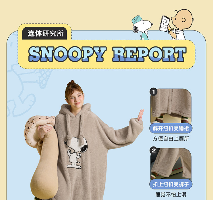 yso史努比冬季轻软款睡衣女珊瑚绒轻软连体睡衣可外出家居服D