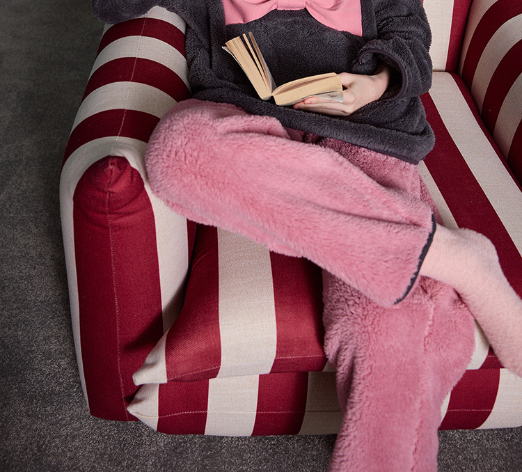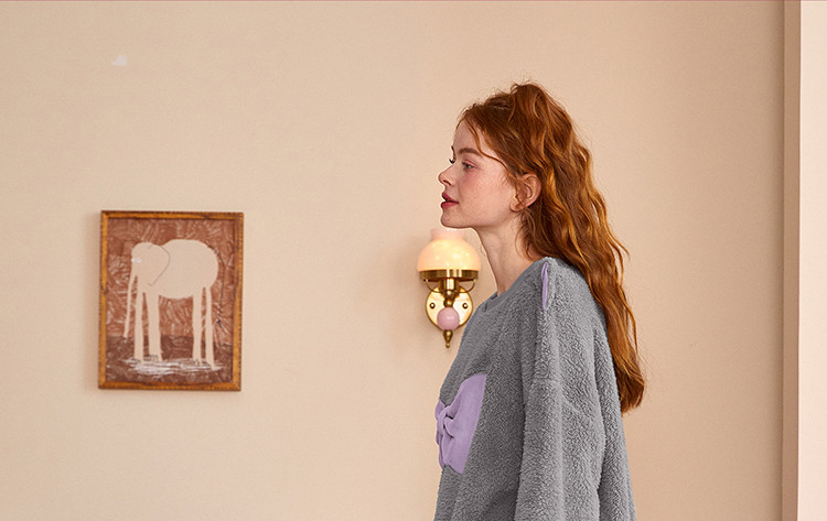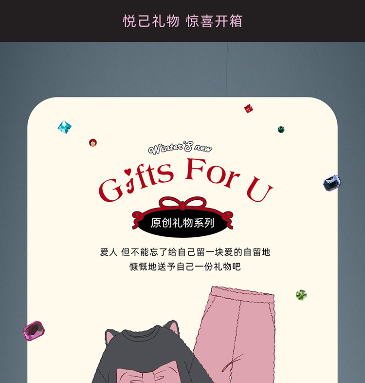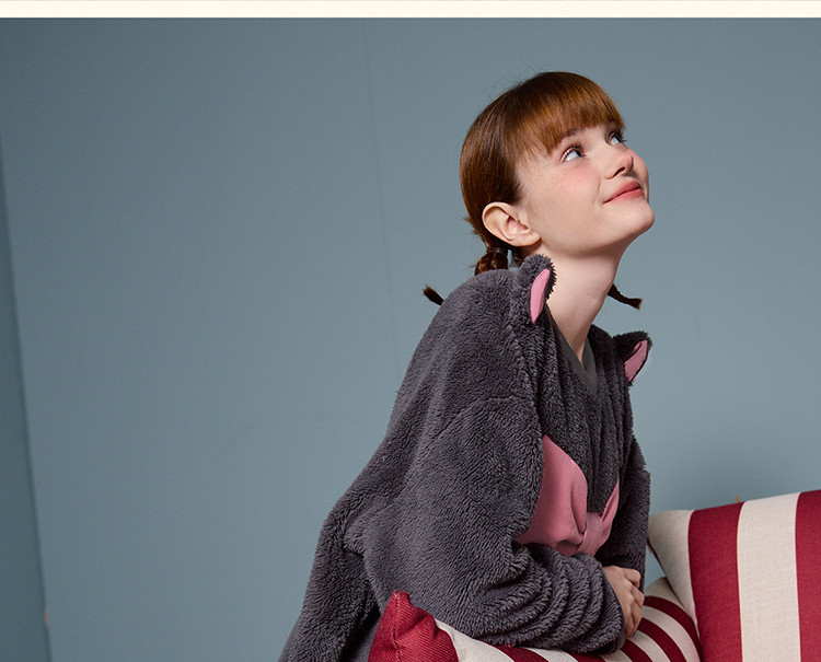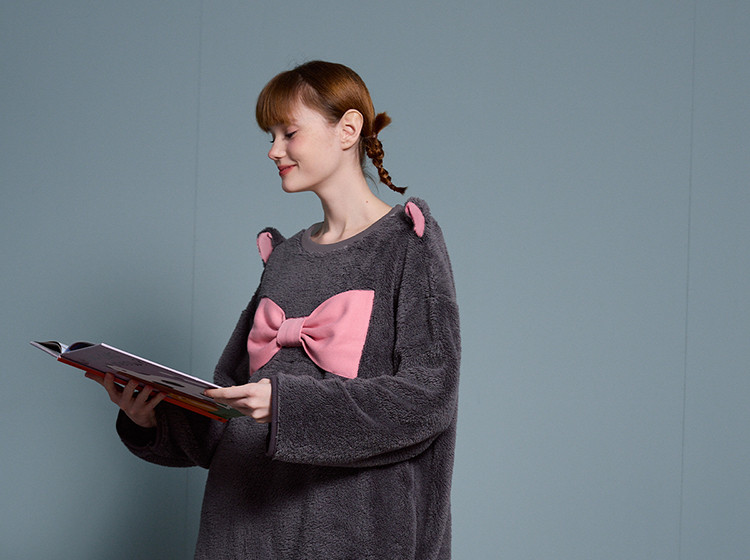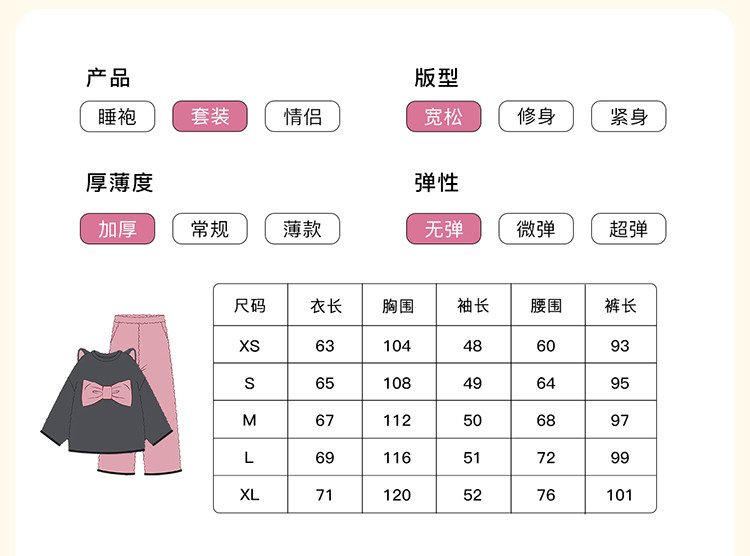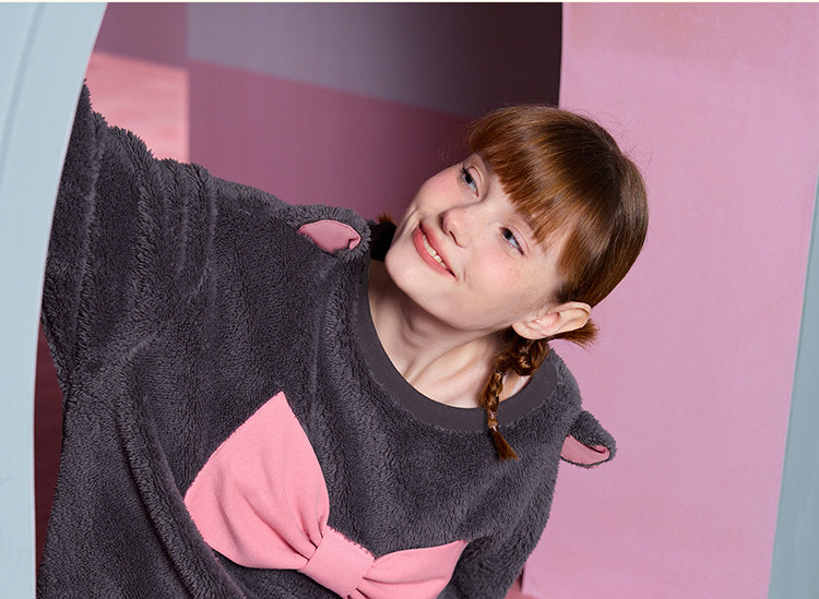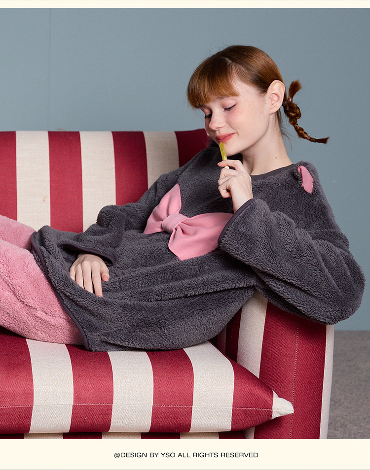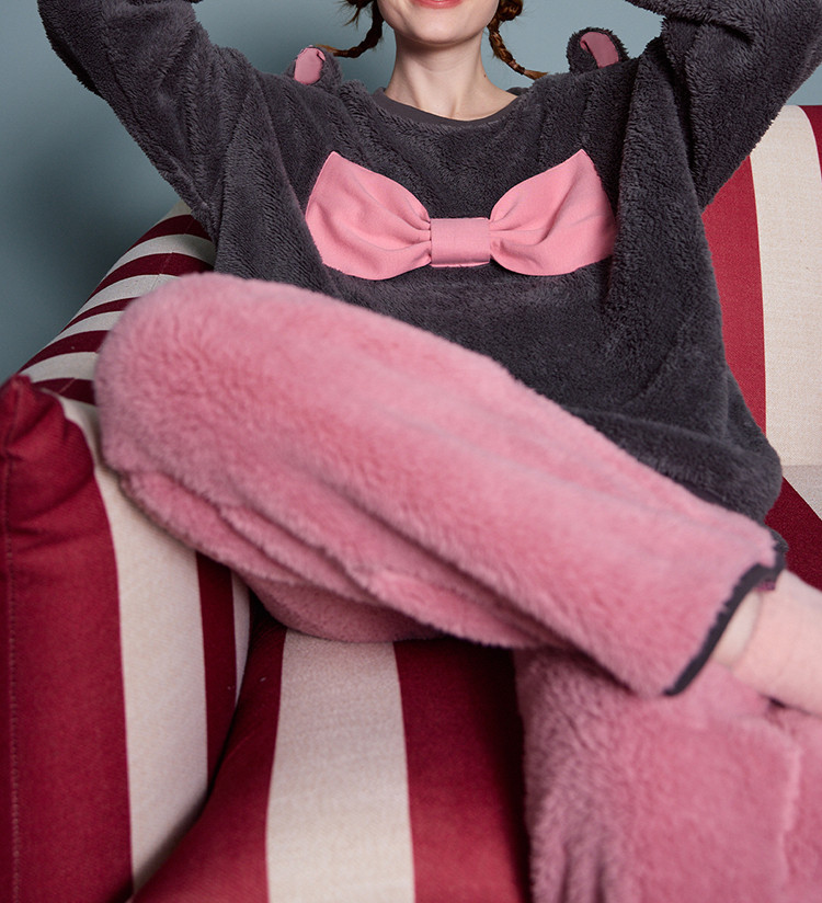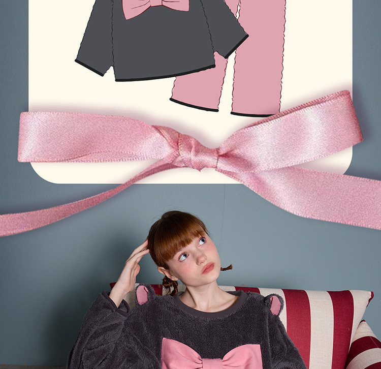 yso冬季睡衣女轻软款珊瑚绒甜美猫耳朵蝴蝶结套装可外穿家居服D